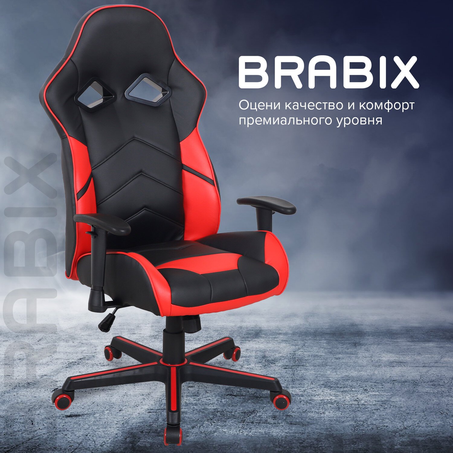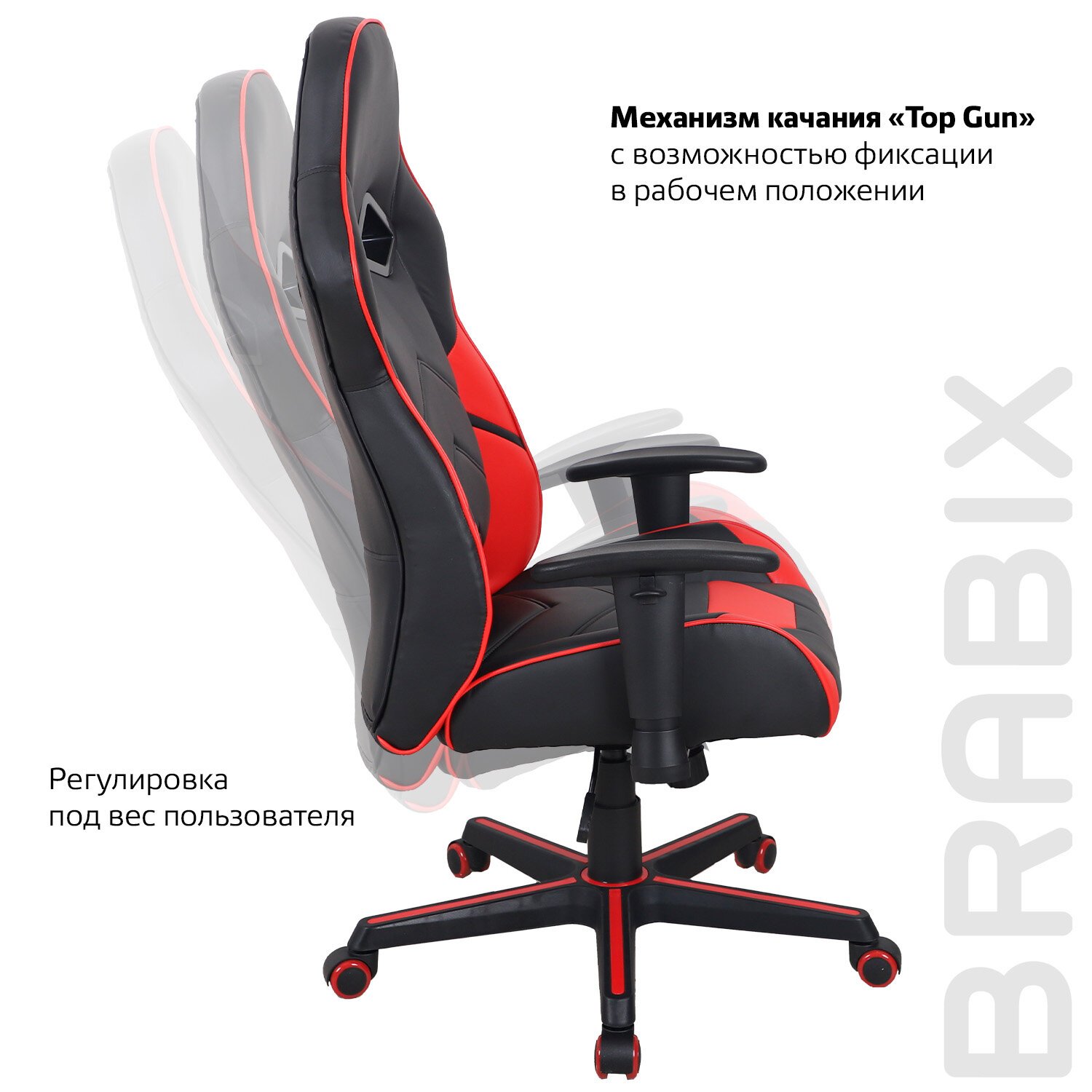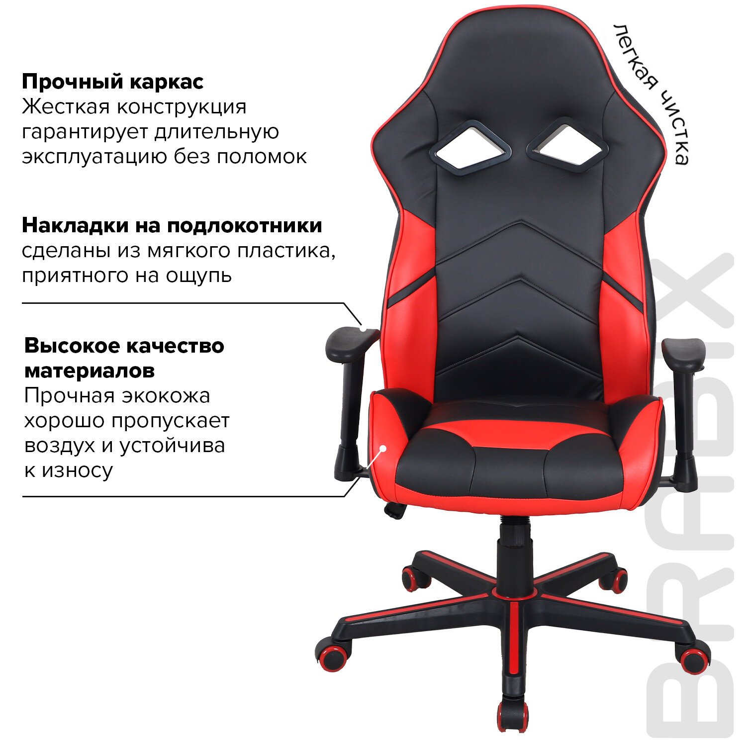 Кресло компьютерное BRABIX "Storm GM-006", регулируемые подлокотники, экокожа, черное/красное, 532500