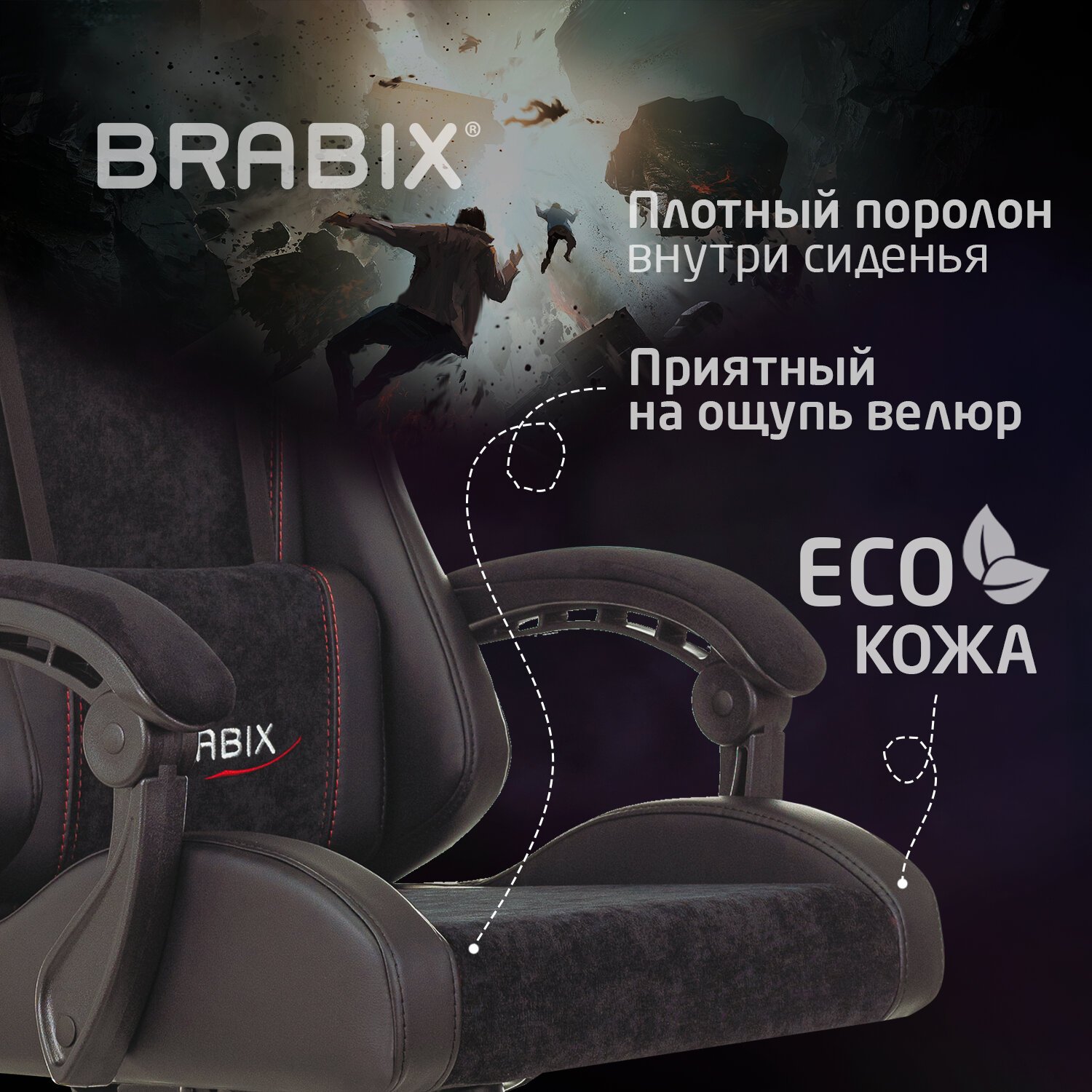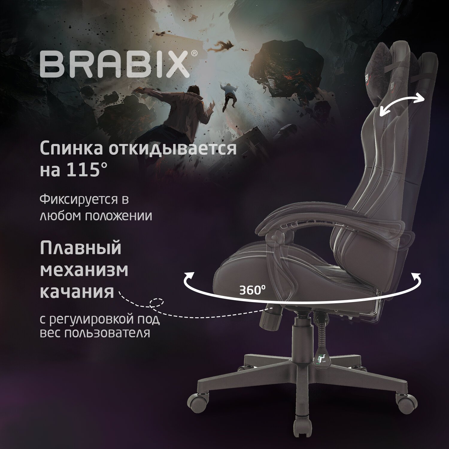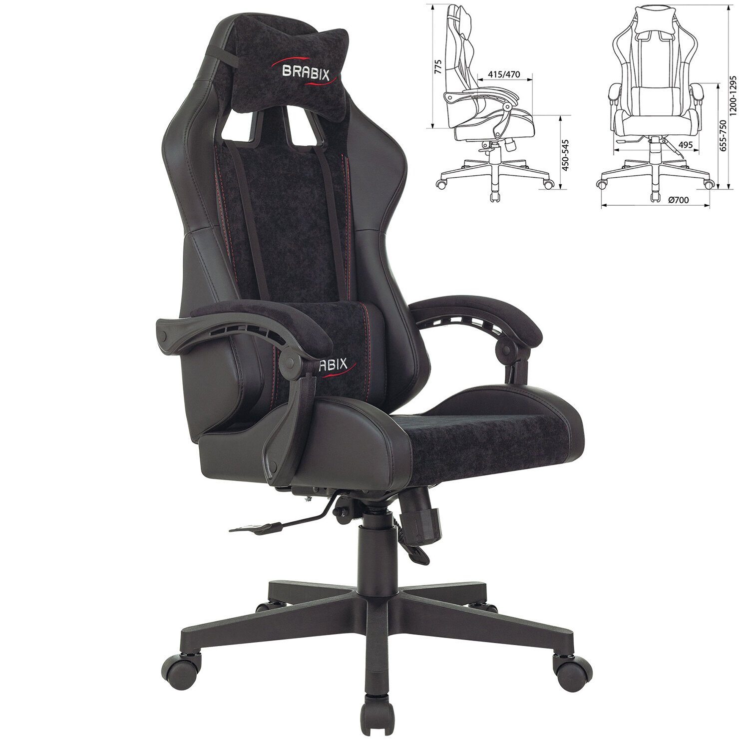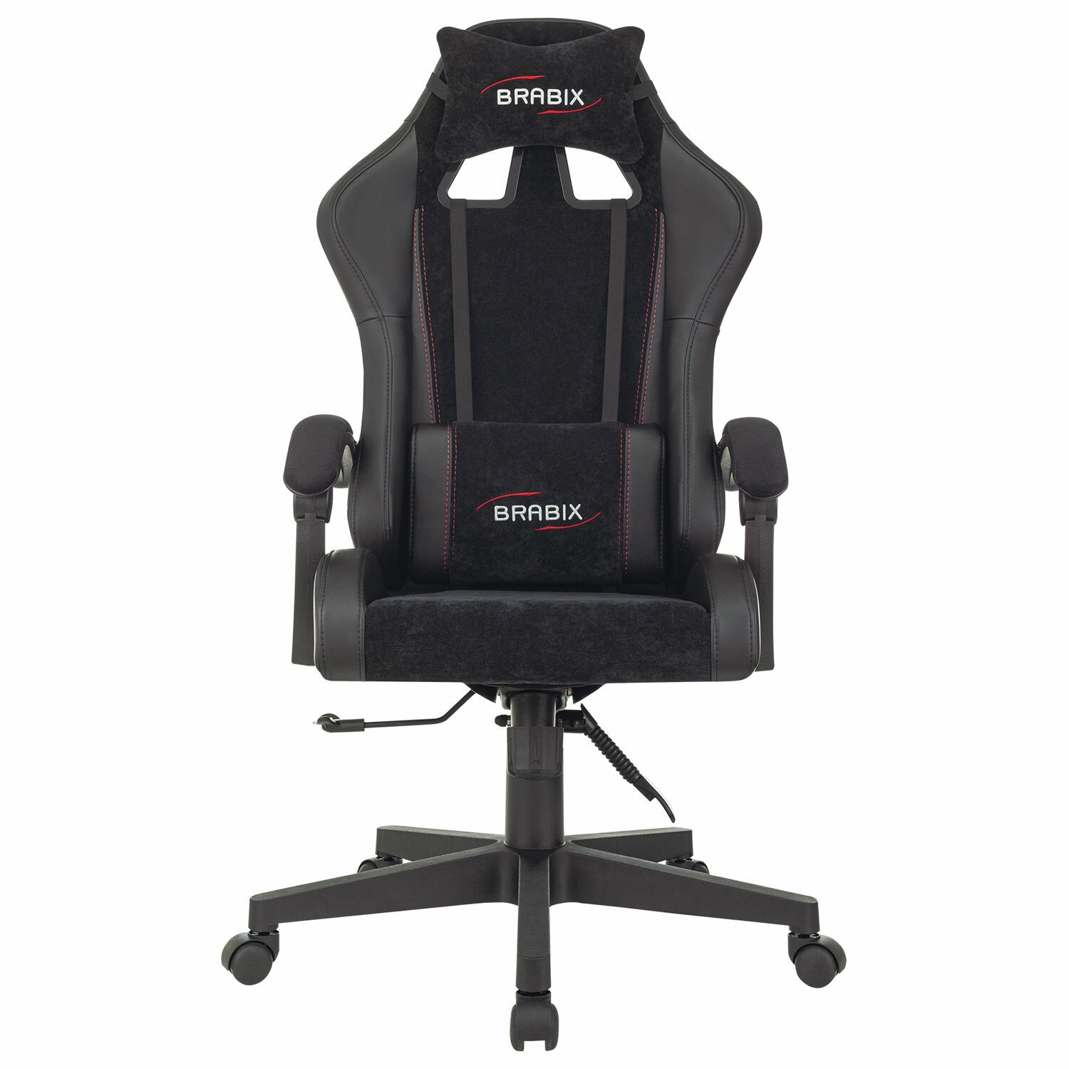 Кресло компьютерное BRABIX "Striker GM-121", синхромеханизм, 2 подушки, экокожа/велюр, черное, 532962