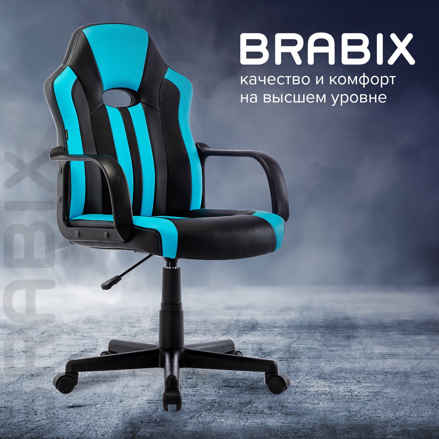 Кресло компьютерное BRABIX "Stripe GM-202", экокожа, черное/голубое, 532509