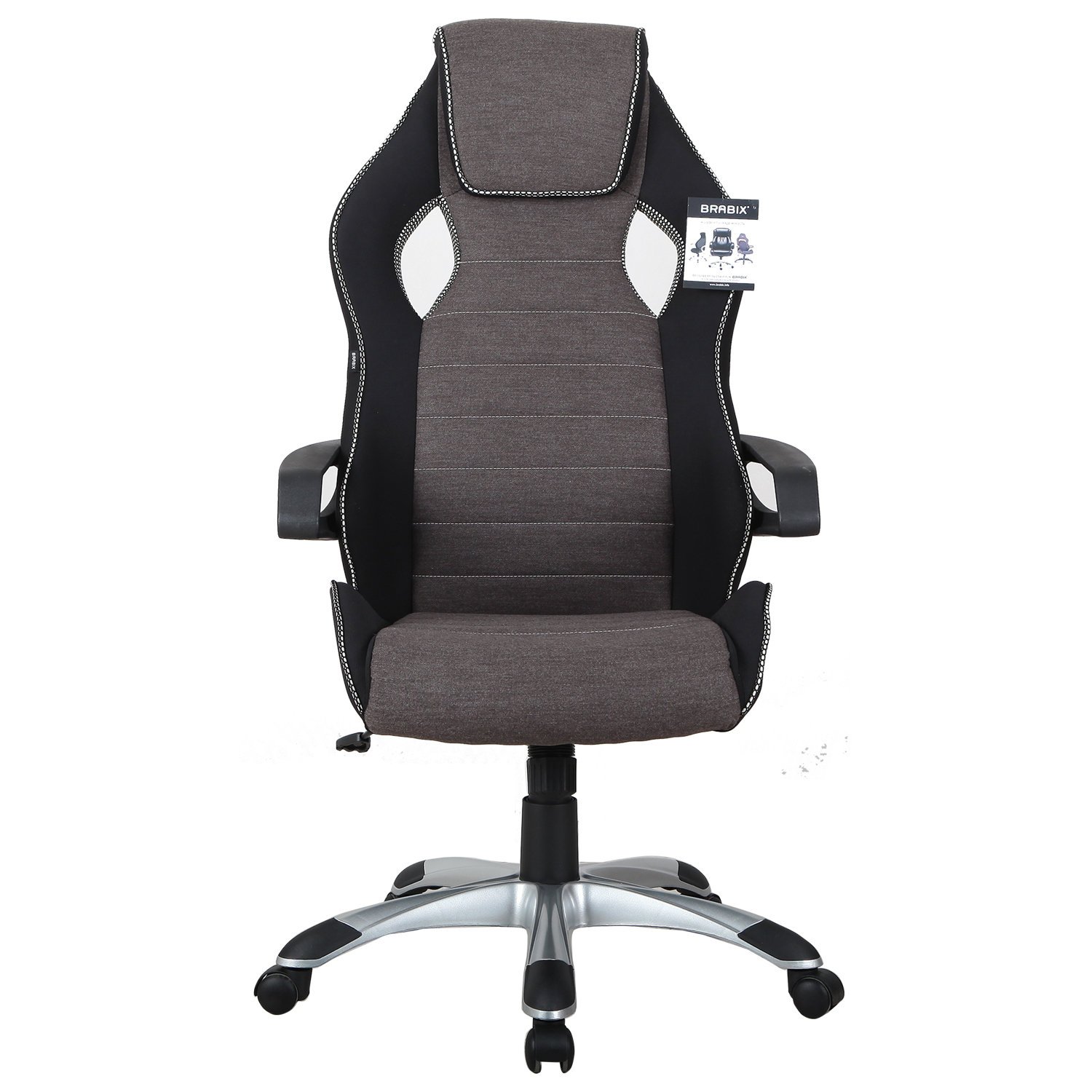 Кресло компьютерное BRABIX "Techno GM-002", ткань, черное/серое, вставки белые, 531815