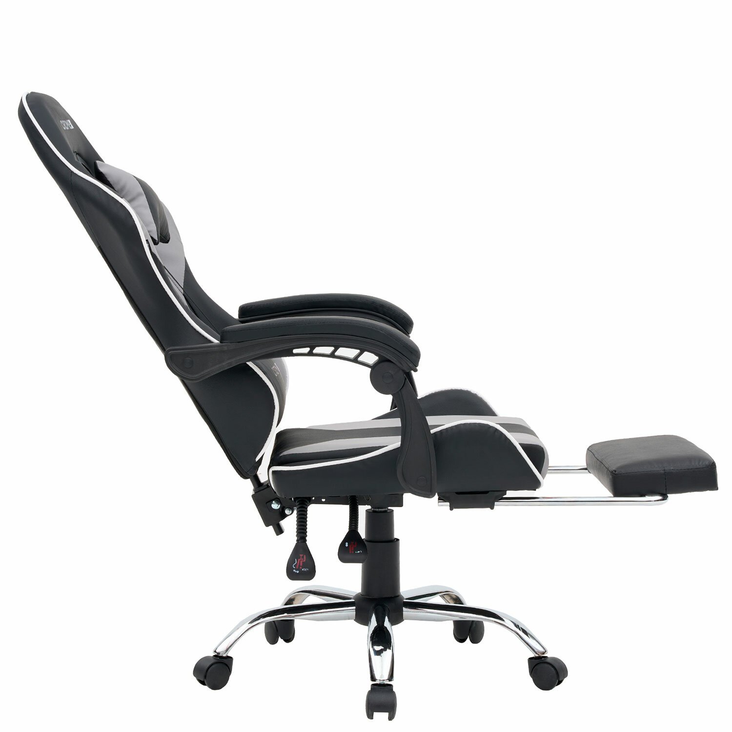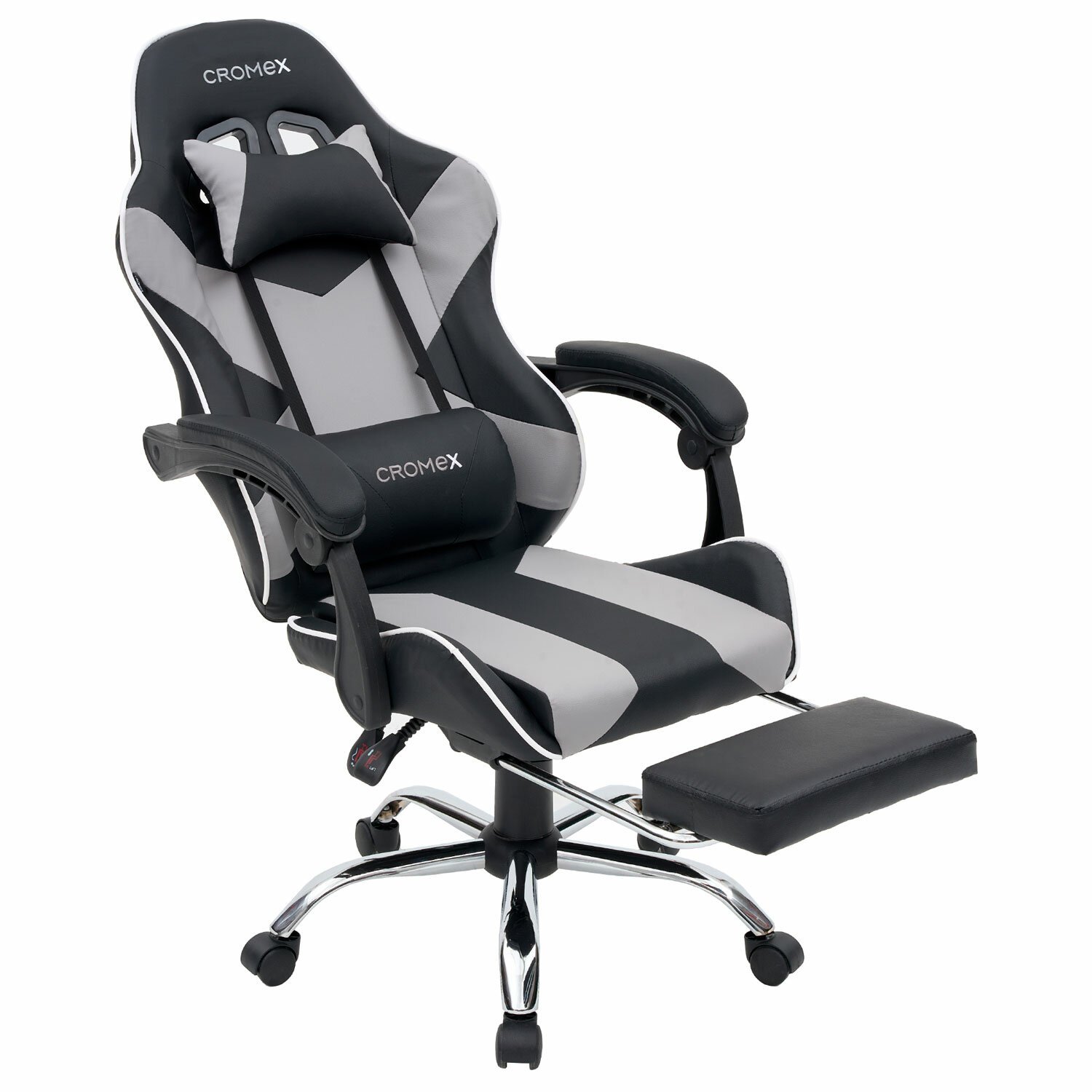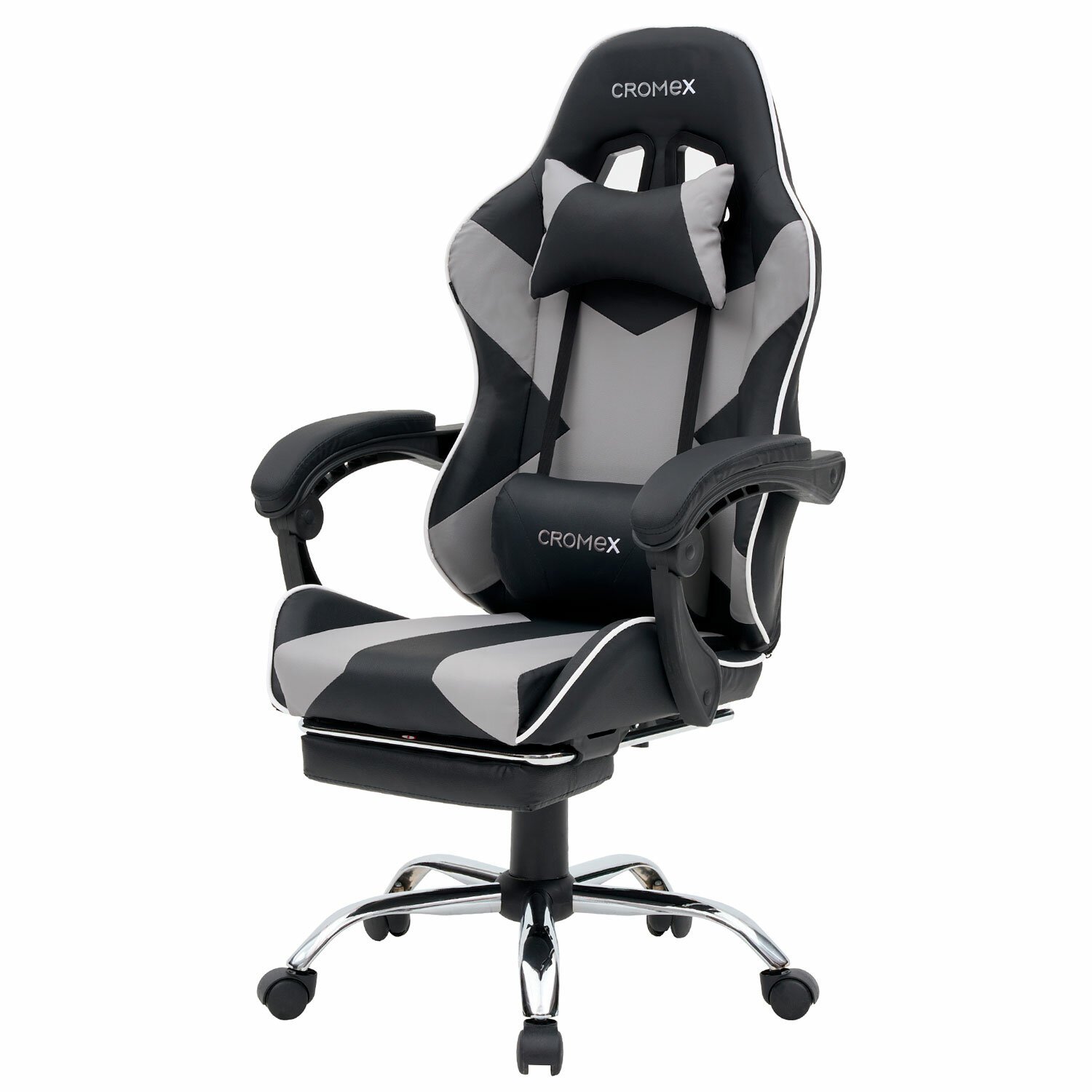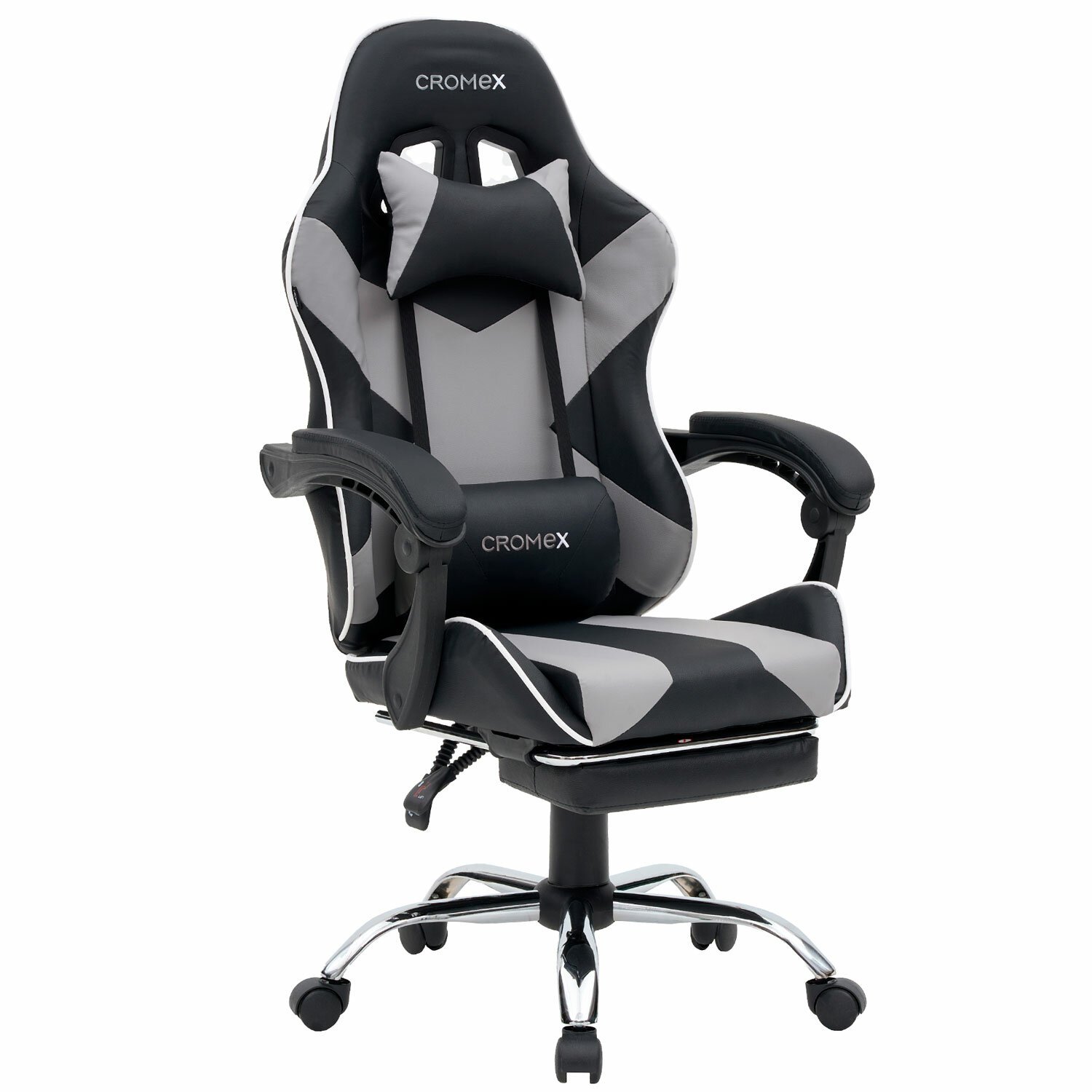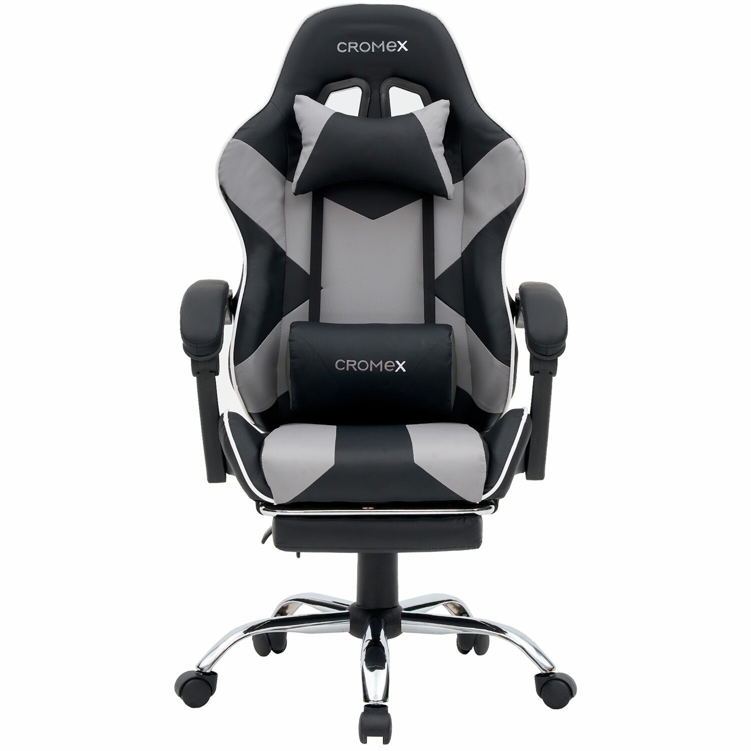Кресло компьютерное CROMEX "Wave GM-145", вибромассаж, подножка, подушки, экокожа, черное/серое, 532956