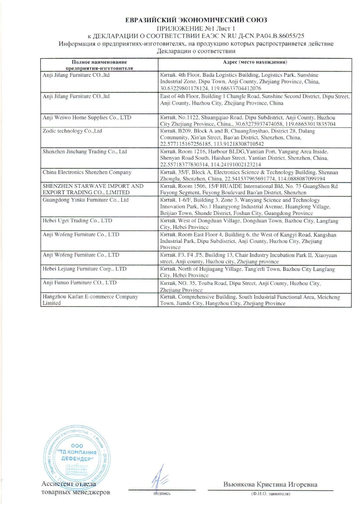 | Тип механизма качания | "Up&Down" - регулировка высоты кресла |