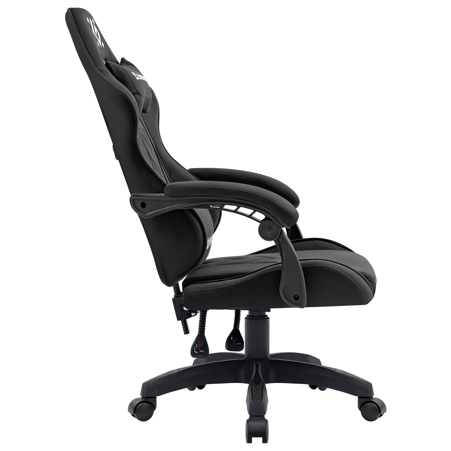 Кресло оснащено шейной и поясничной подушками, мягкими подлокотниками, а также механизмом, регулирующим уровень наклона спинки.