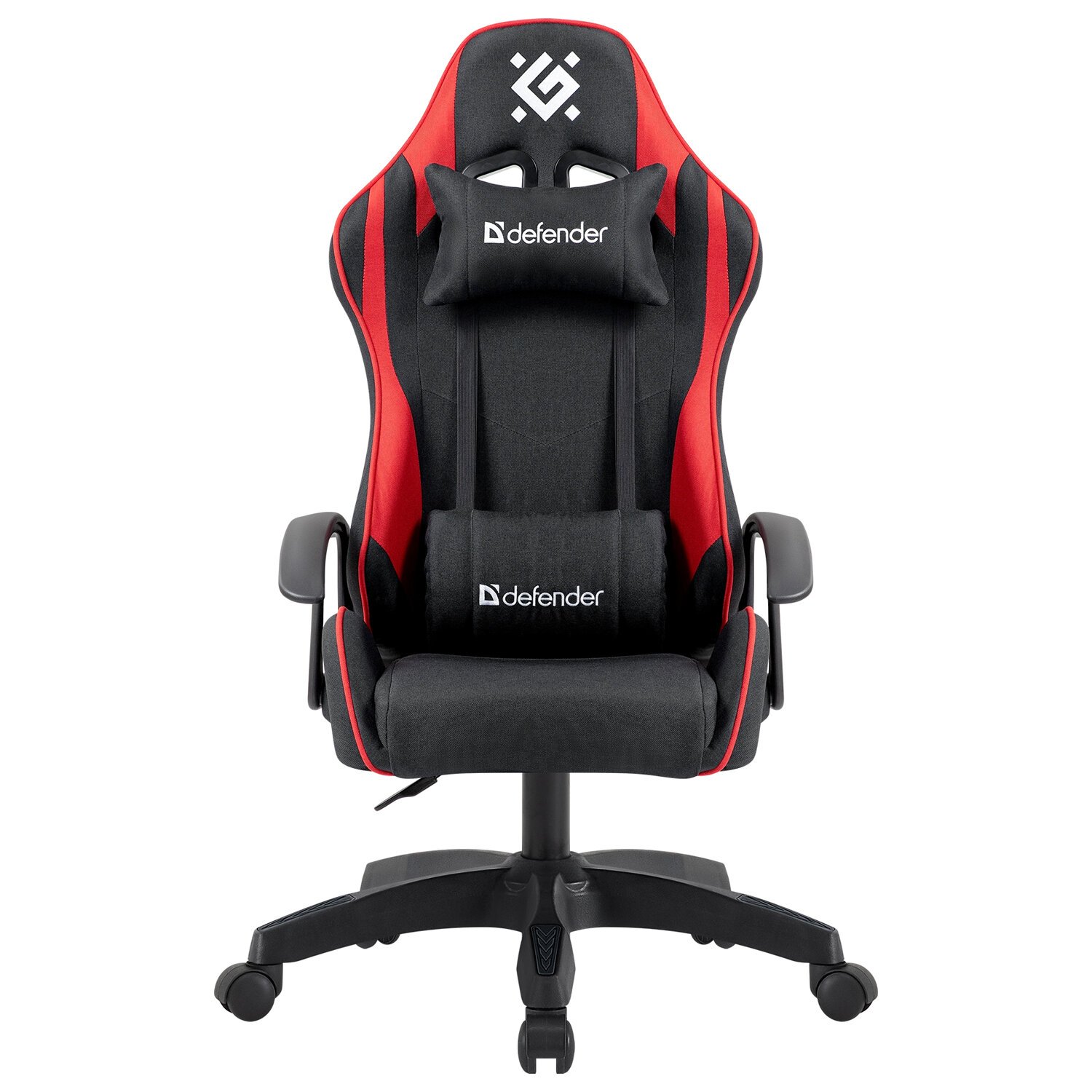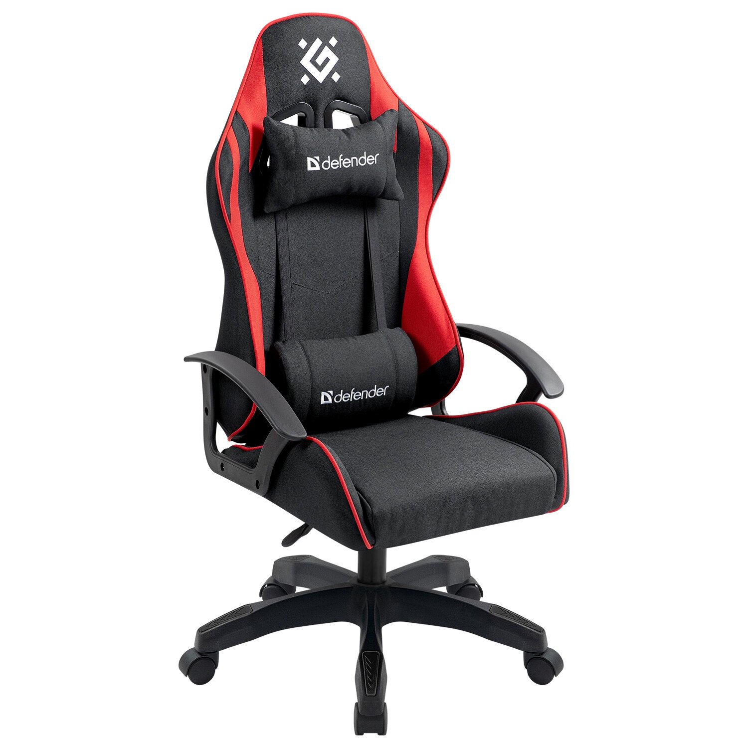 Кресло компьютерное DEFENDER Kraken, 2 подушки, ткань, черное/красное, ш/к 28313, 64677