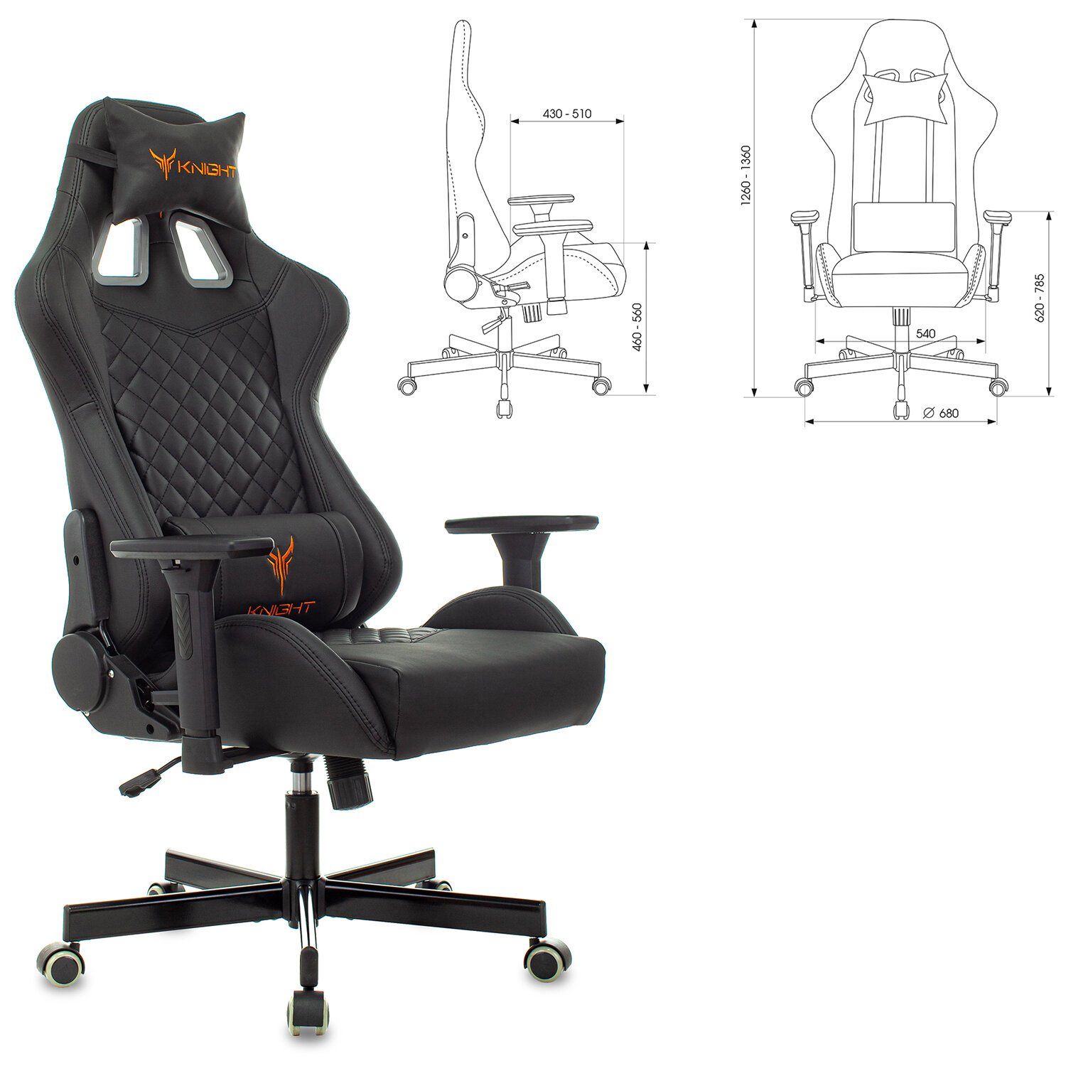 Кресло компьютерное Knight ARMOR, 2 подушки, экокожа премиум, черное, 1628888