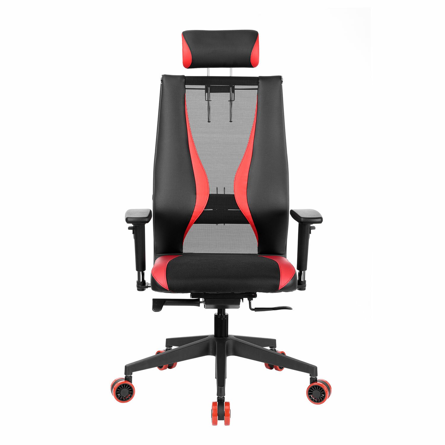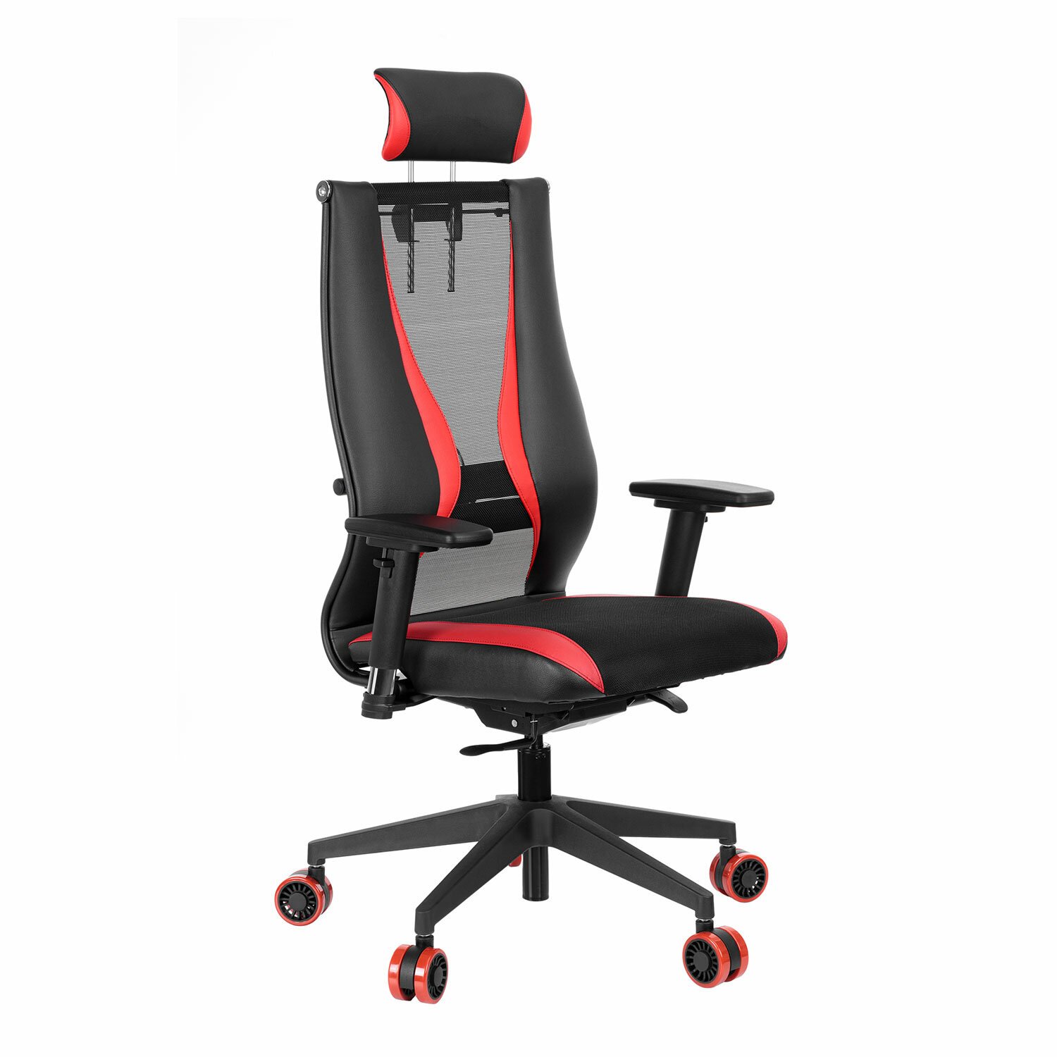 Кресло компьютерное МЕТТА "ErgoLife" 10 B2-170D, 2D-подголовник, экокожа/сетка, черное/красное