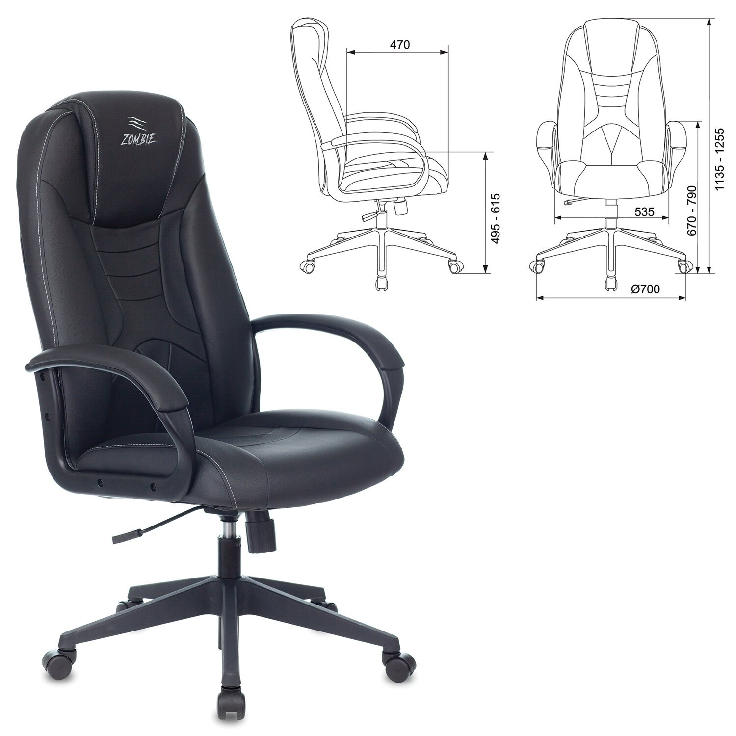 Кресло компьютерное ZOMBIE 8, экокожа, черное, 1583069