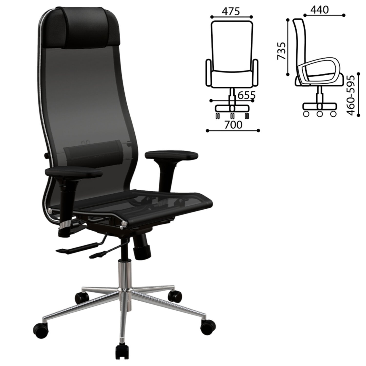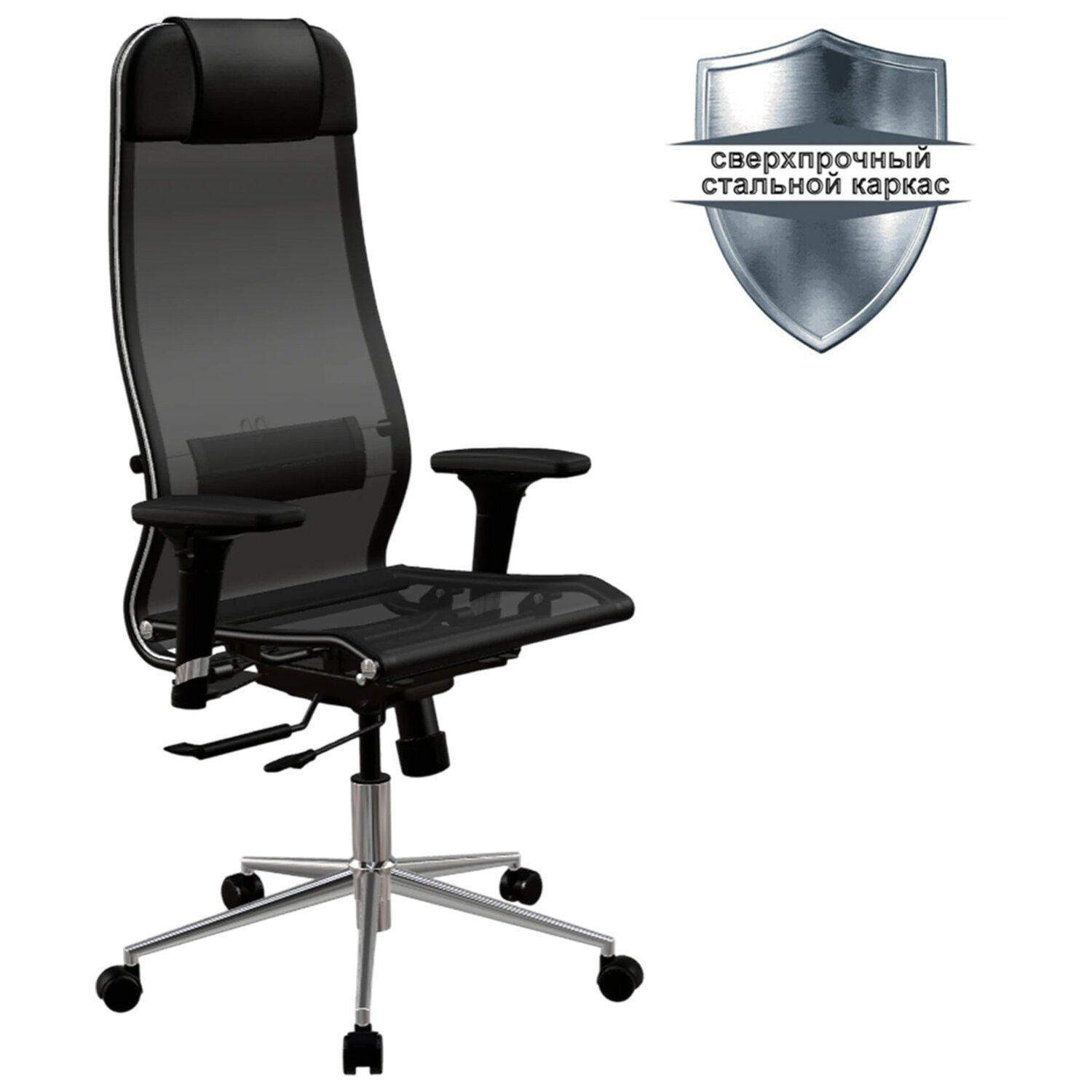 Кресло МЕТТА "ErgoLife" 10 B1-104D, хром, синхромеханизм, 2D-подлокотники, прочная сетка, черное
