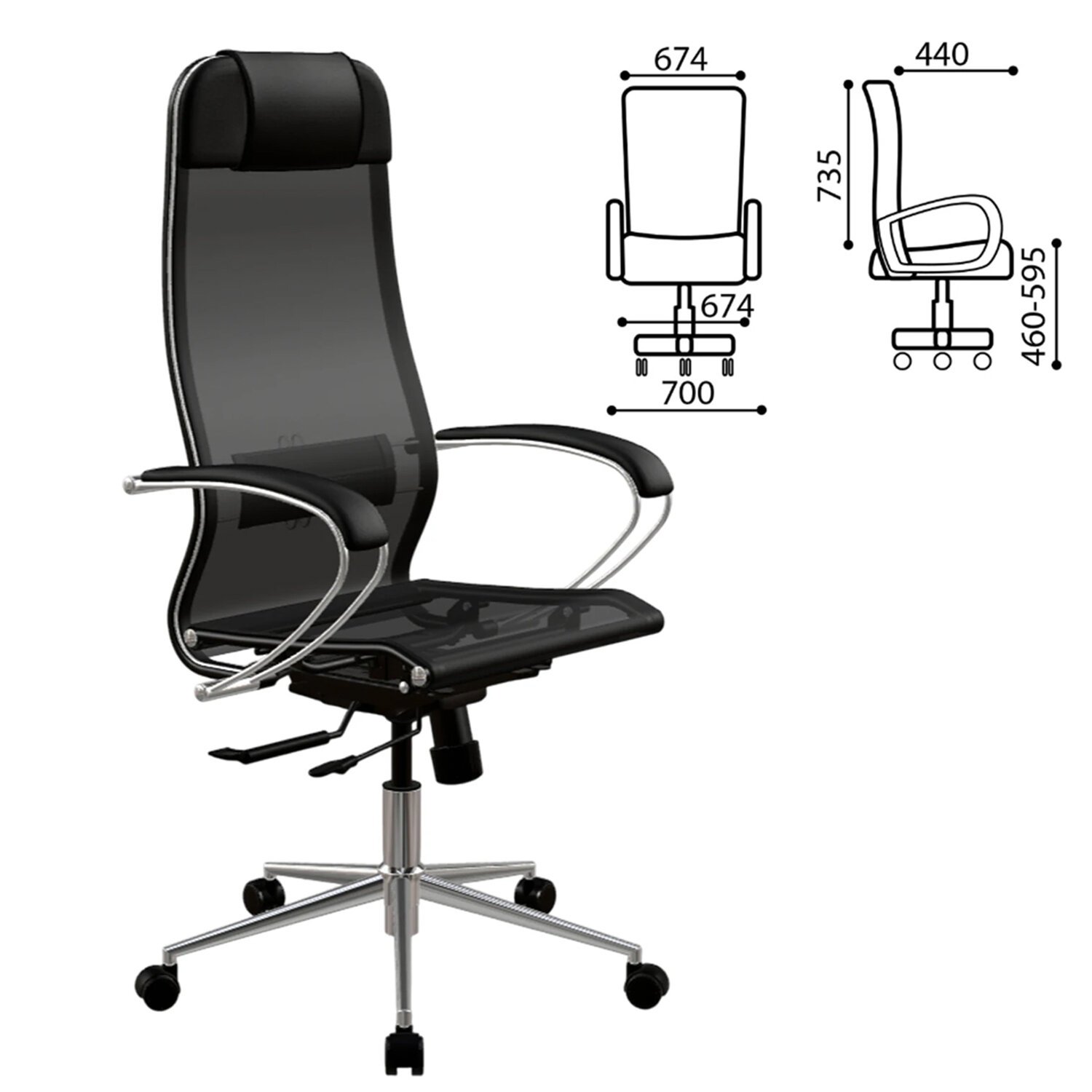 Кресло МЕТТА "ErgoLife" 10 B1-104K, хром, синхромеханизм, прочная сетка, черное