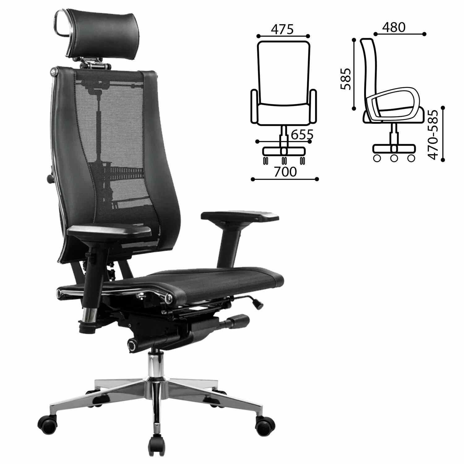 Кресло МЕТТА "YOGA" Y 4DT B2-14D, адаптивная спинка, 3D-подголовник, сверхпрочная сетка, черное