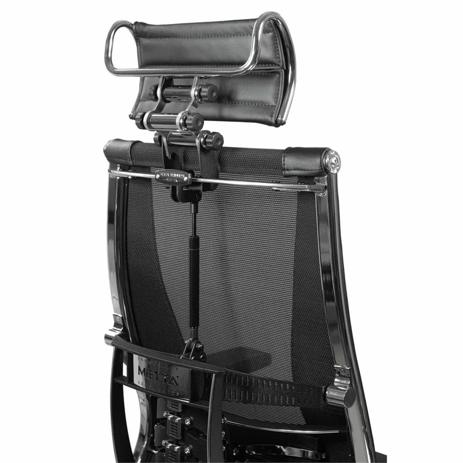 Регулируемый 3D-подголовник повышенной комфортности серии R, каркас стальной хромированный. Регулировка по глубине, высоте и углу наклона, обивка – экокожа.