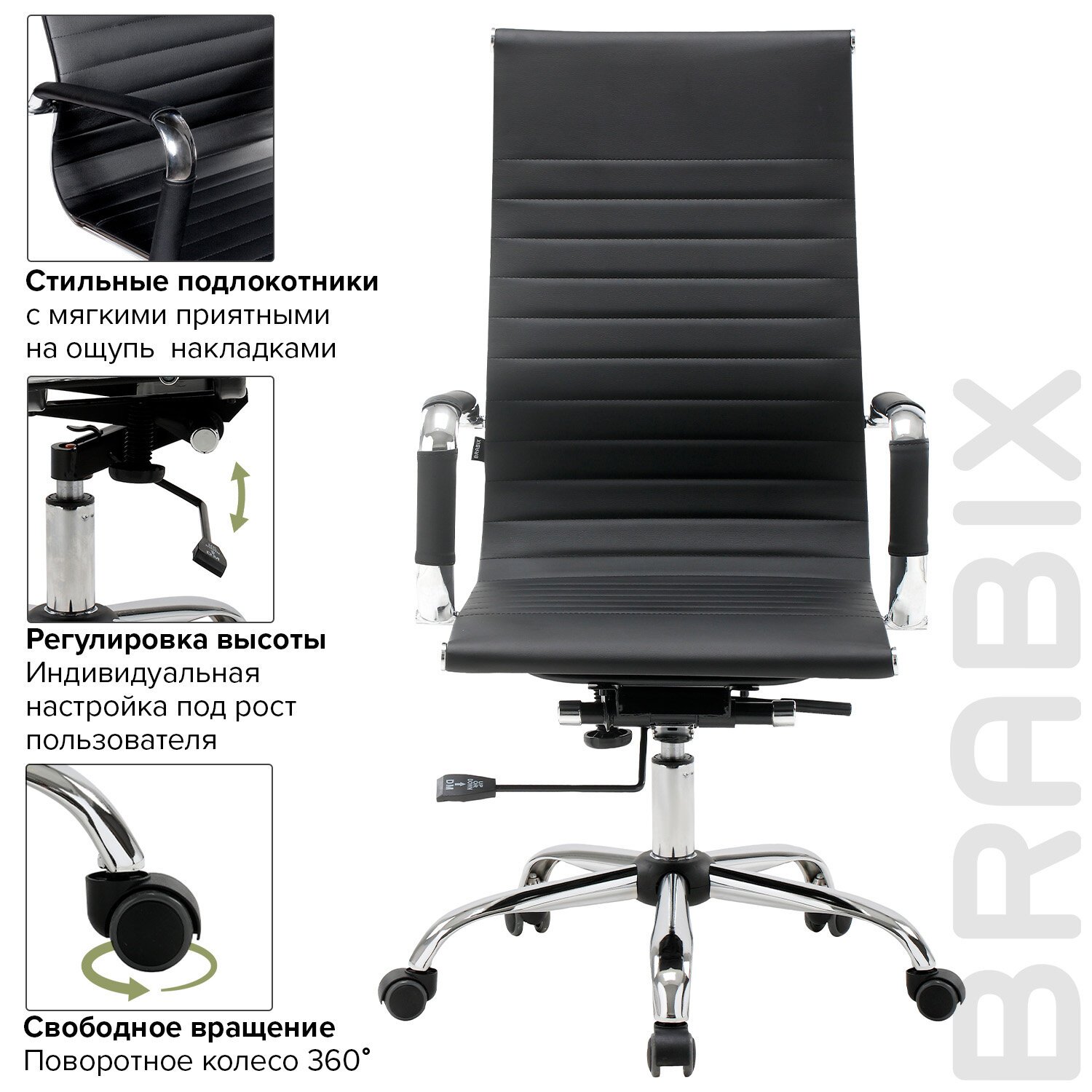 Кресло офисное BRABIX "Pilot EX-610 CH" premium, хром, кожзам, черное, 532418
