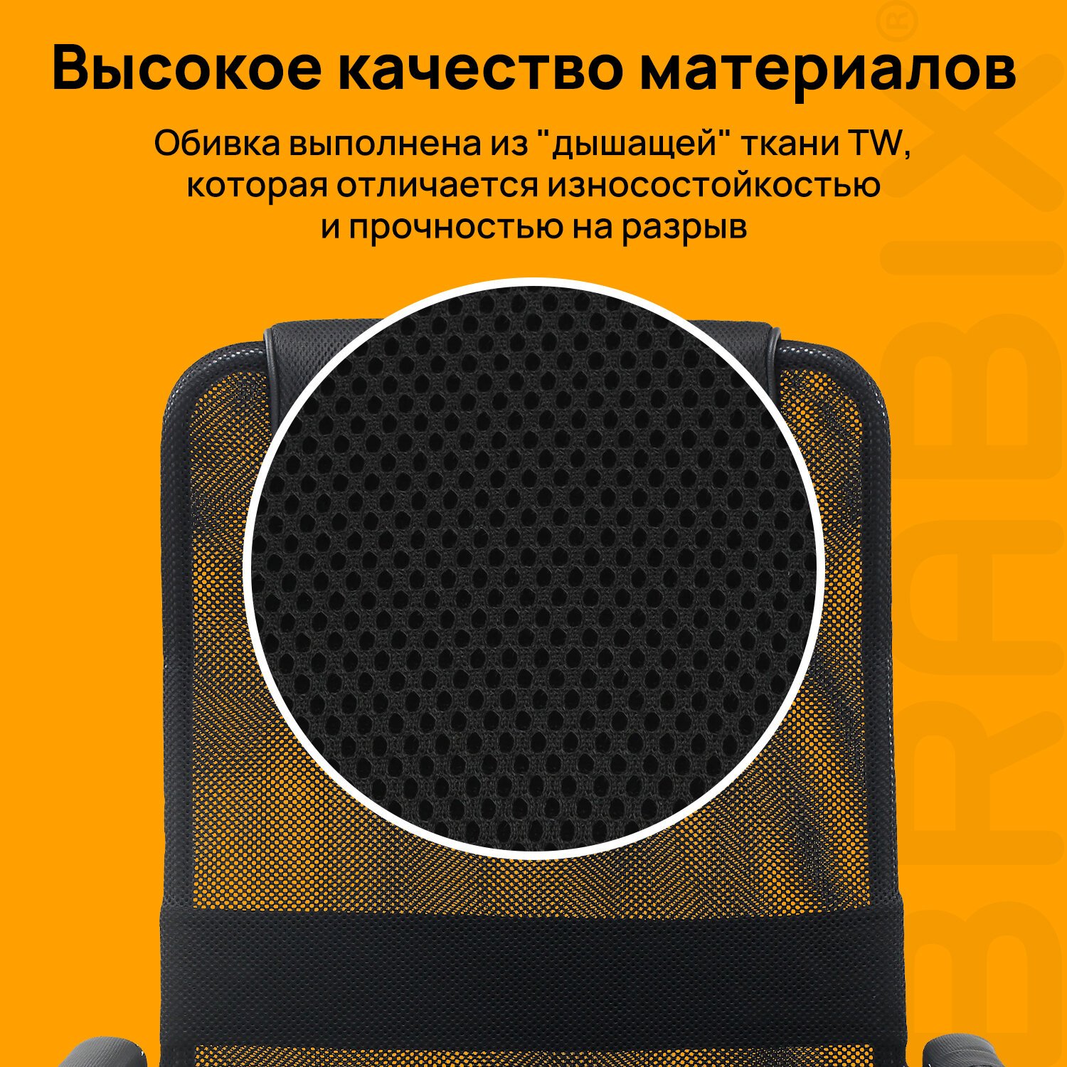 Обивка сиденья - прочная, «дышащая» ткань TW. Этот материал обладает хорошей износостойкостью и способностью впитывать влагу в соответствии с показателями окружающей среды. Благодаря этому материалу можно чувствовать себя комфортно на рабочем месте в любом температурном режиме.