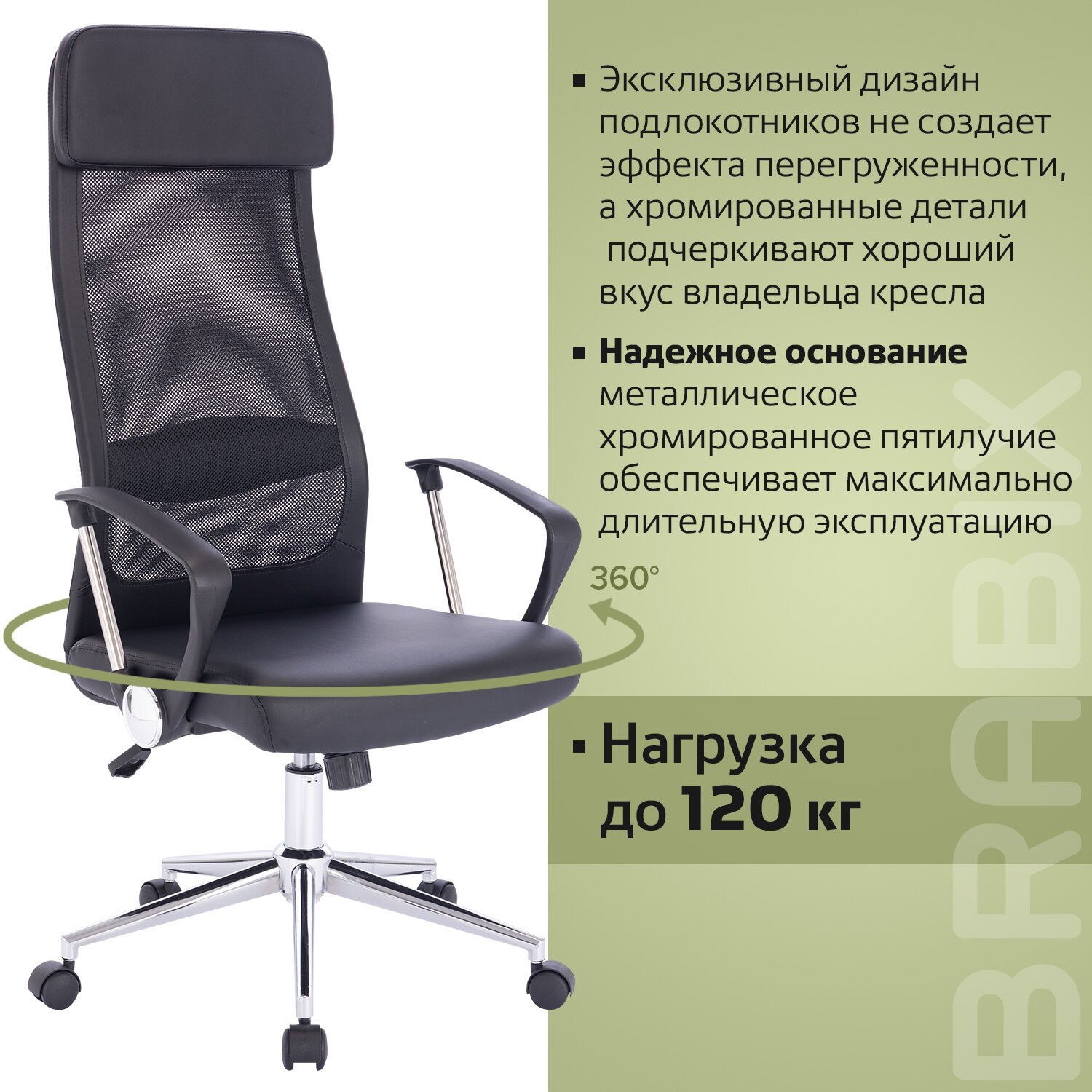 Кресло офисное BRABIX "Flight R EX-541", хром, экокожа, сетка, черное, 532516
