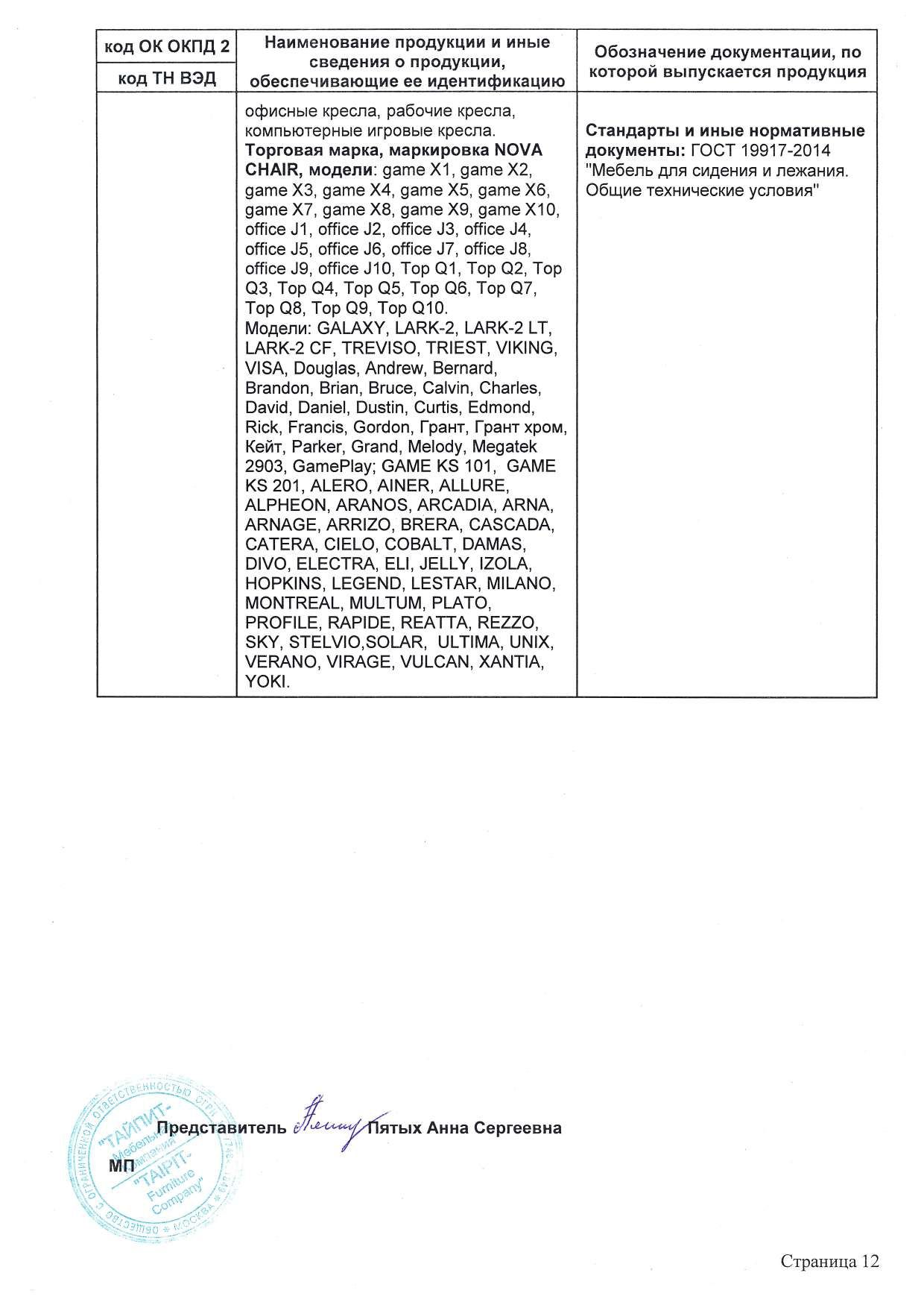 | Тип механизма кресла | "Топ-ган" - качание с регулировкой под вес и фиксацией в 1 положении |