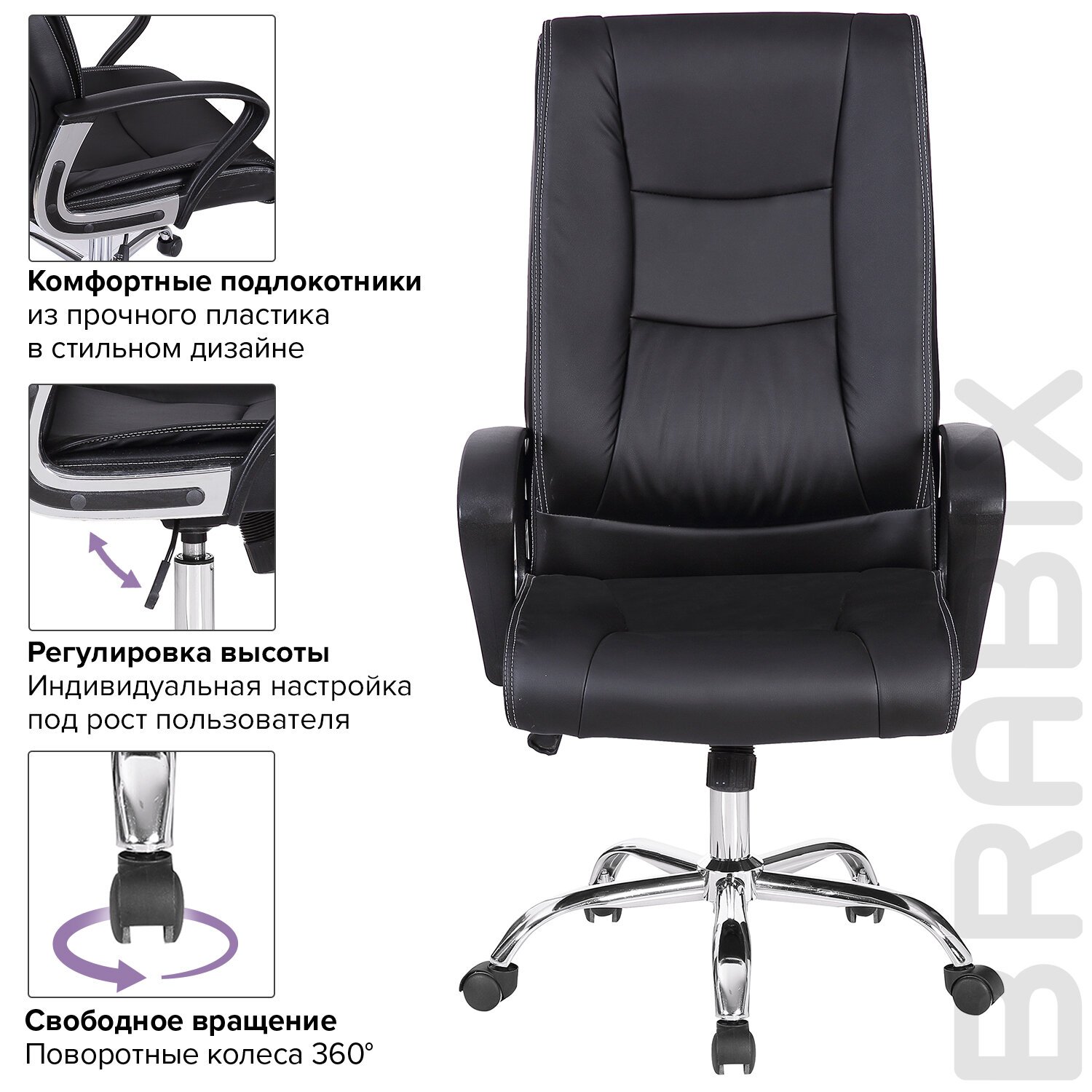 Кресло офисное BRABIX "Forward EX-570", хром, экокожа, черное, 531837