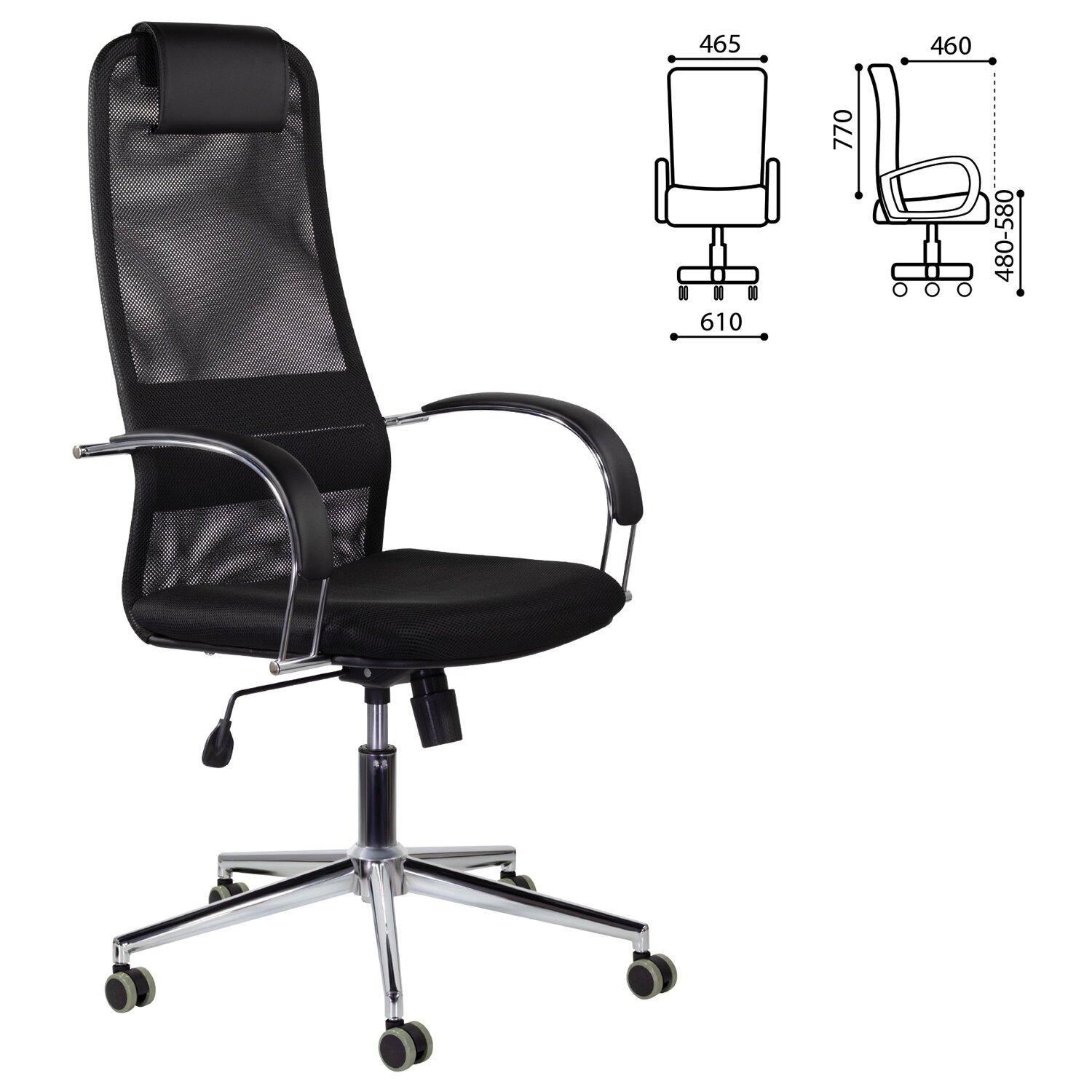 Кресло офисное BRABIX "Fit EX-514", с подголовником, хром, черное, 531949