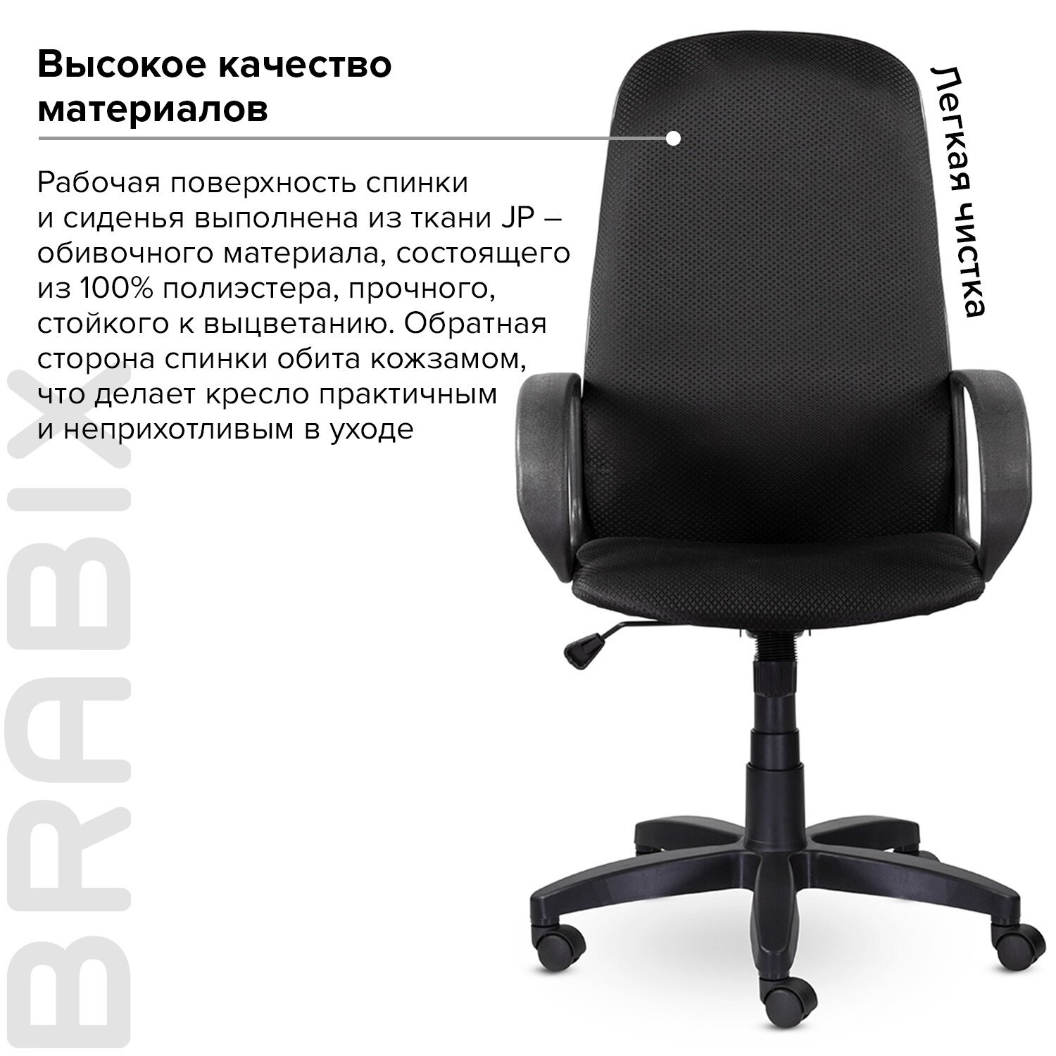 Кресло офисное BRABIX "Praktik EX-279", ткань JP/кожзам, черное, 532019