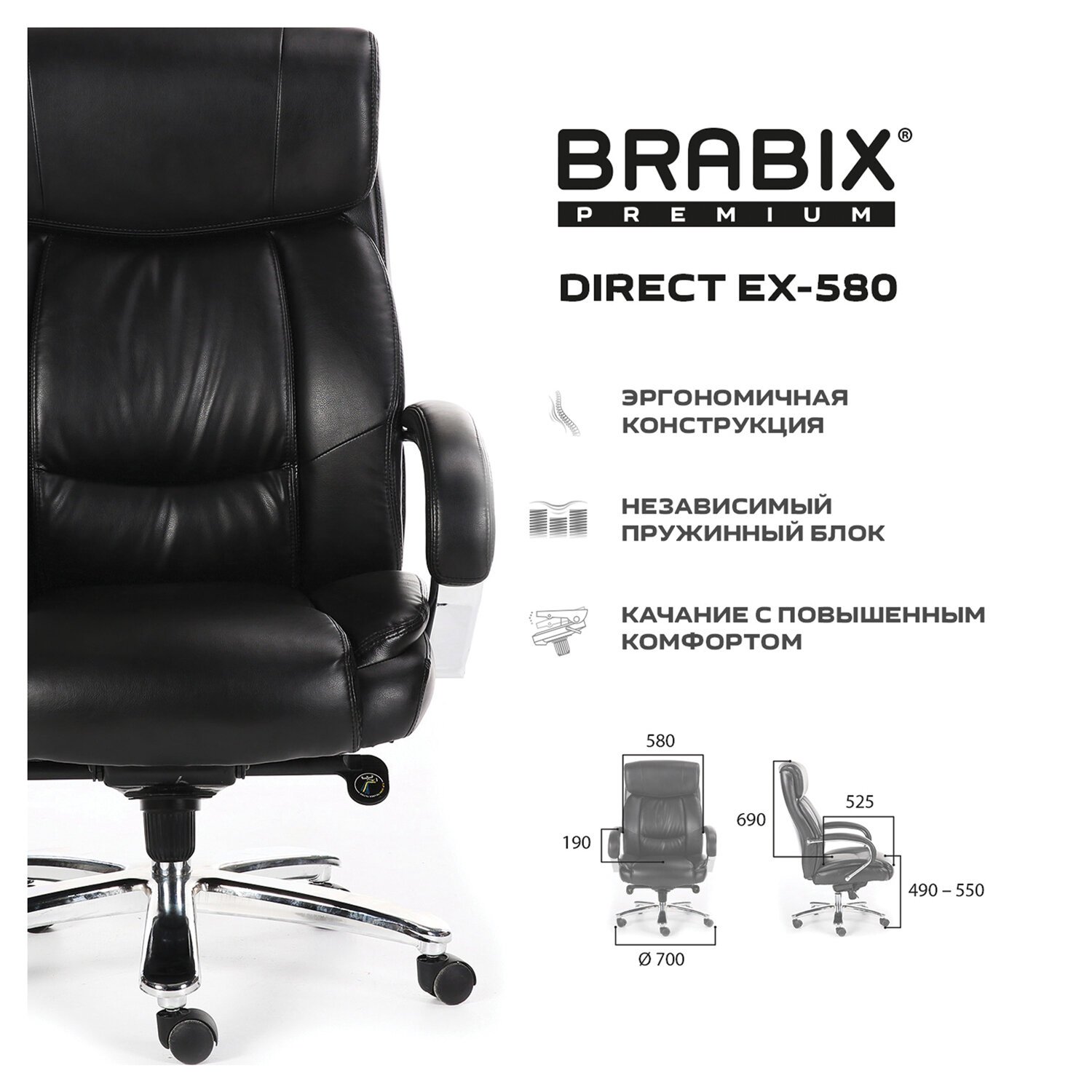 Кресло офисное BRABIX PREMIUM "Direct EX-580", хром, рециклированная кожа, черное, 531824