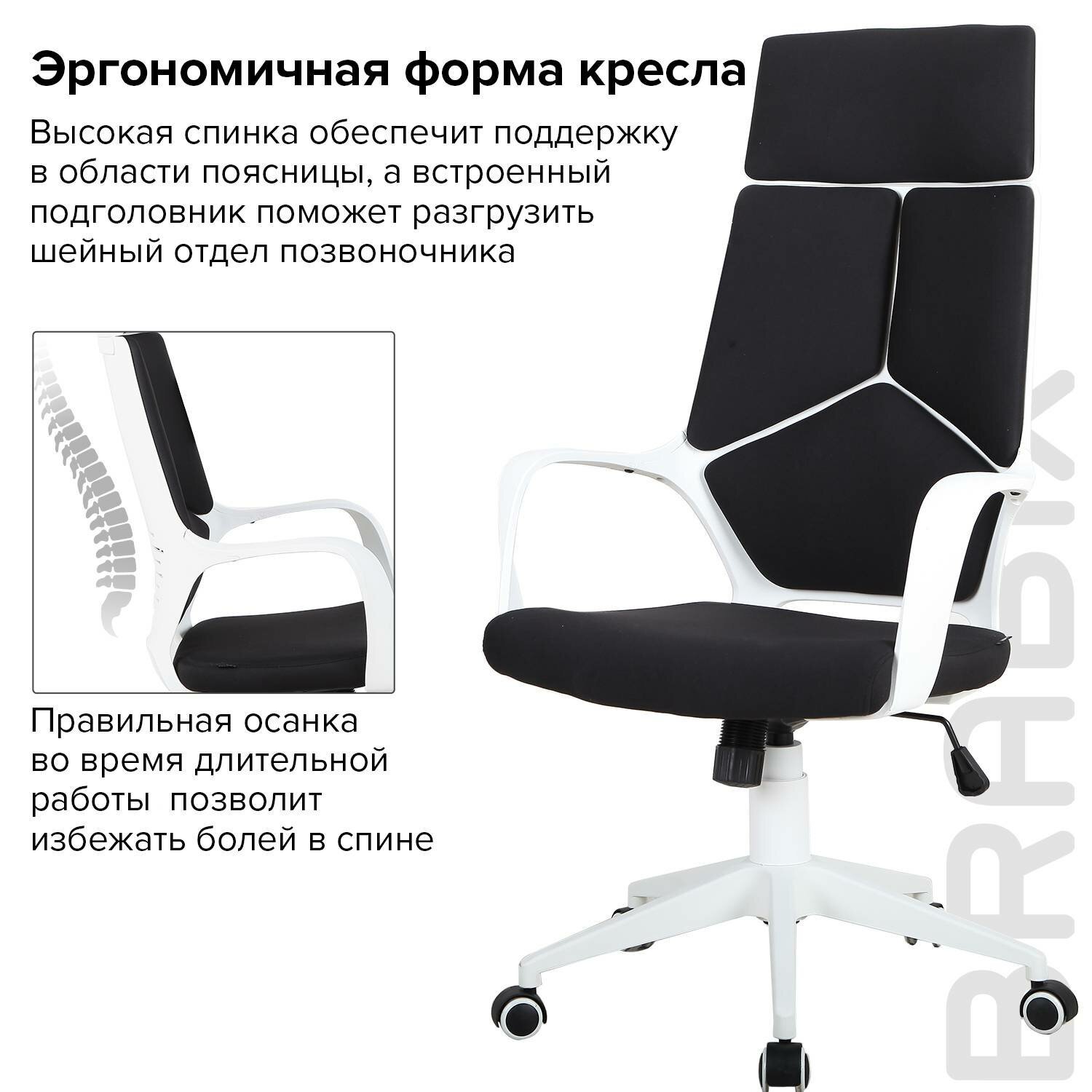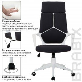 Кресло офисное BRABIX PREMIUM "Prime EX-515", пластик белый, ткань, черное, 531812