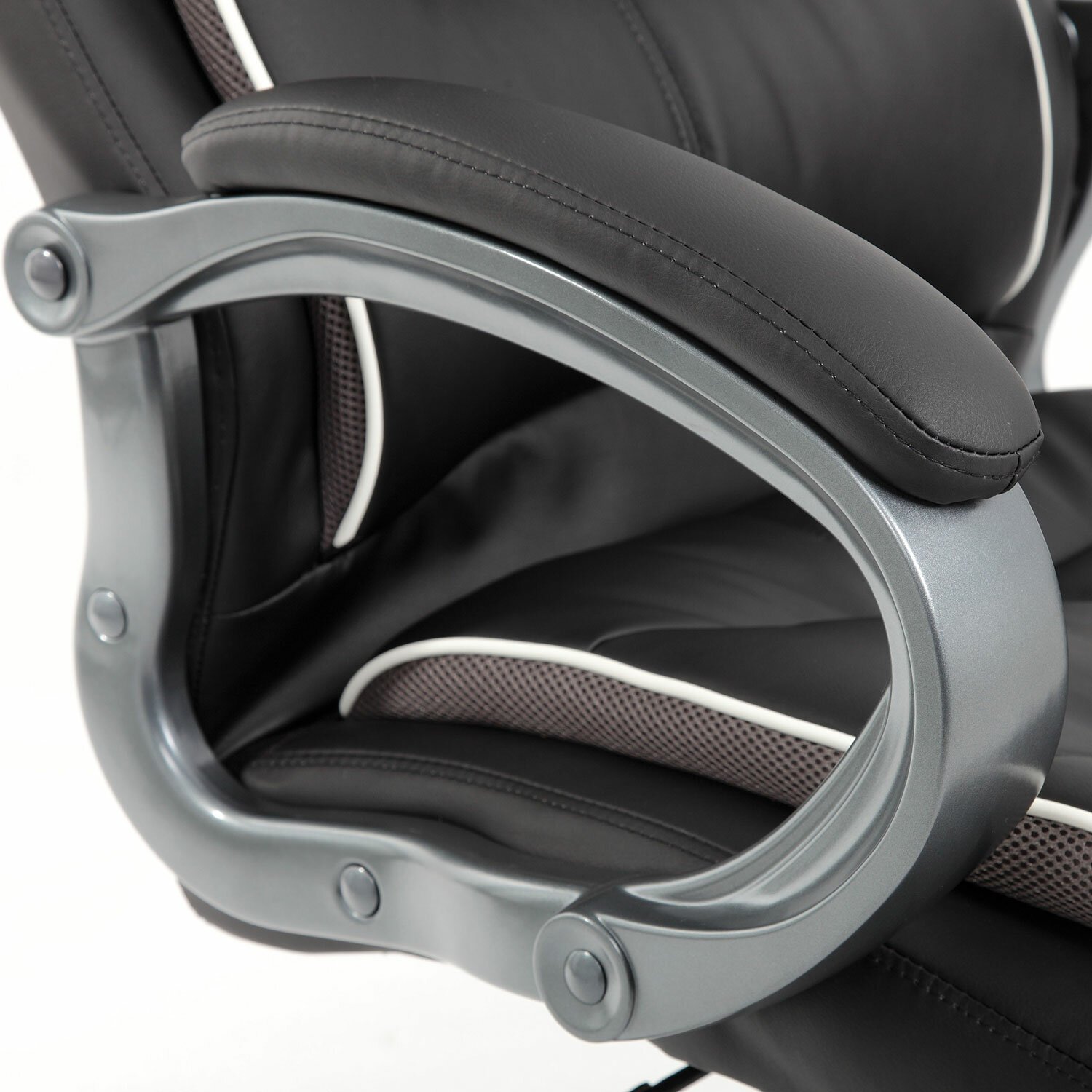 Прочные пластиковые подлокотники имеют мягкие накладки.