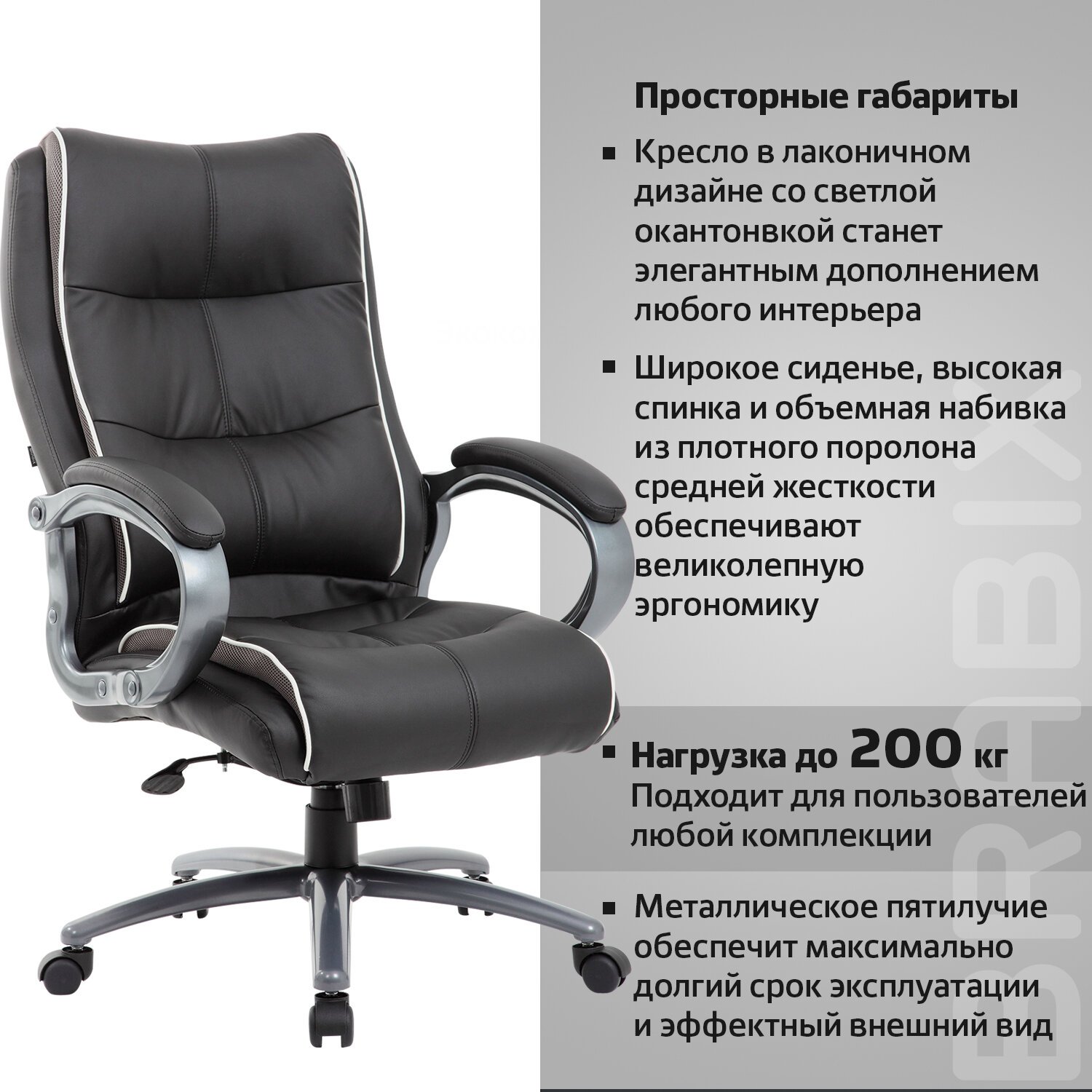 Кресло офисное BRABIX PREMIUM "Heavy Duty HD-002", усиленное, НАГРУЗКА до 200 кг, экокожа, 531829