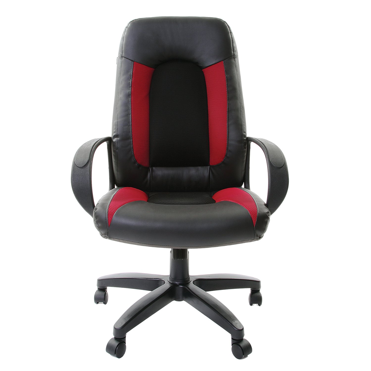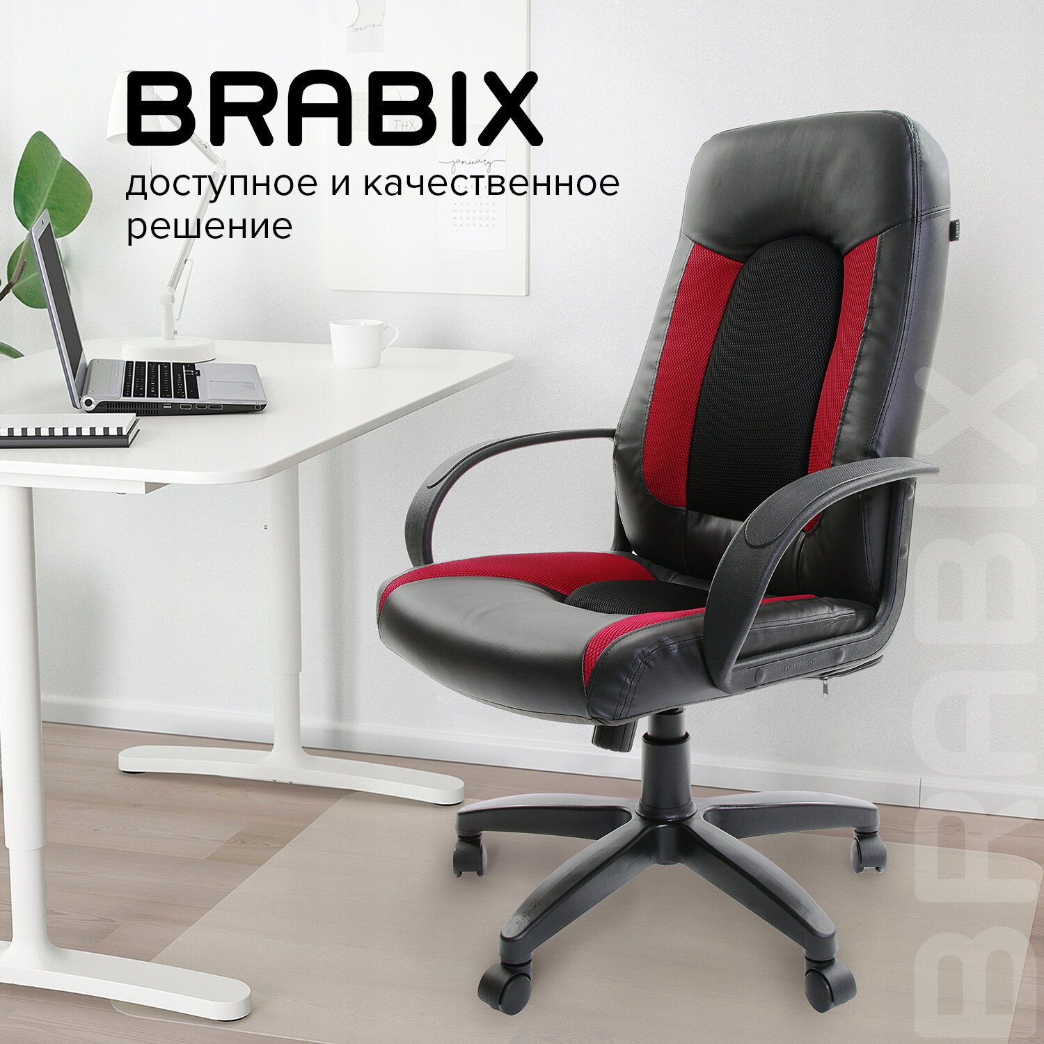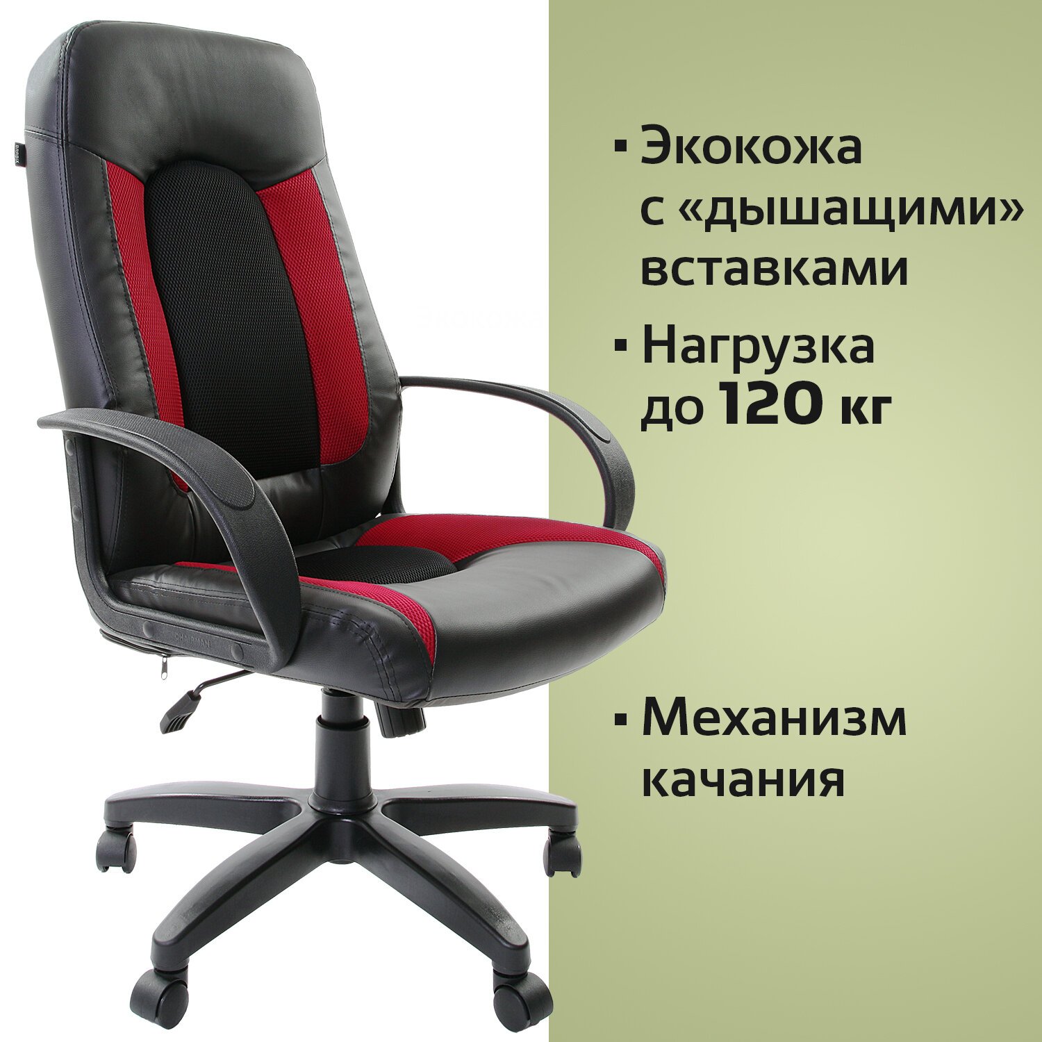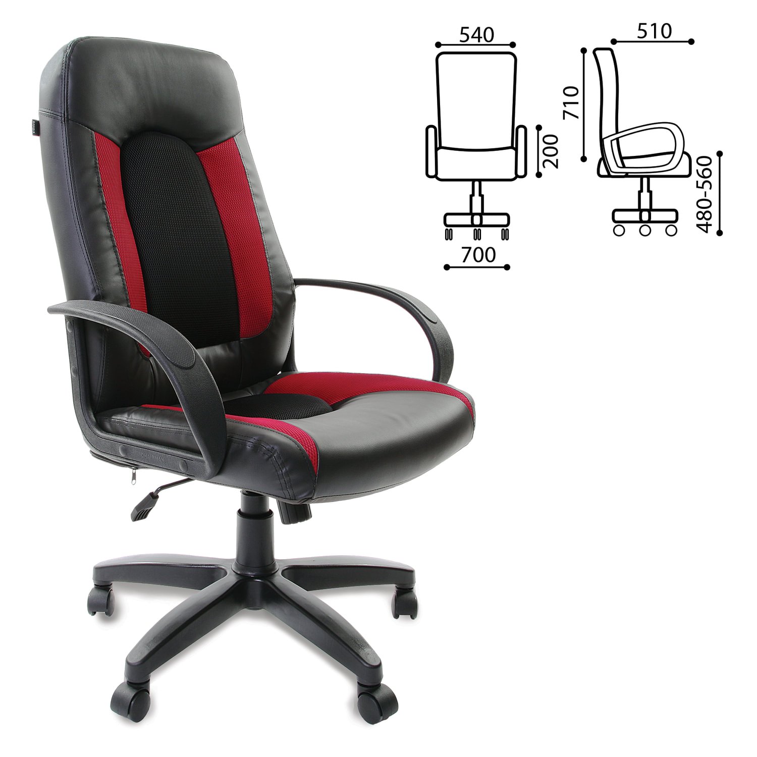 Кресло офисное BRABIX "Strike EX-525", экокожа черная, ткань черная/бордовая, TW, 531379