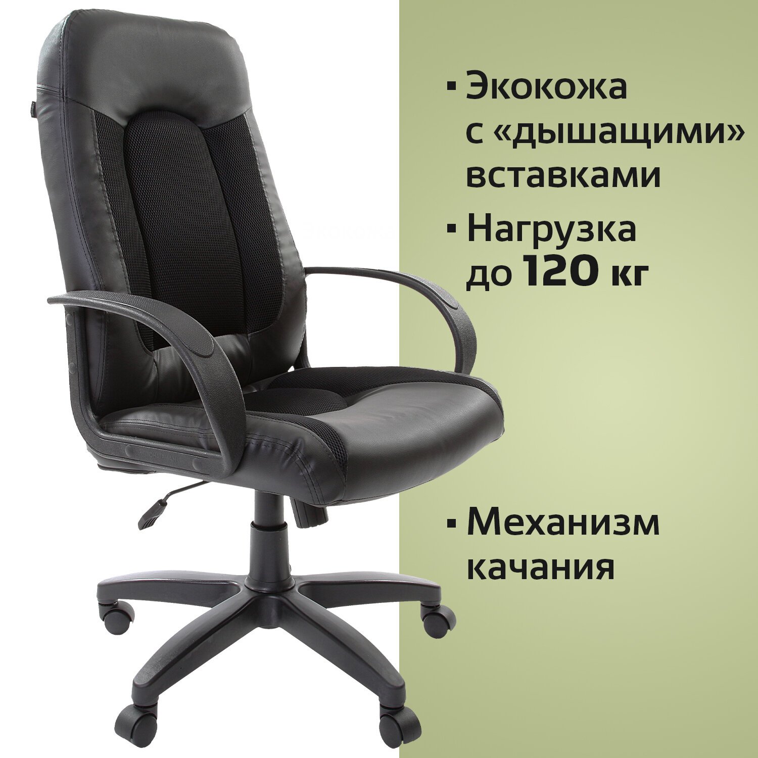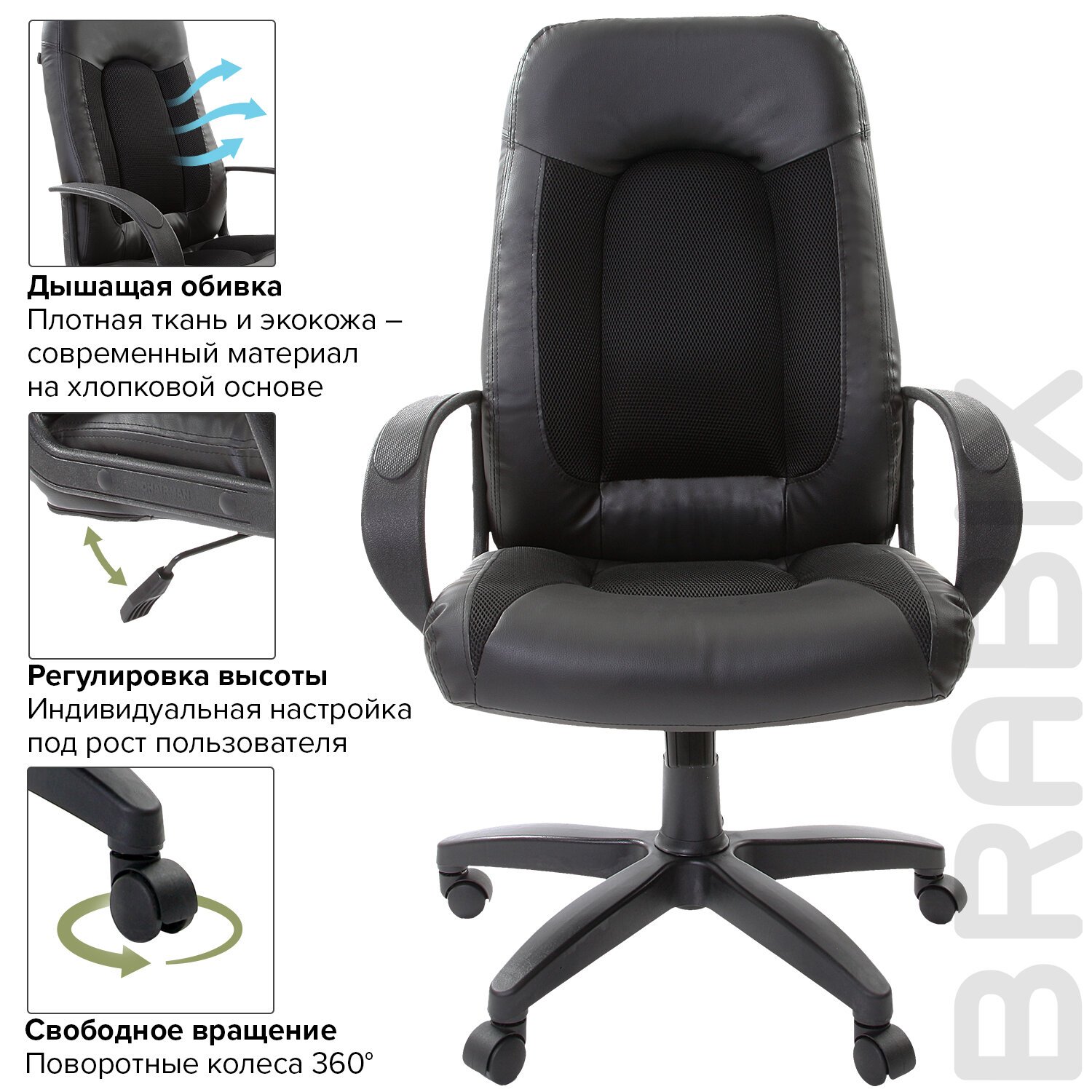 Кресло офисное BRABIX "Strike EX-525", экокожа черная, 531382