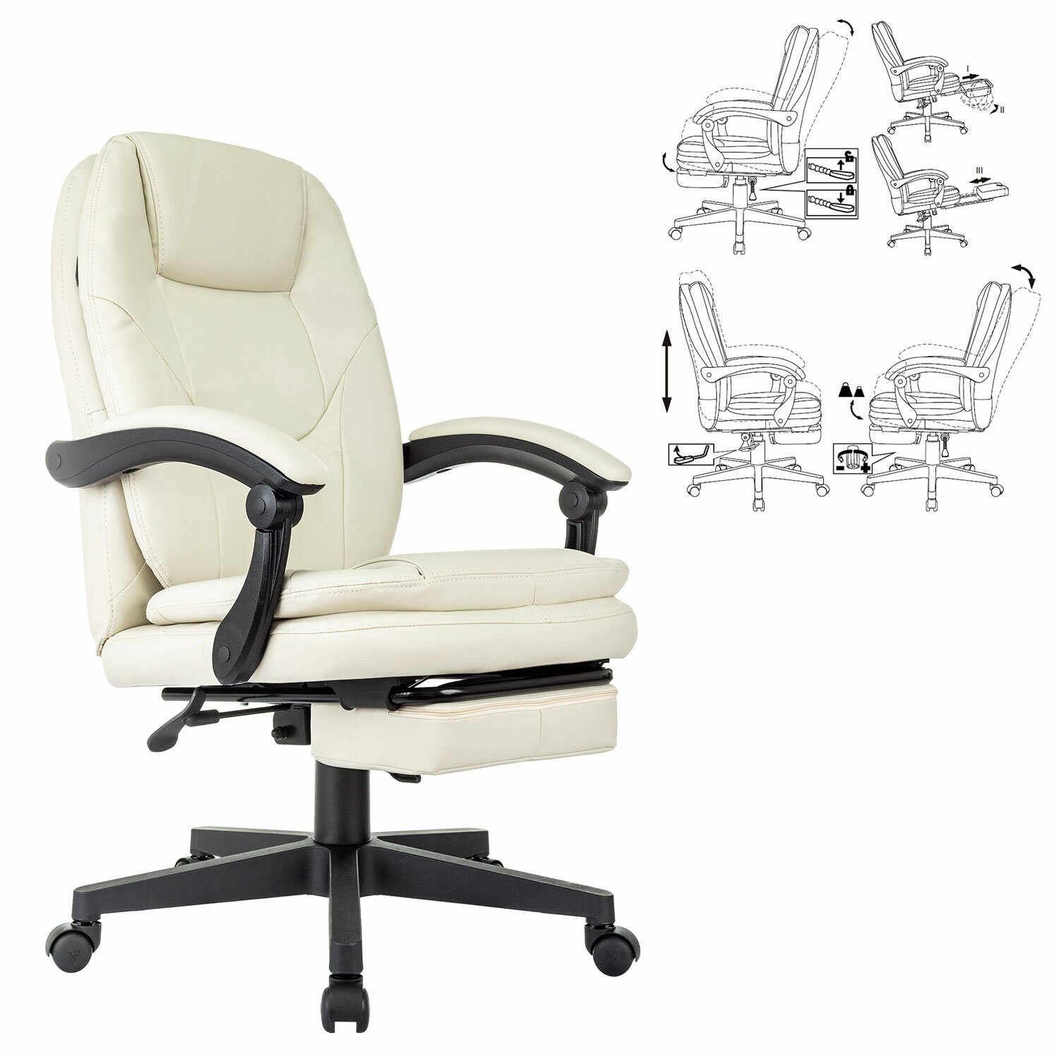 Кресло офисное CH-868N-BF, синхромеханизм, подставка для ног, экокожа, бежевое, 2018357