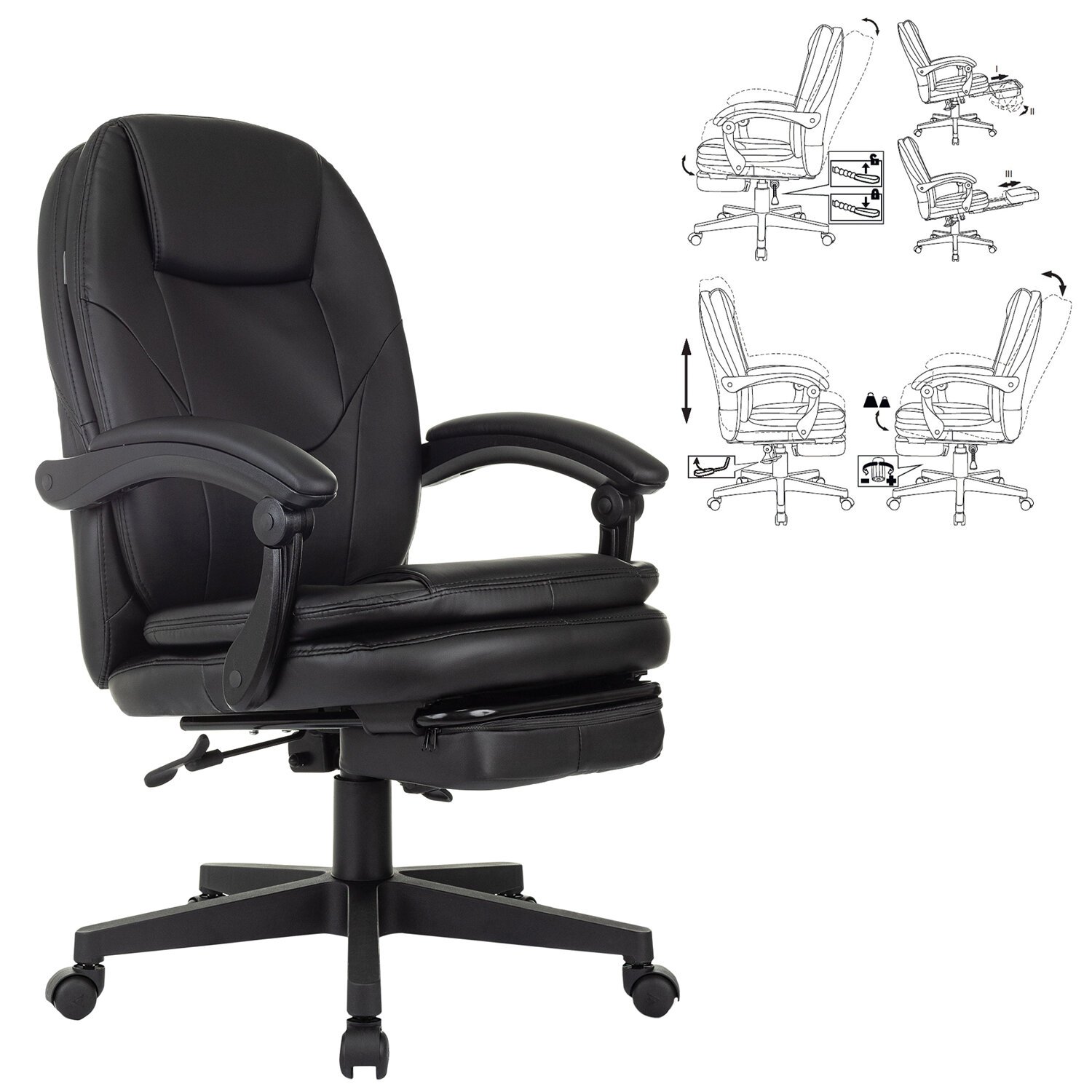 Кресло офисное CH-868N-BF, синхромеханизм, подставка для ног, экокожа, черное, 2018358