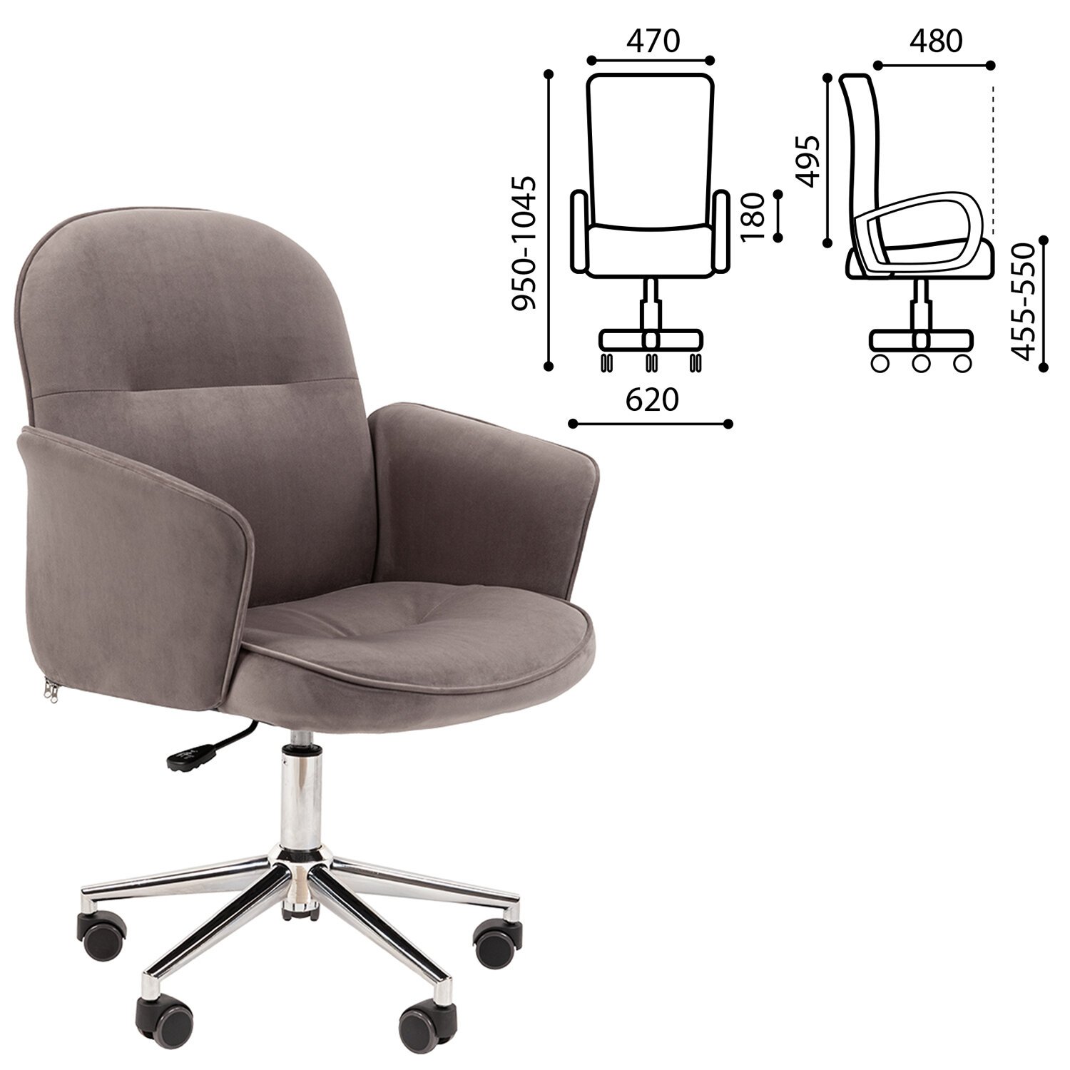 Современный дизайн уютного кресла с мягкой обивкой из велюра. Наполнитель из вспененного полиуретана и спец. материала openform, а также подлокотники с мягкими вставками позволят комфортно расположится в кресле и для работы, и для отдыха.