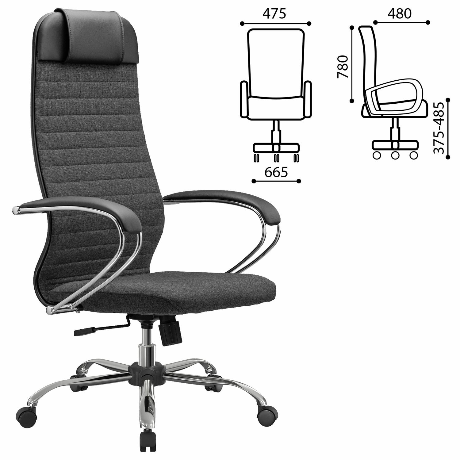Кресло офисное МЕТТА "К-27" хром, ткань, сиденье и спинка мягкие, серое