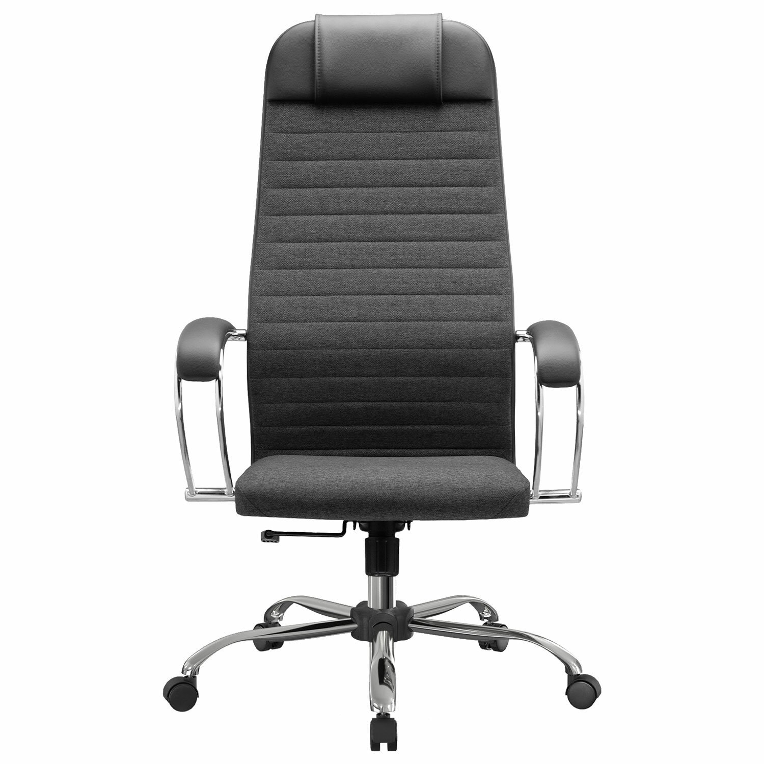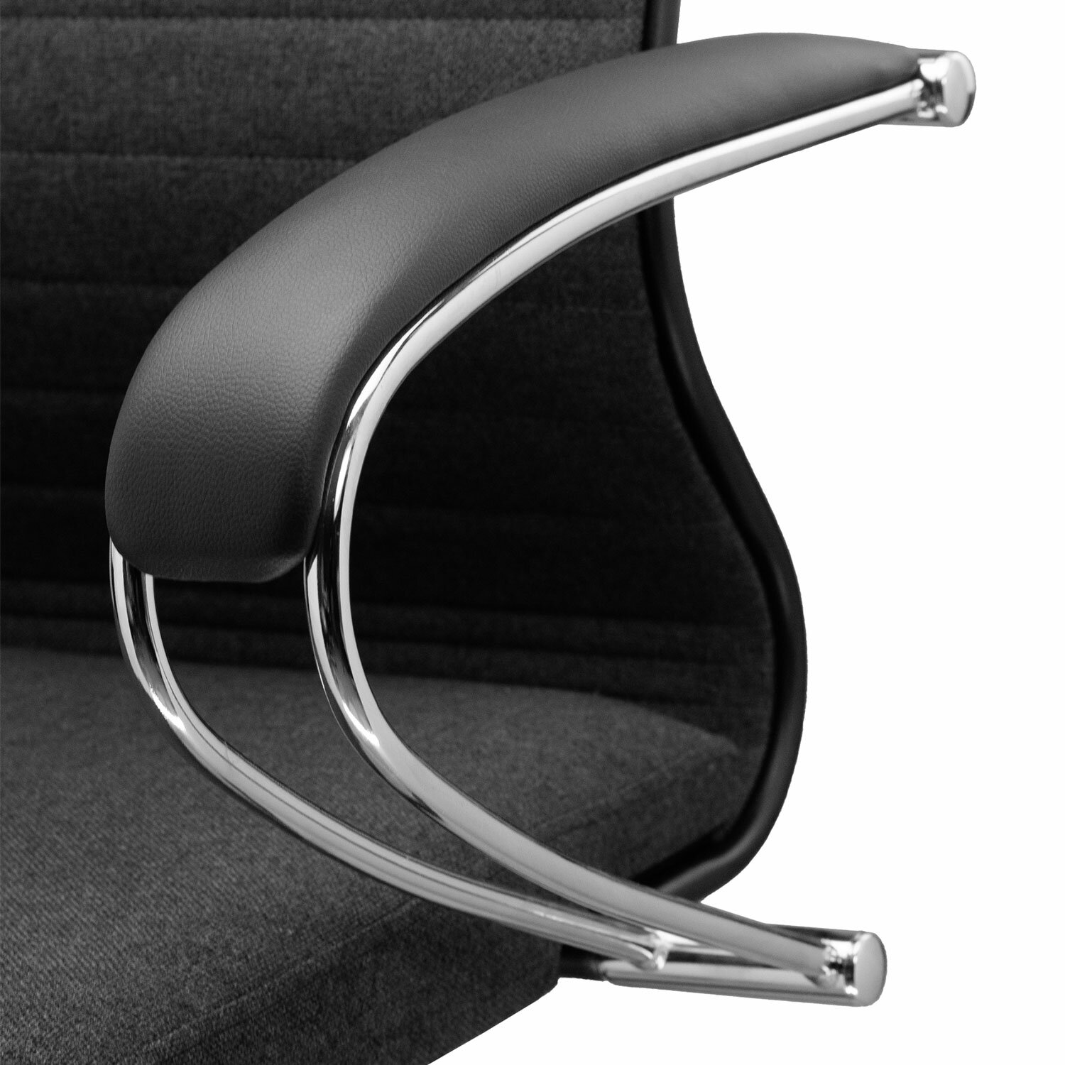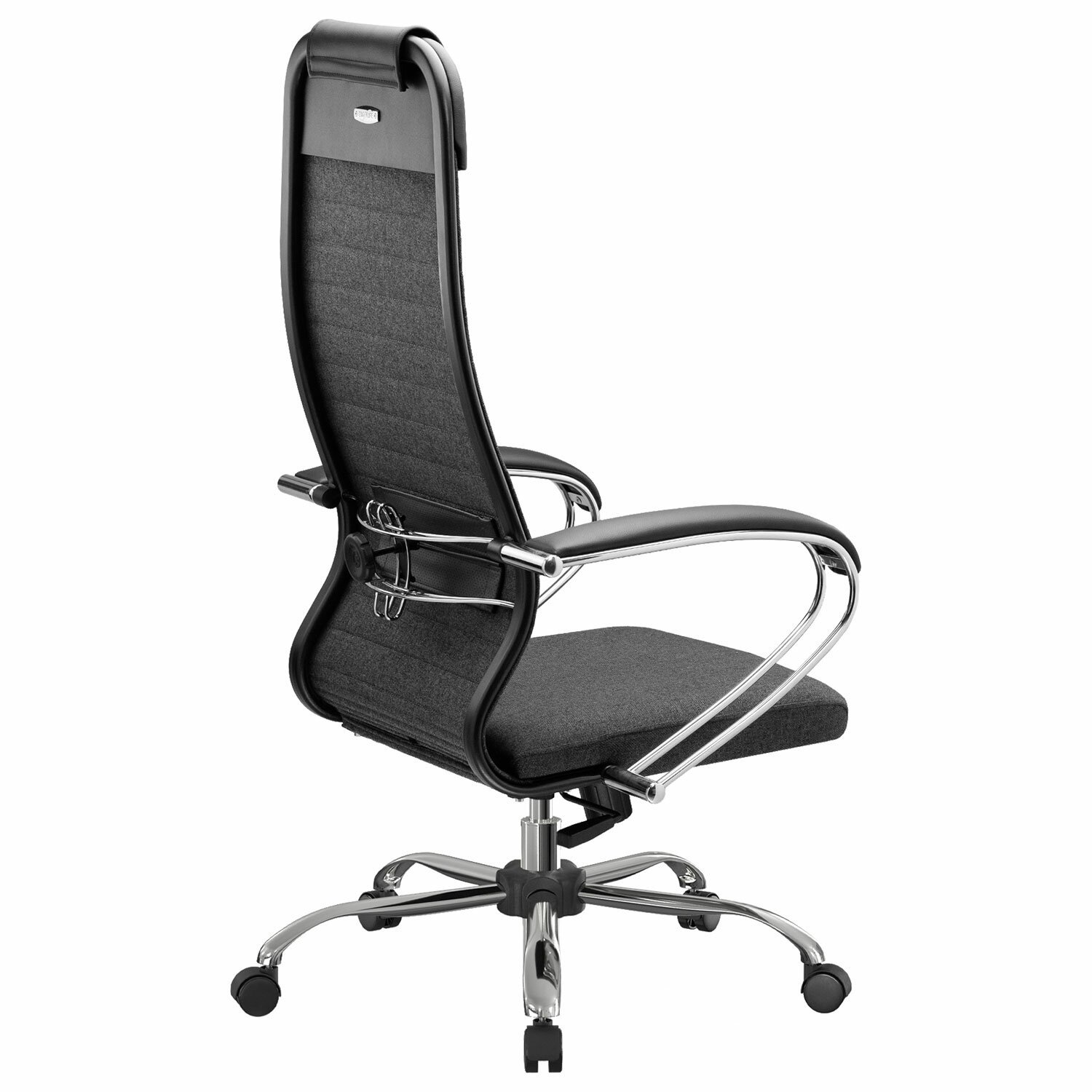 Кресло офисное МЕТТА "К-5.1" хром, ткань-сетка/экокожа, сиденье мягкое, черное