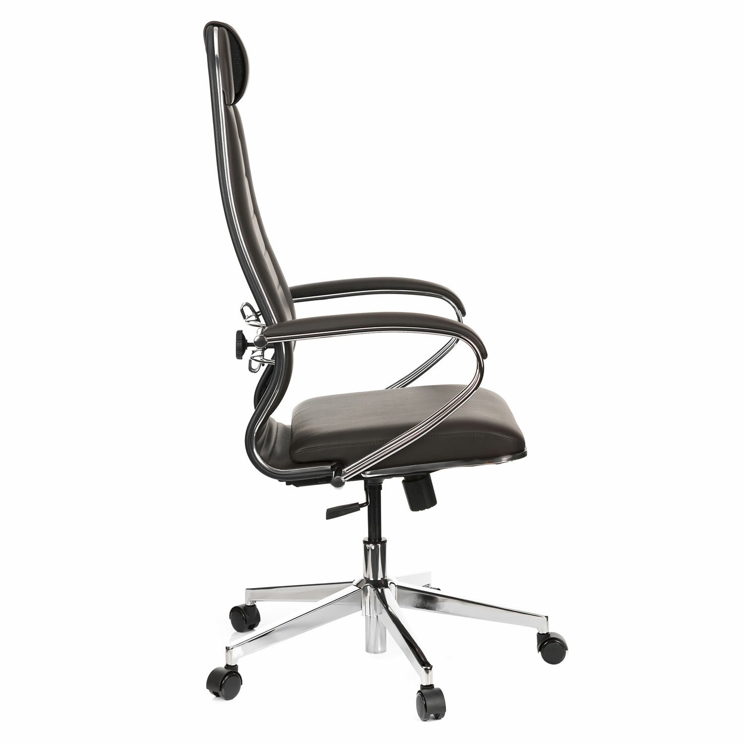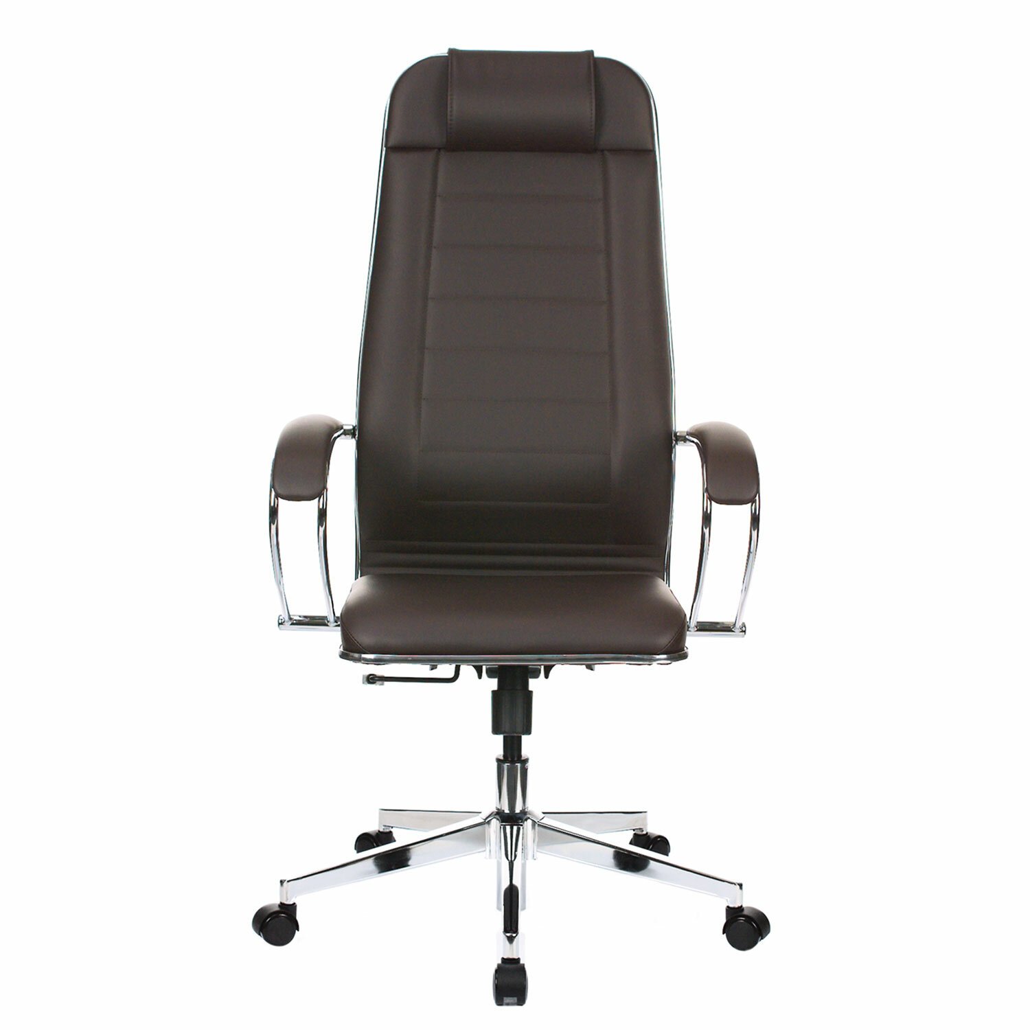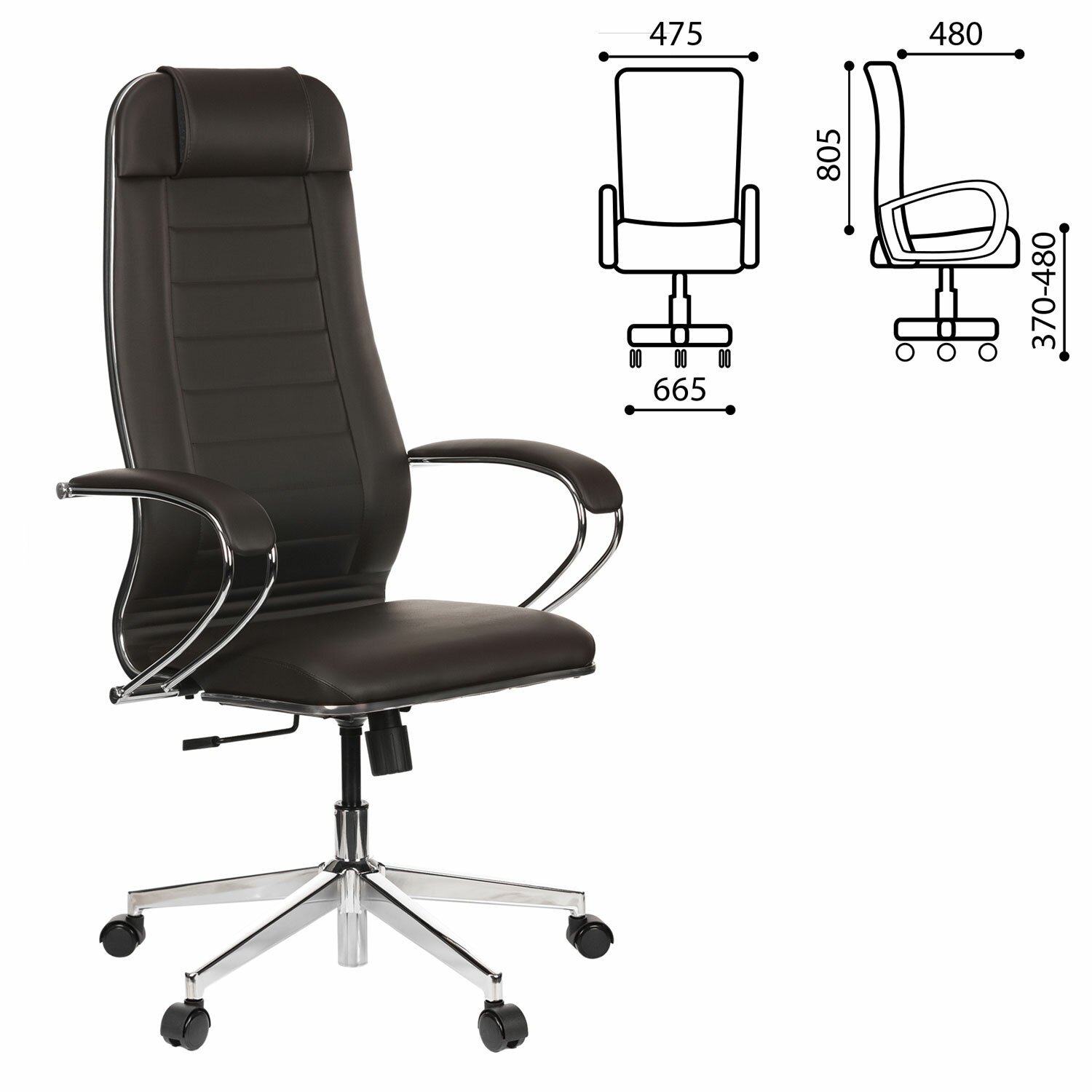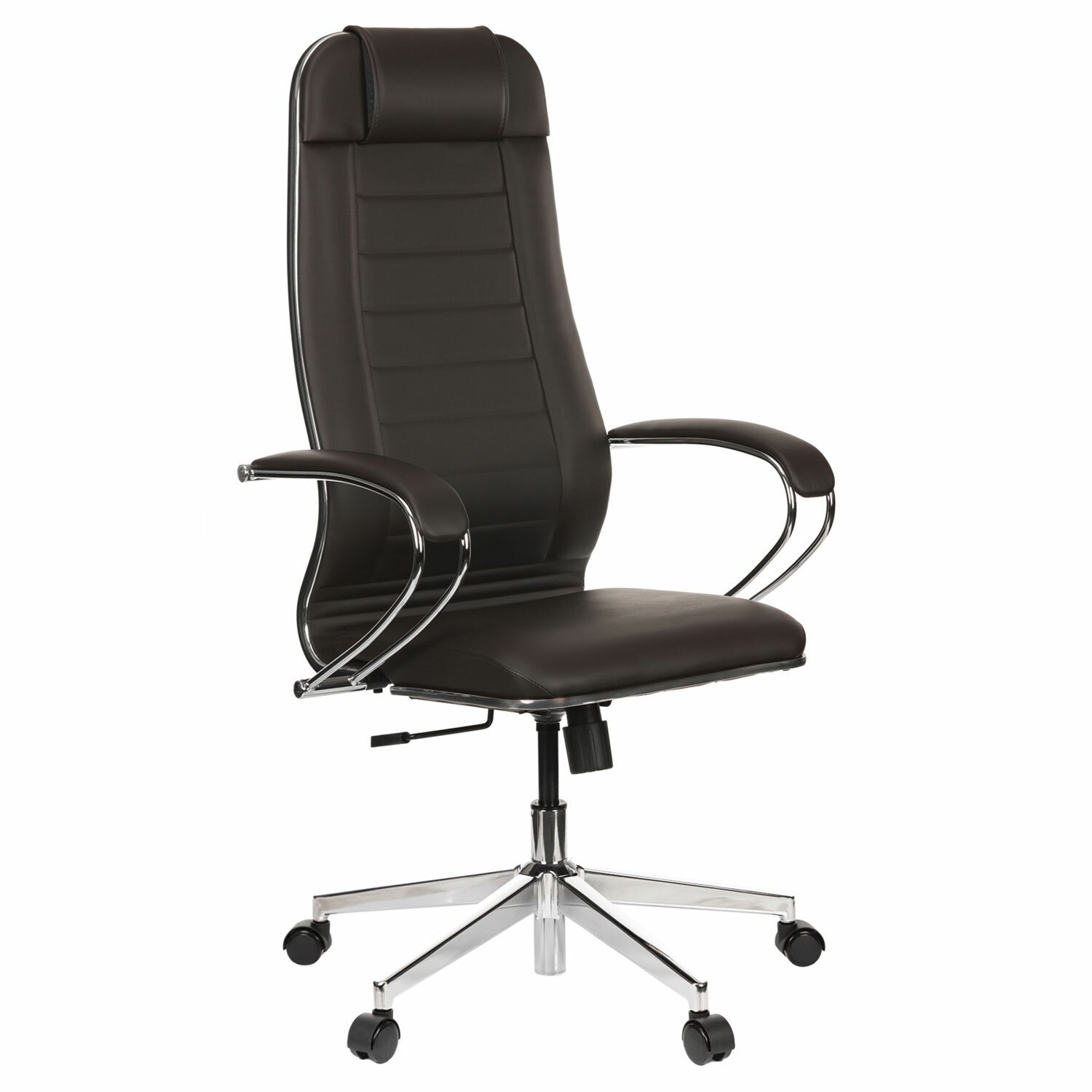 Кресло офисное МЕТТА "К-29" хром, экокожа, сиденье и спинка мягкие, темно-коричневое