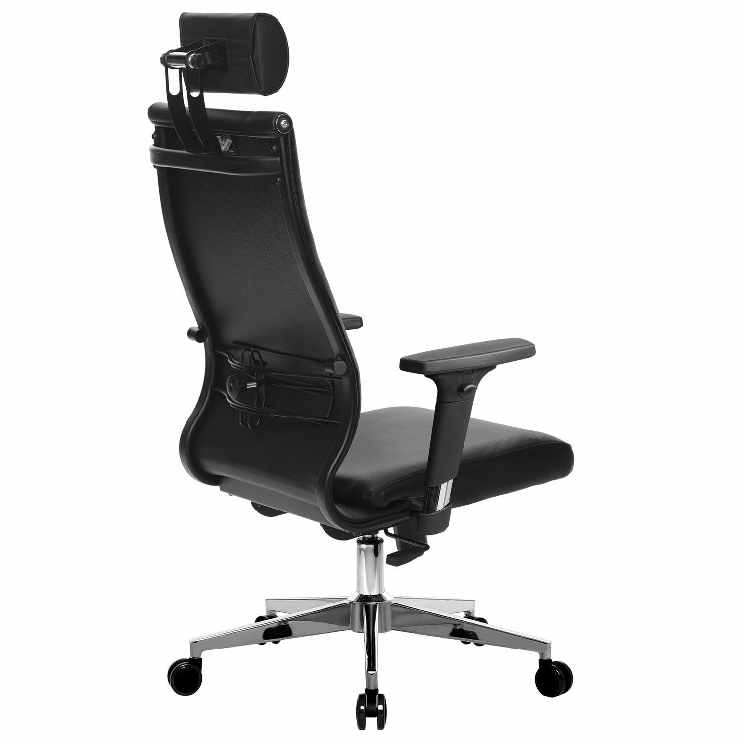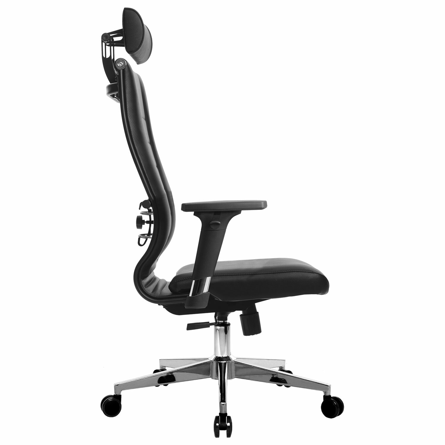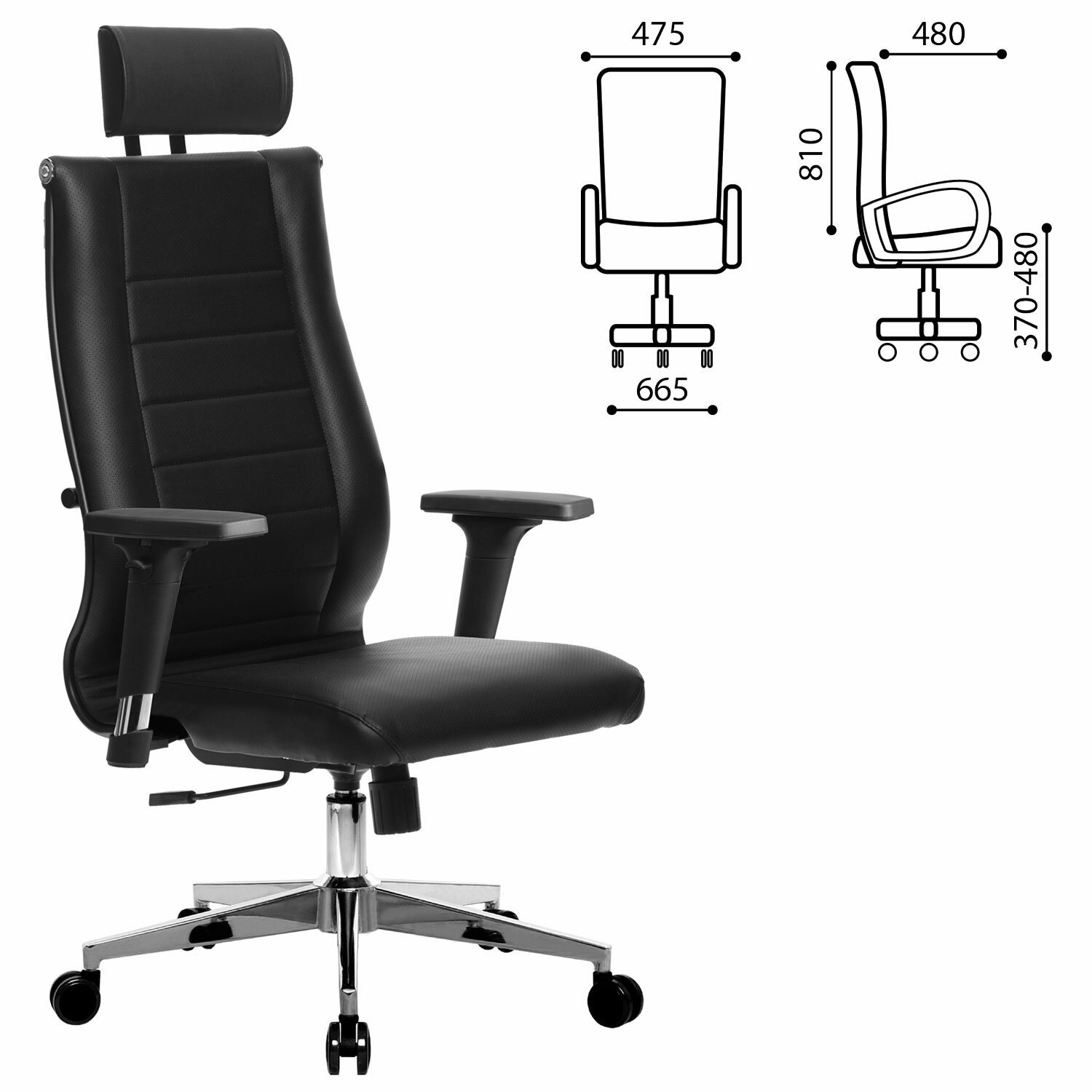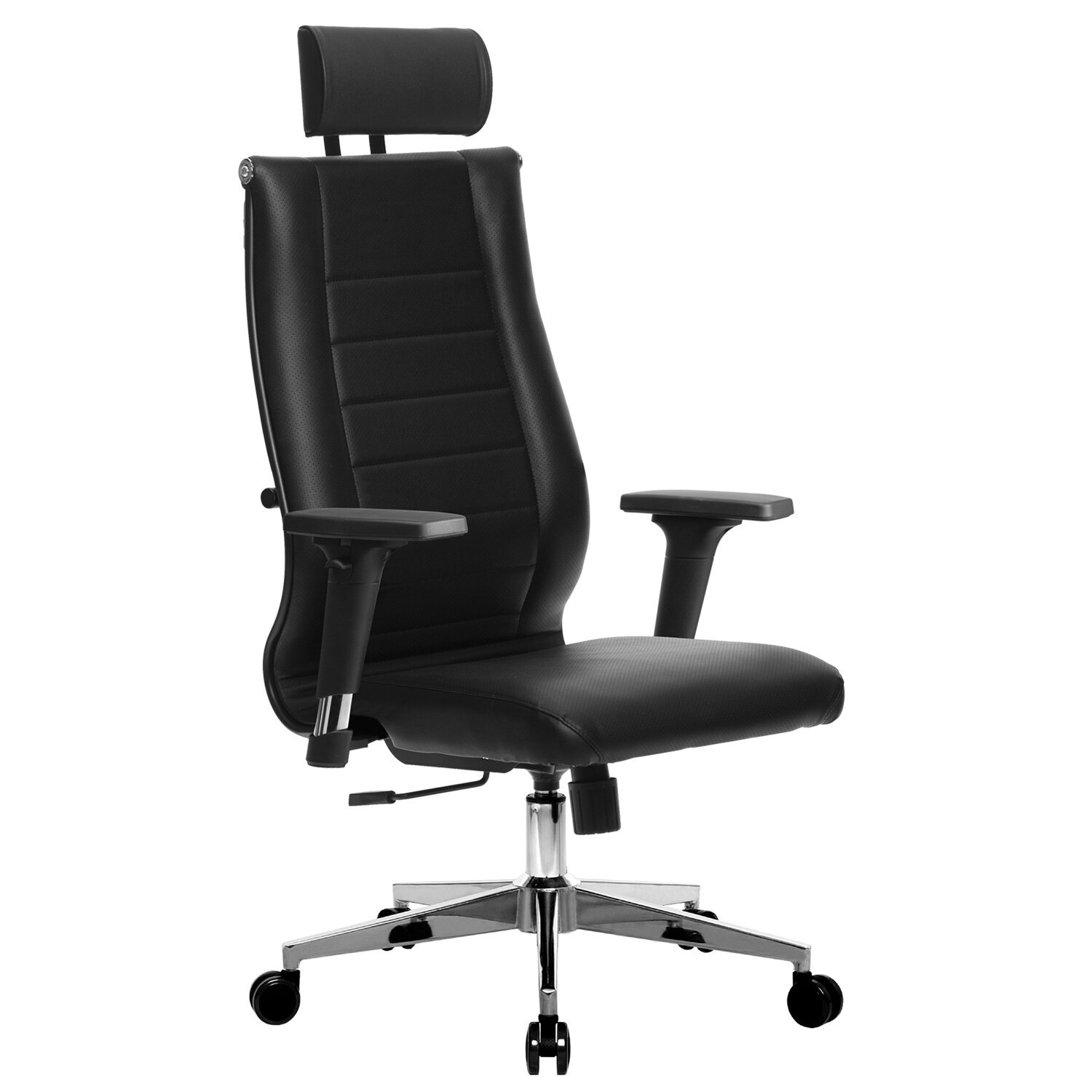 Кресло офисное МЕТТА "К-32-2D" хром, экокожа, подголовник, сиденье и спинка мягкие, черное