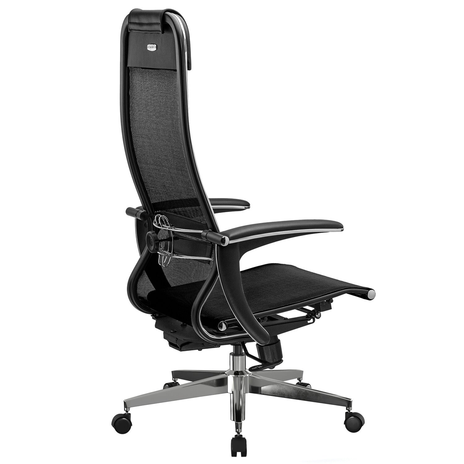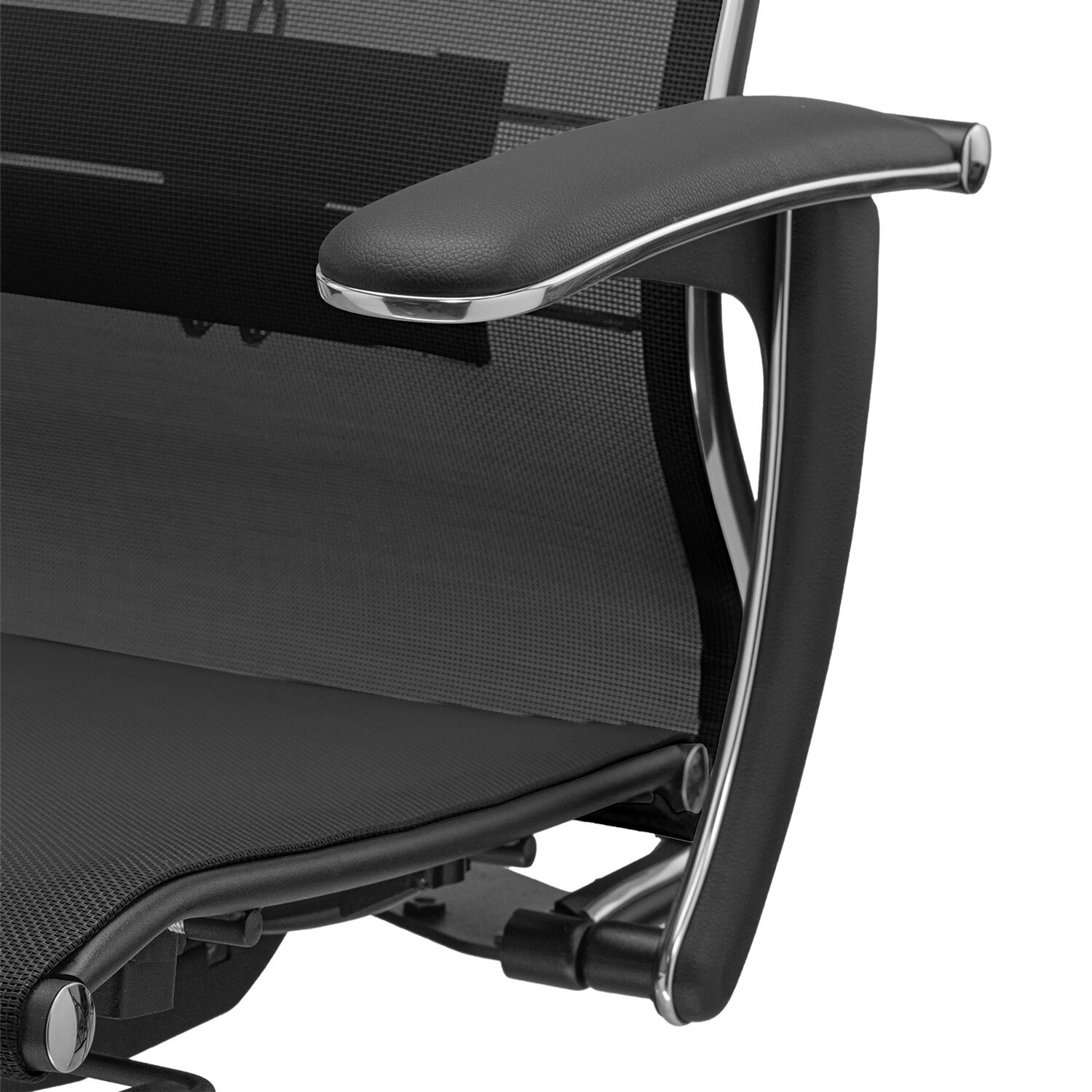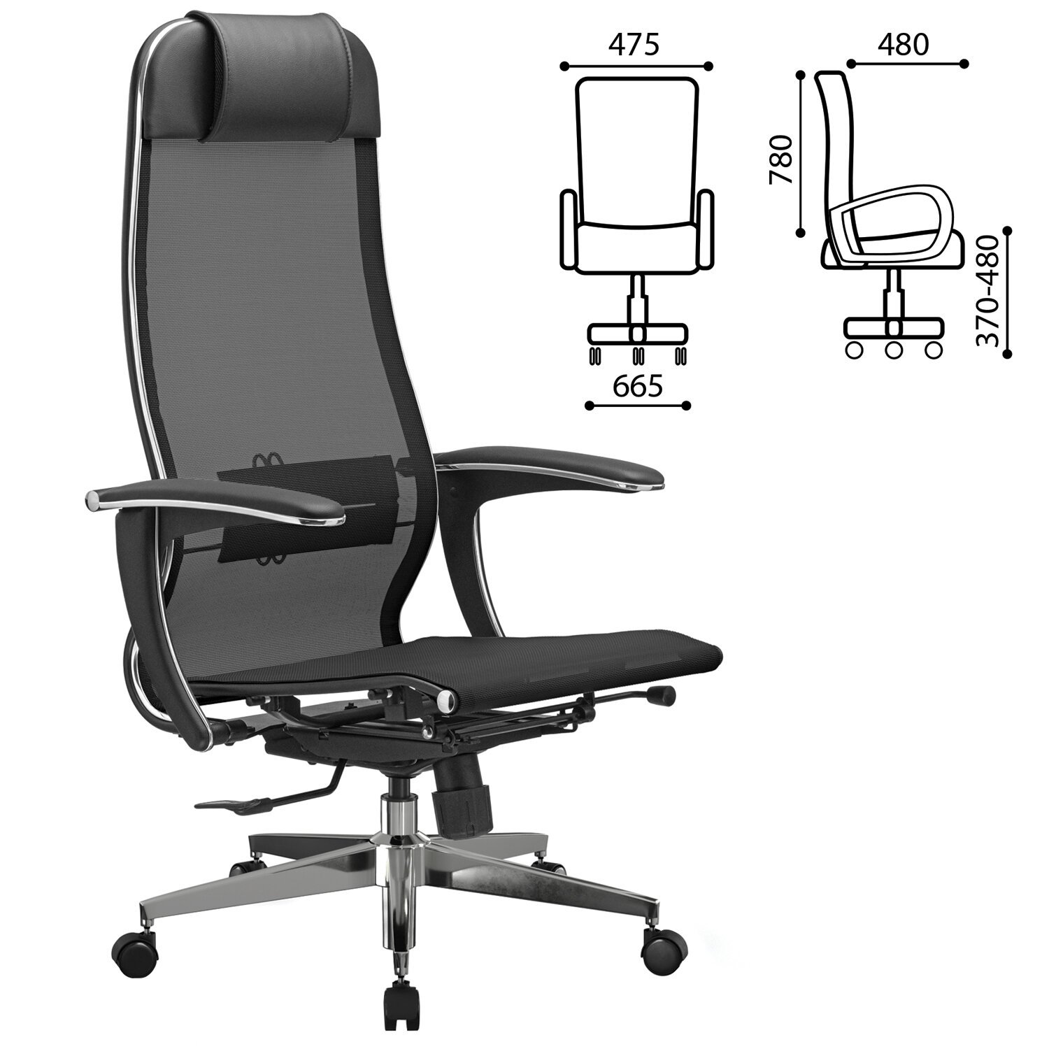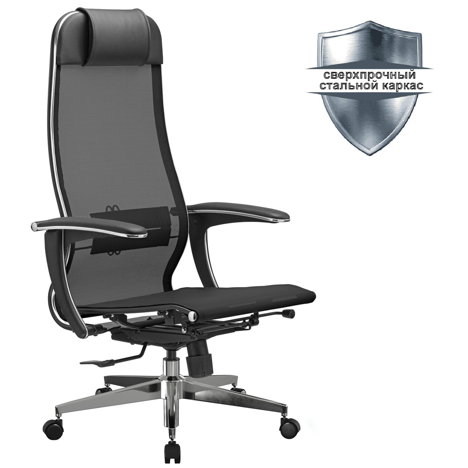 Кресло офисное МЕТТА "К-4-Т" хром, прочная сетка, сиденье и спинка регулируемые, черное