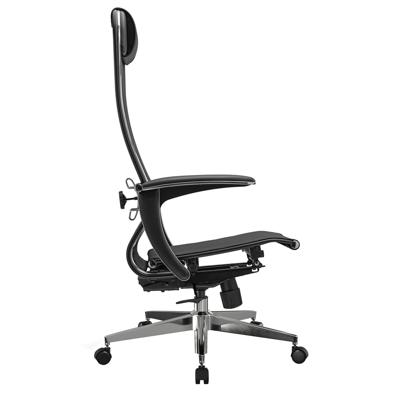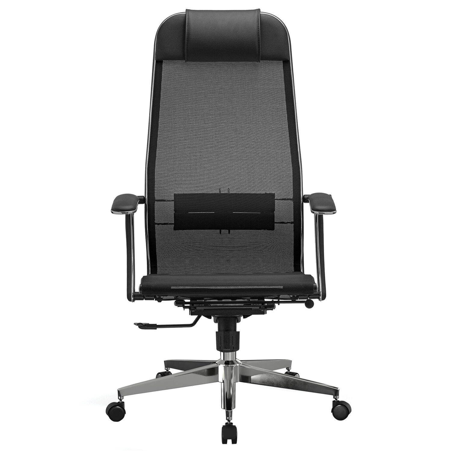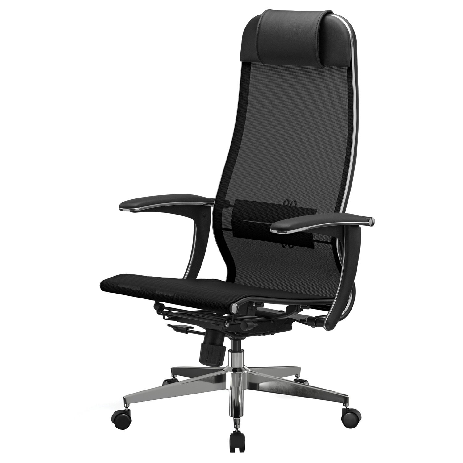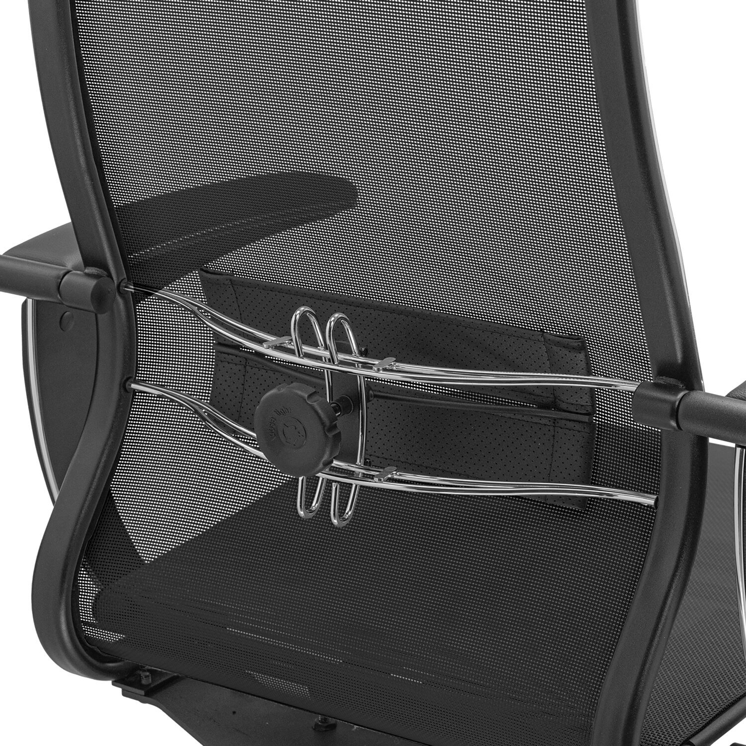 Кресло офисное МЕТТА "К-4-Т" хром, прочная сетка, сиденье и спинка регулируемые, черное
