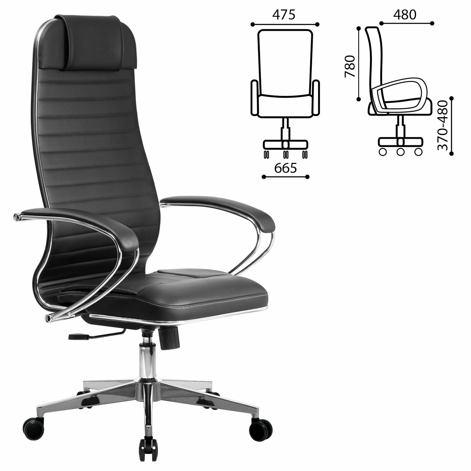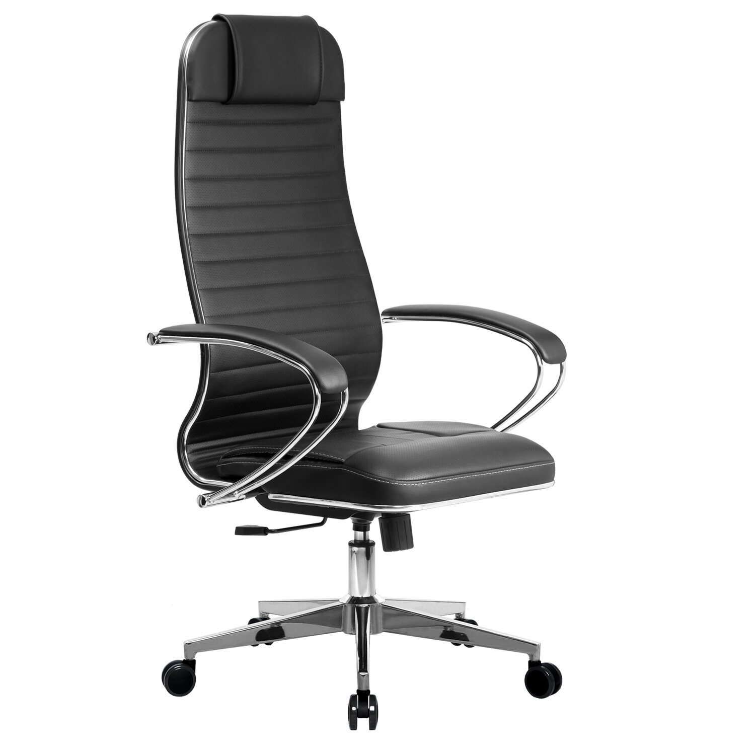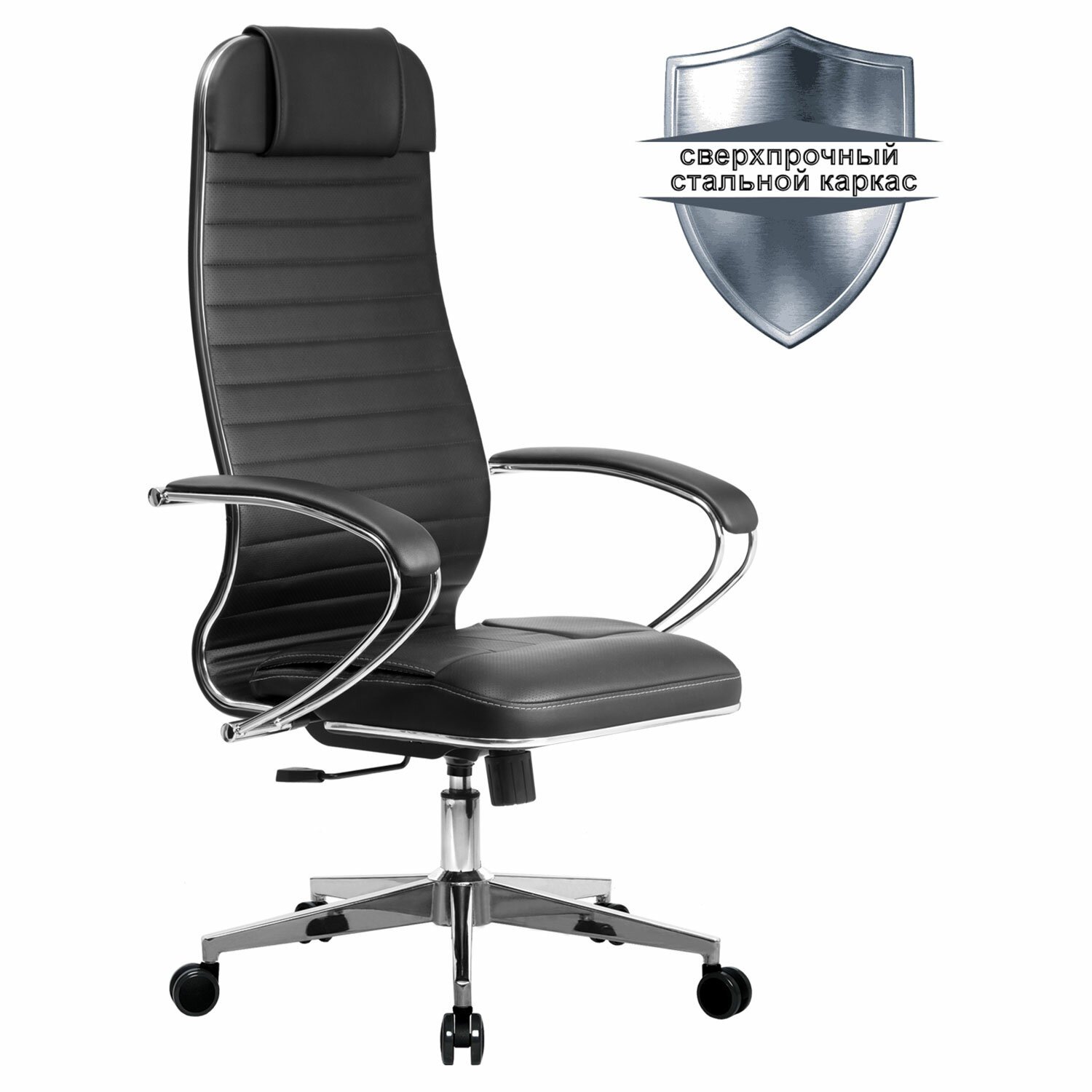 Кресло офисное МЕТТА "К-6" хром, экокожа, сиденье и спинка мягкие, черное