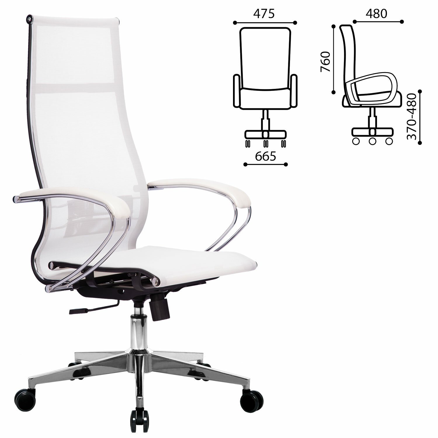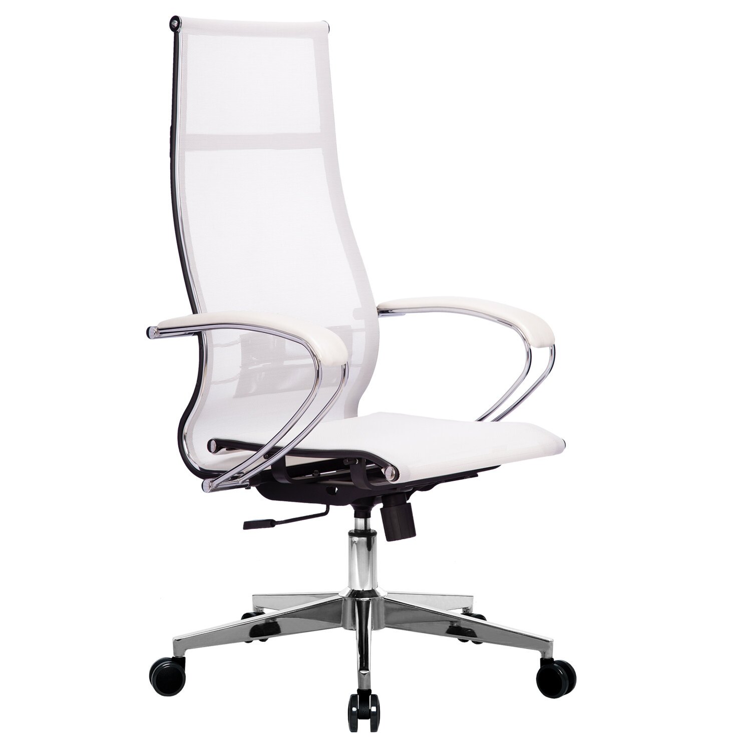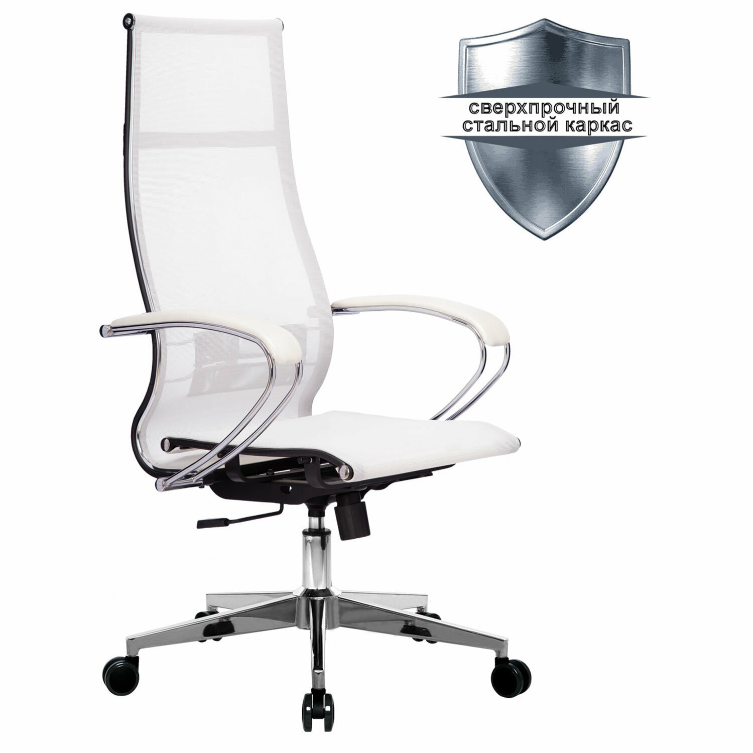 Кресло офисное МЕТТА "К-7" хром, прочная сетка, сиденье и спинка регулируемые, белое