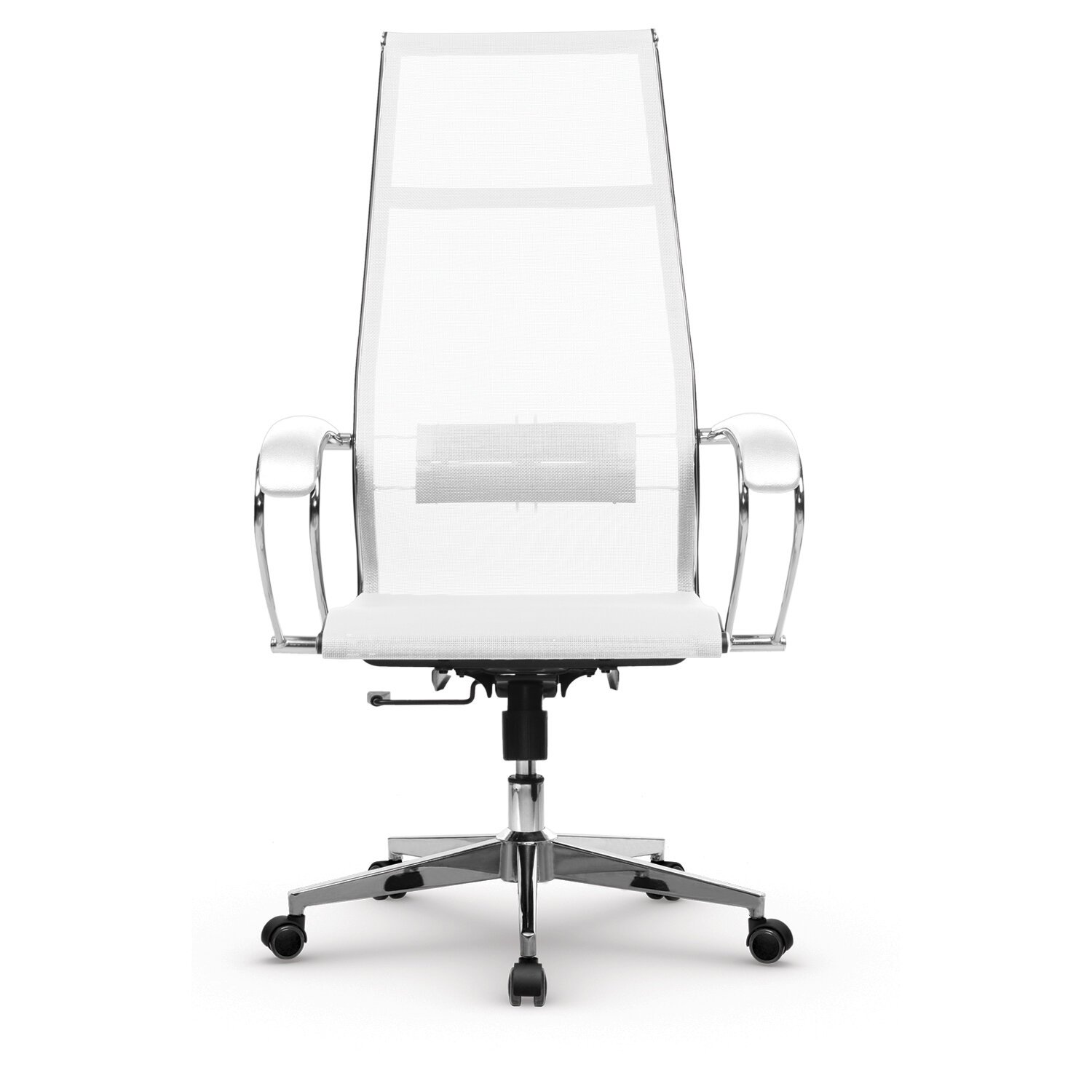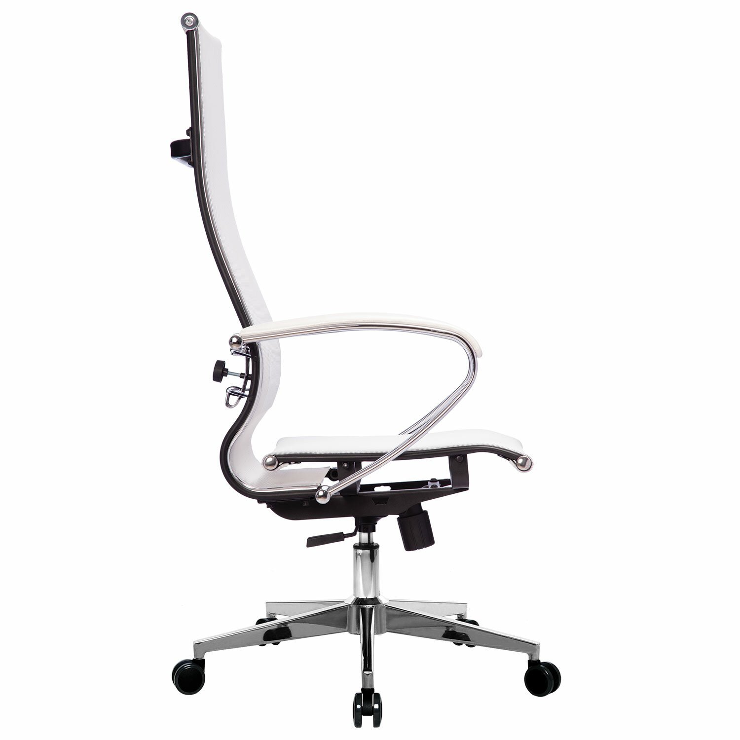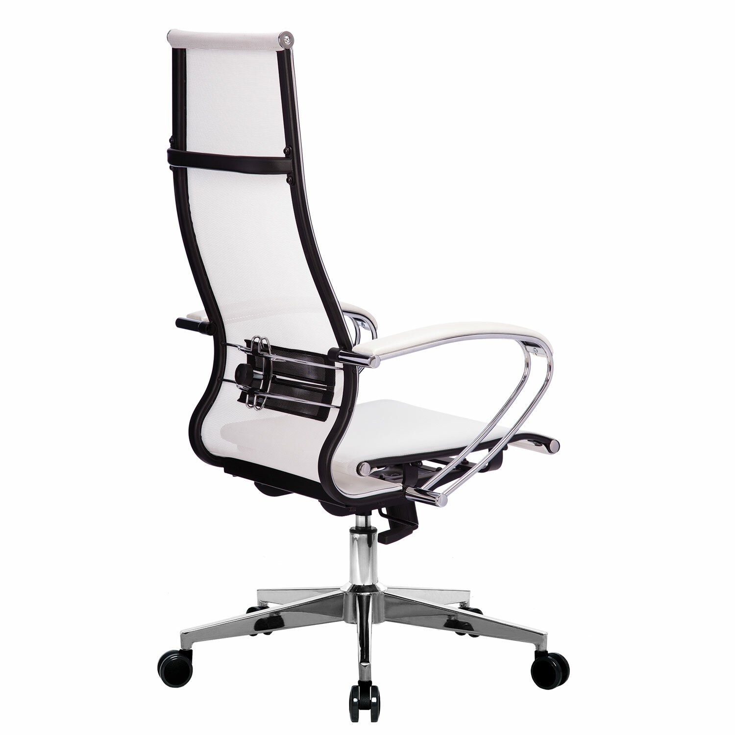 Кресло офисное МЕТТА "К-7" хром, прочная сетка, сиденье и спинка регулируемые, белое