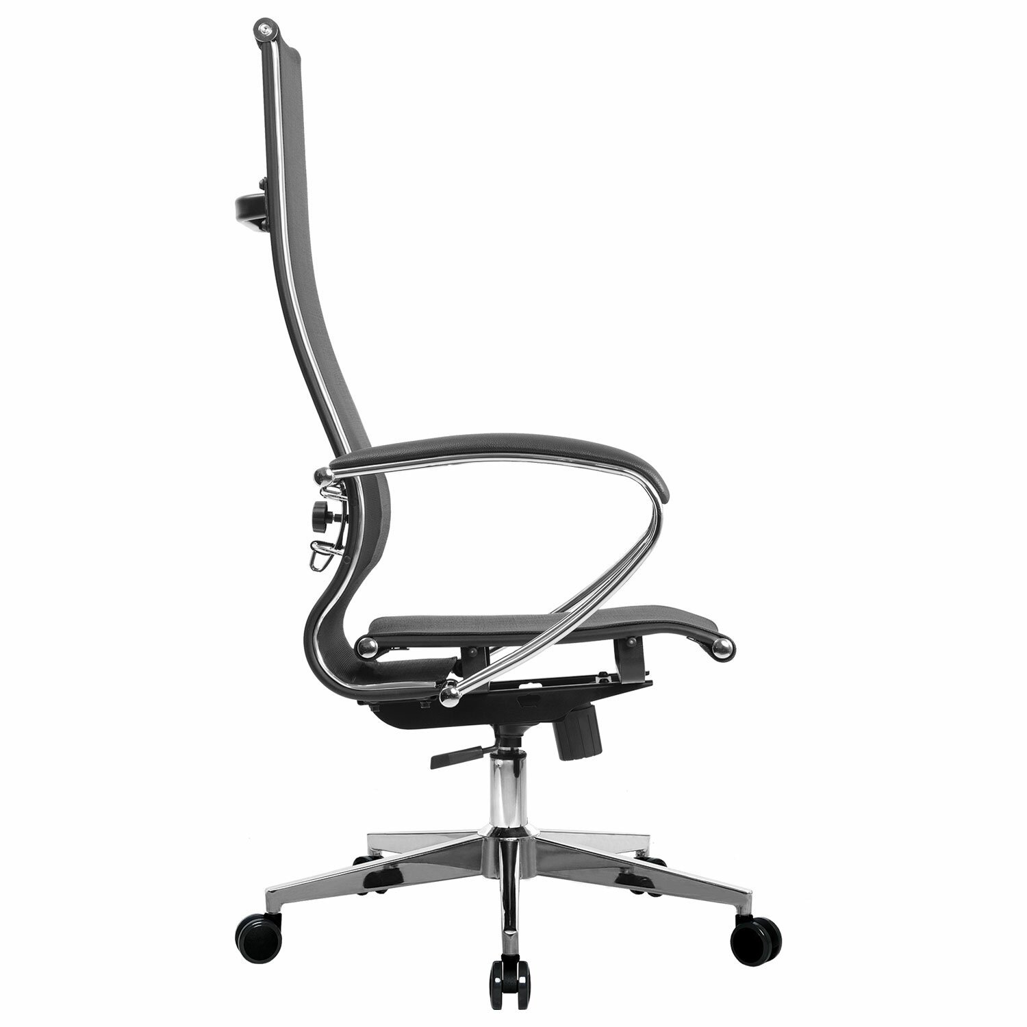 Кресло офисное МЕТТА "К-7" хром, прочная сетка, сиденье и спинка регулируемые, черное