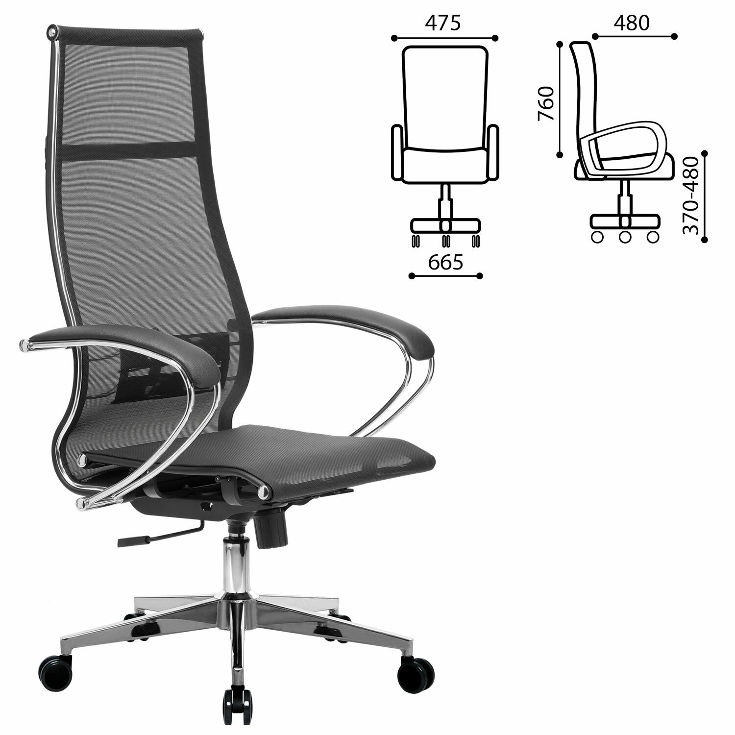 Кресло офисное МЕТТА "К-9" хром, прочная сетка, сиденье и спинка регулируемые, черное