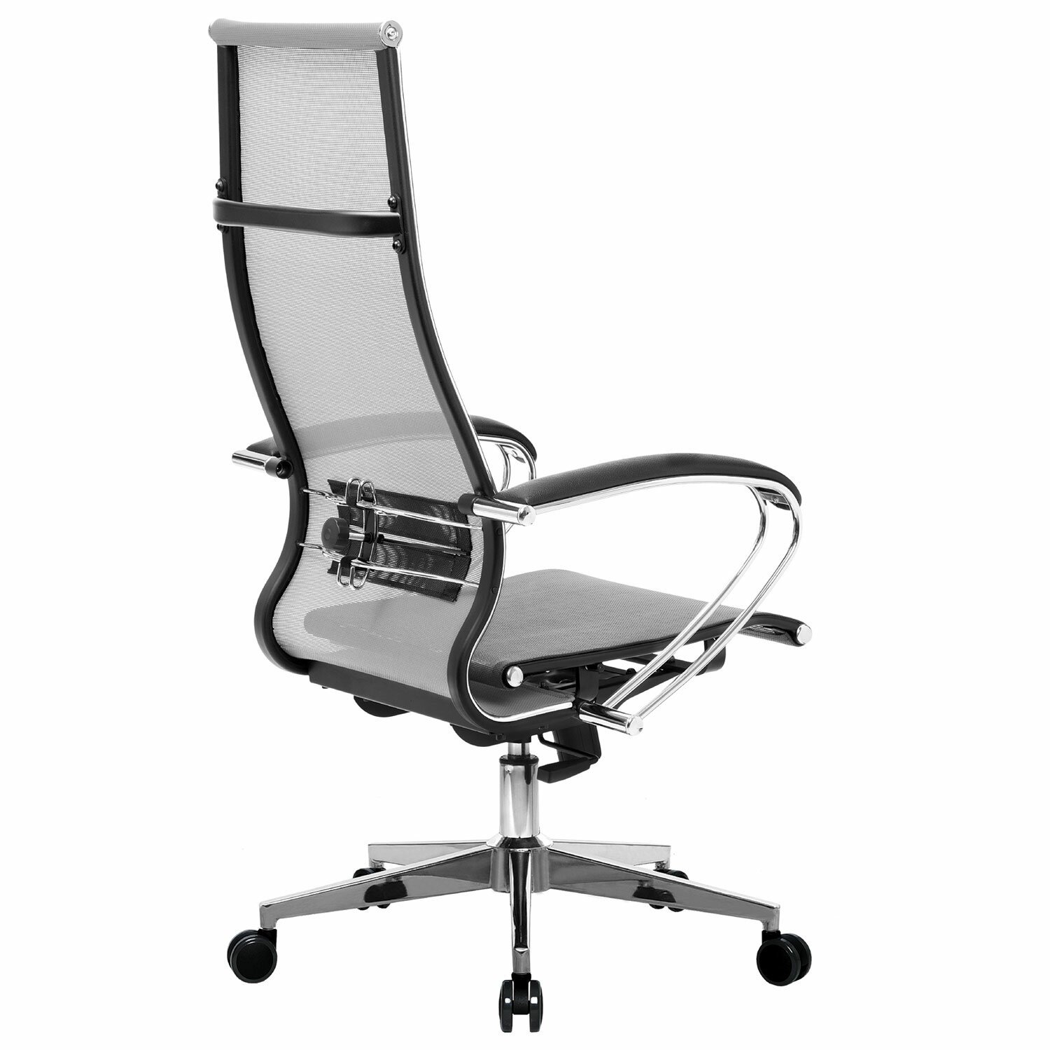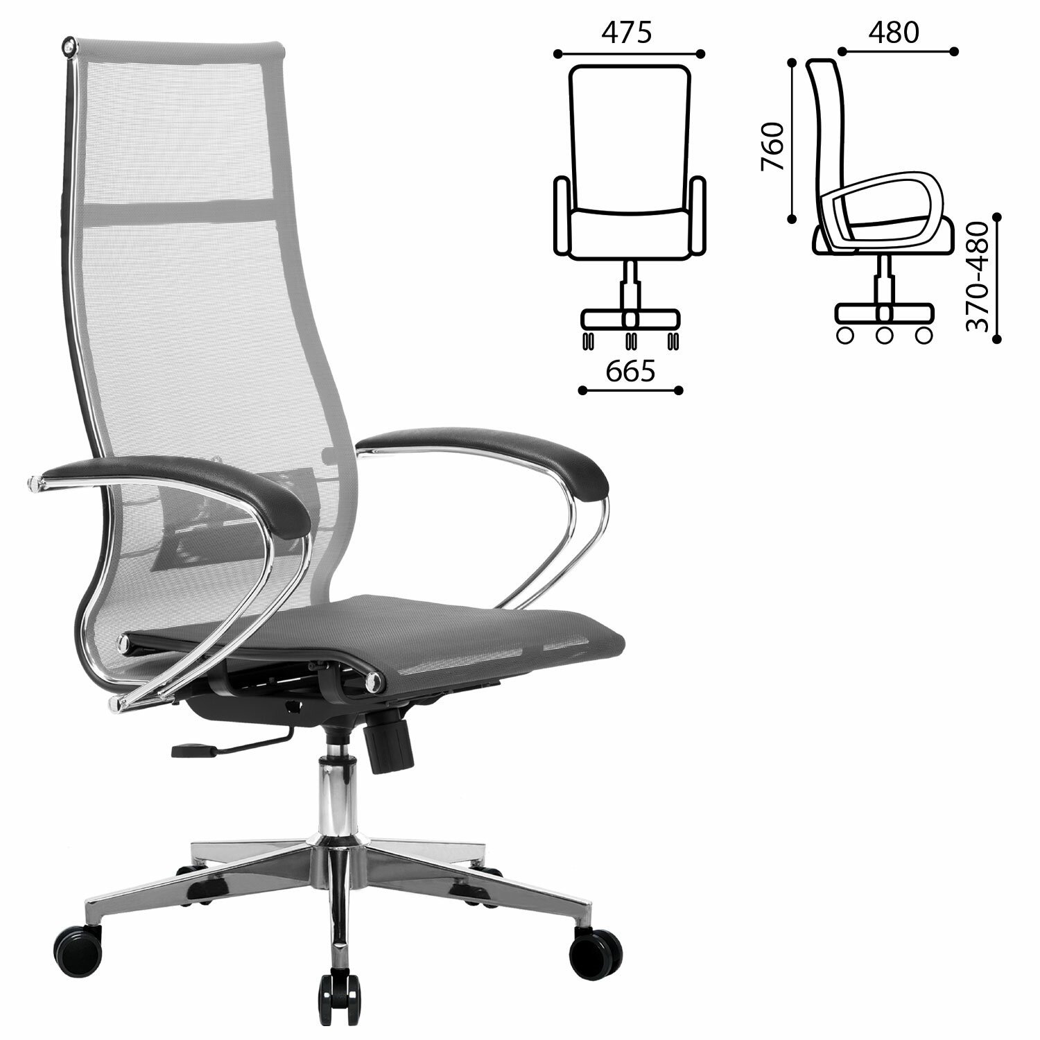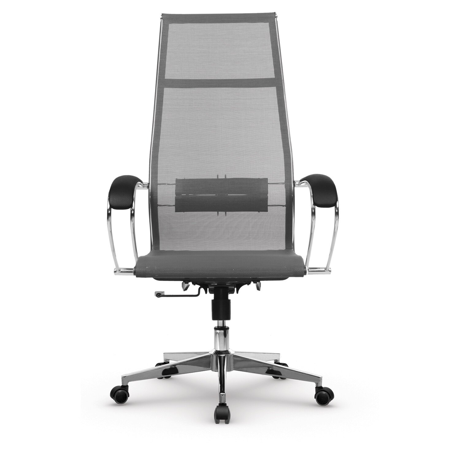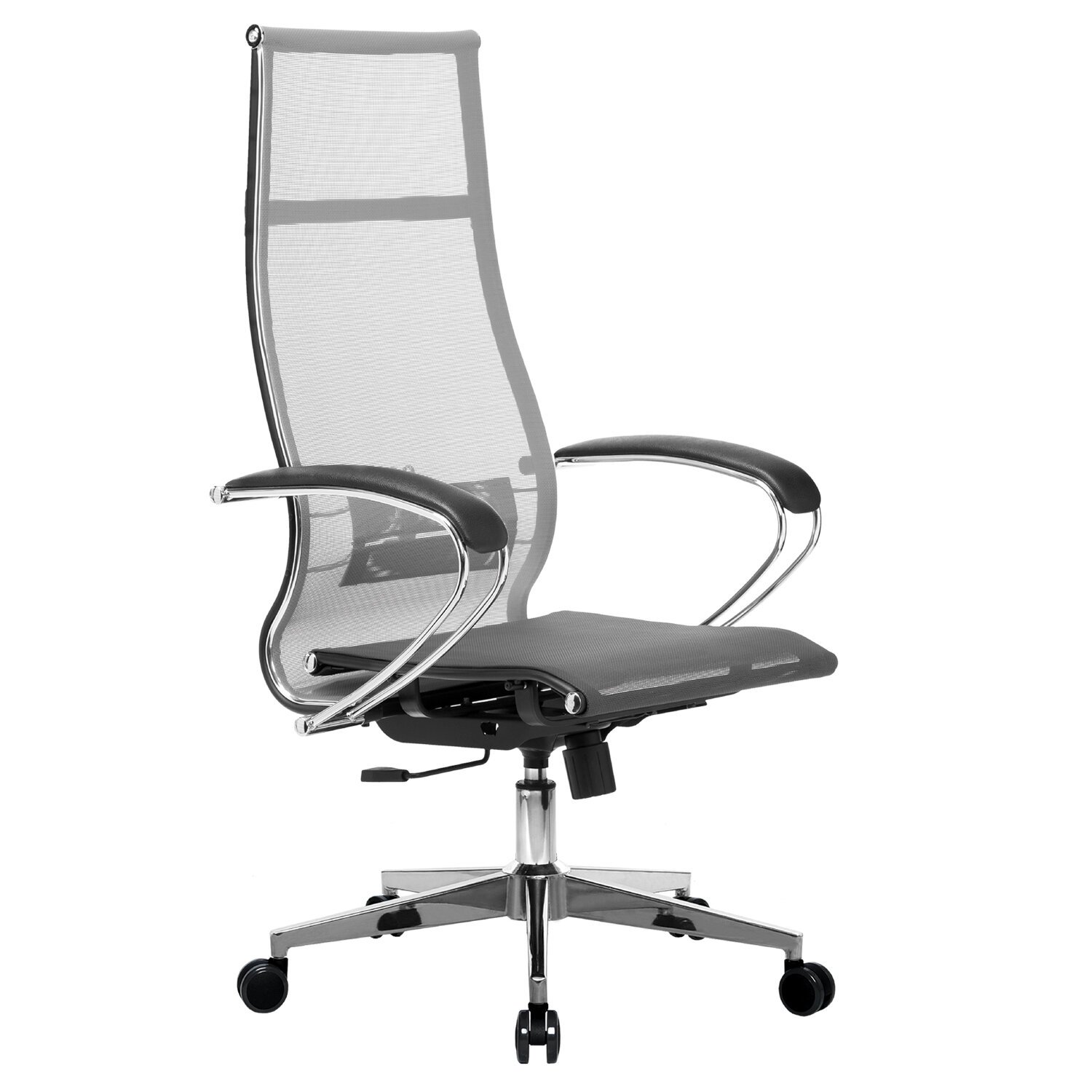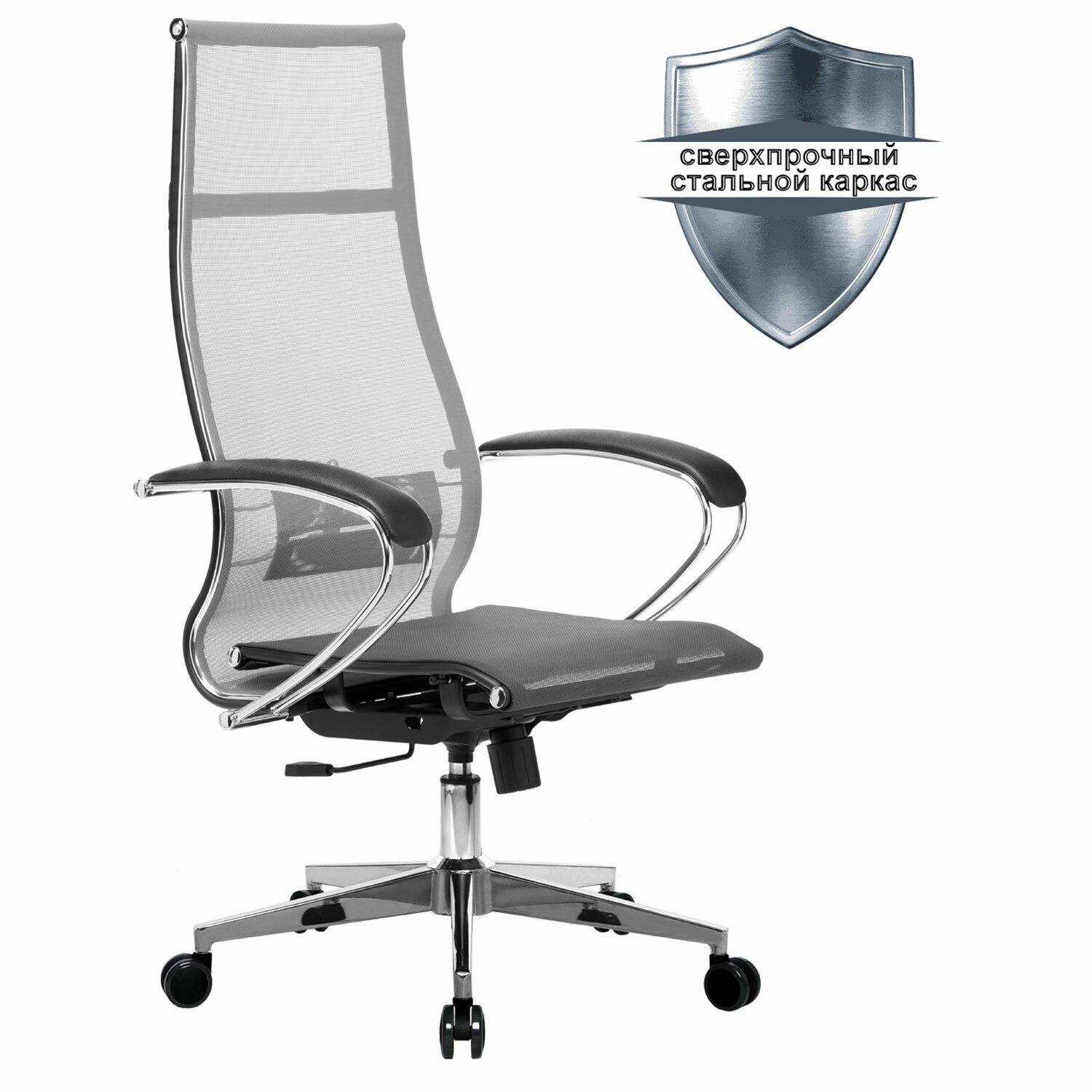Кресло офисное МЕТТА "К-7" хром, прочная сетка, сиденье и спинка регулируемые, серое