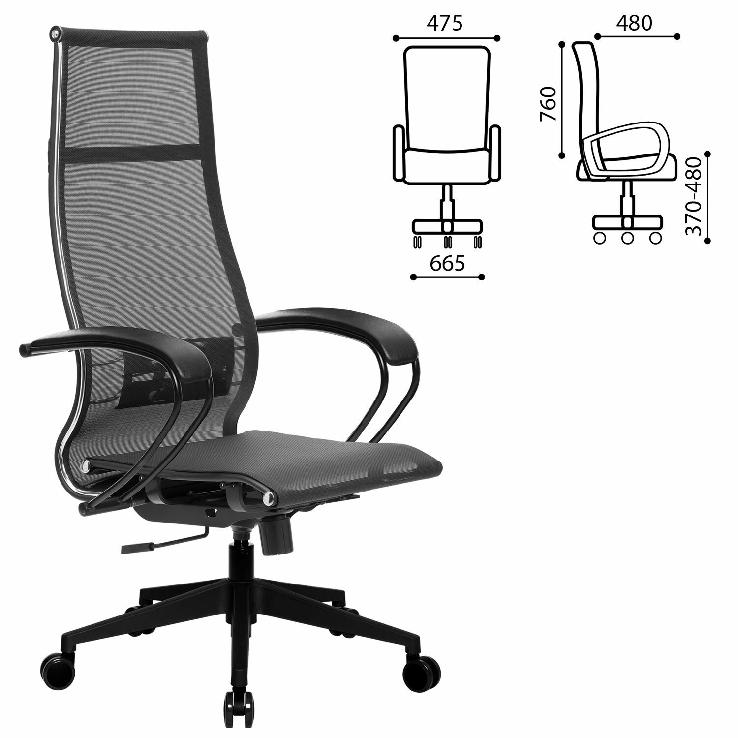 Кресло офисное МЕТТА "К-7" пластик, прочная сетка, сиденье и спинка регулируемые, черное