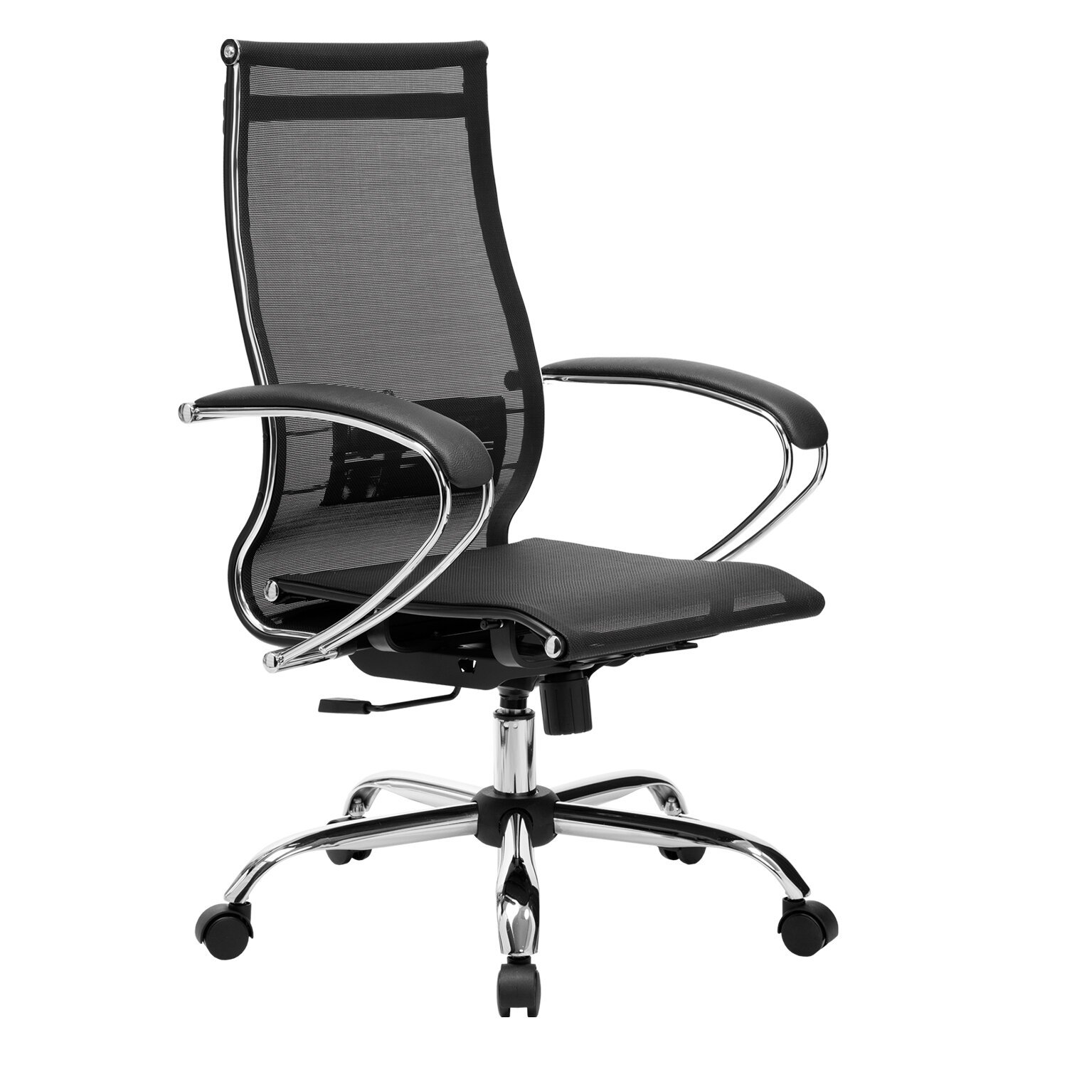 Кресло офисное МЕТТА "К-9" хром, прочная сетка, сиденье и спинка регулируемые, черное