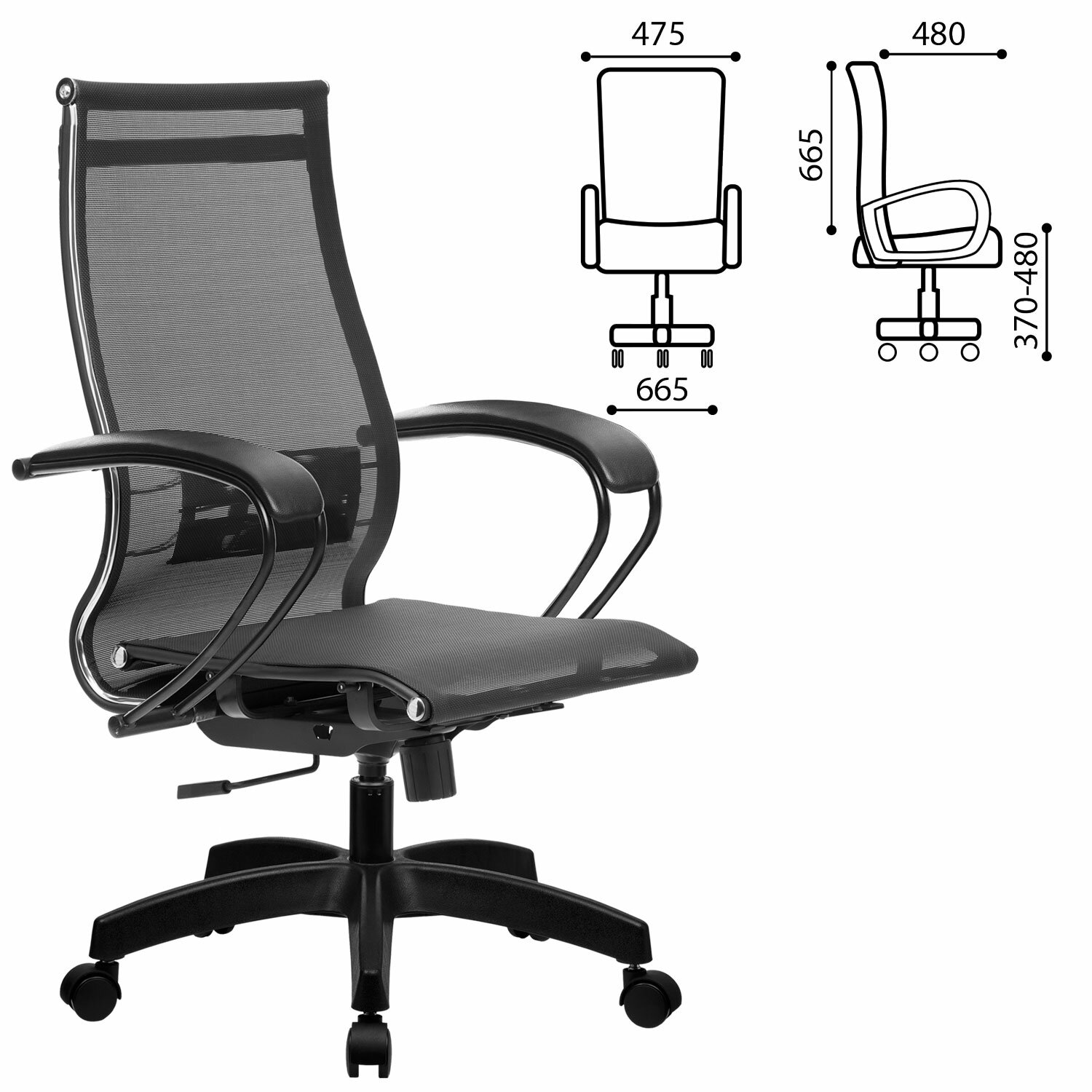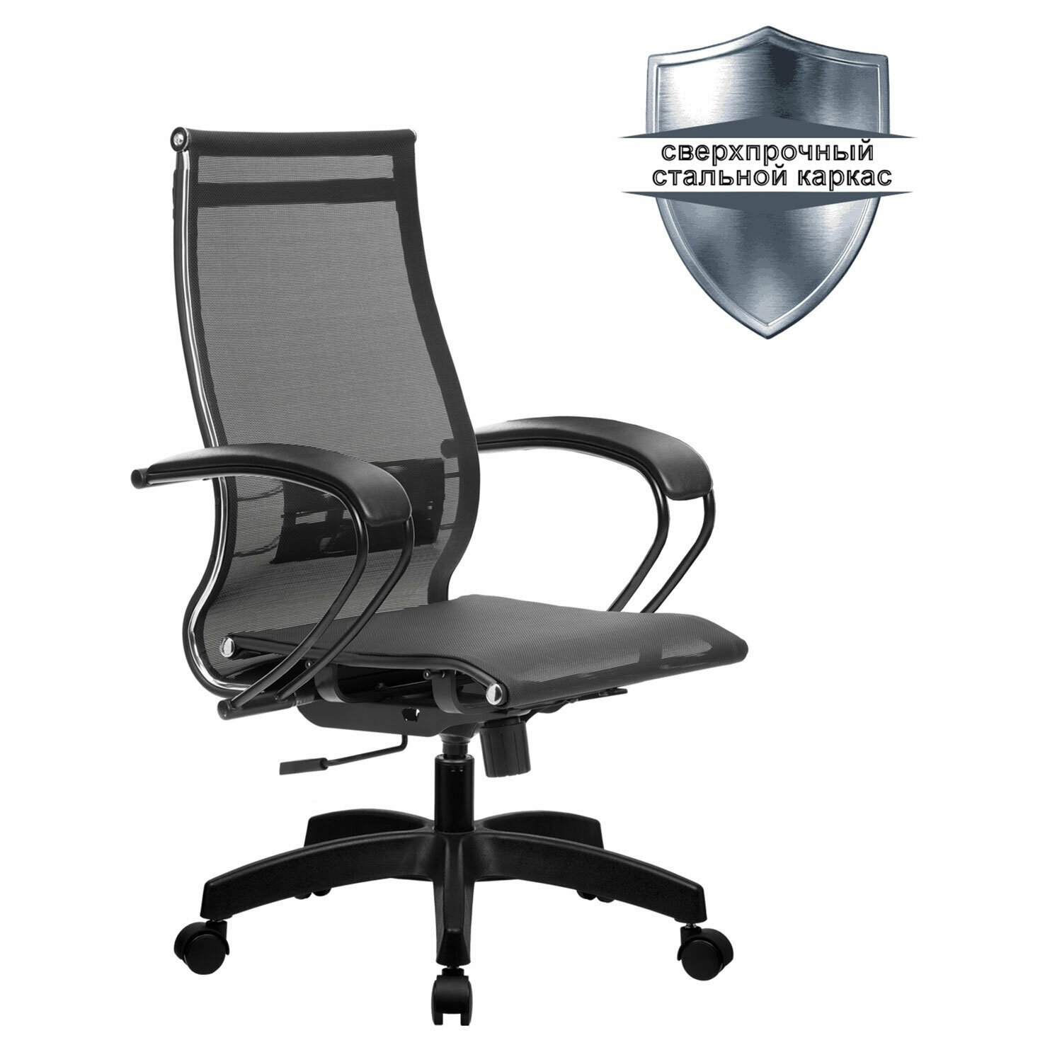 Кресло офисное МЕТТА "К-9" пластик, прочная сетка, сиденье и спинка регулируемые, черное