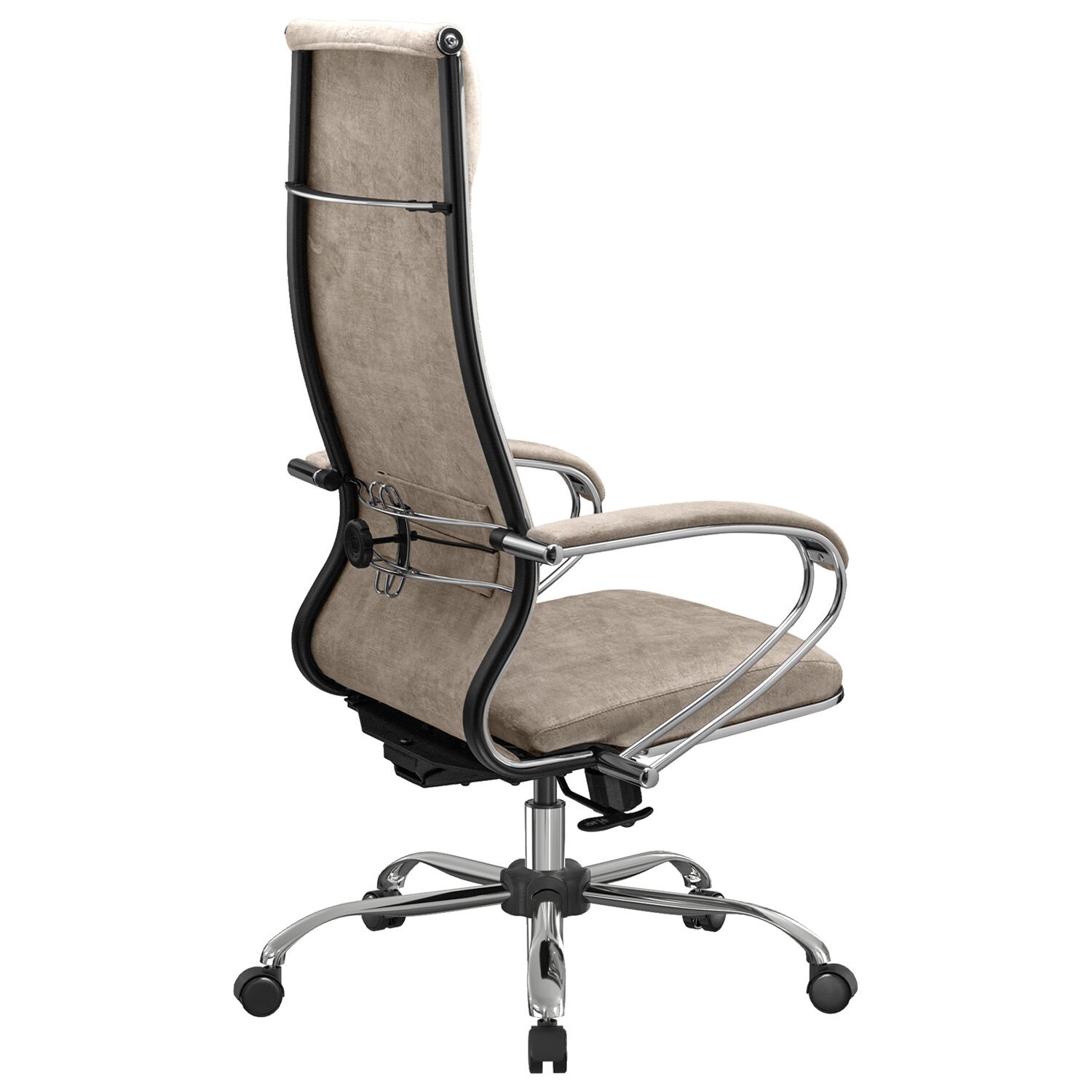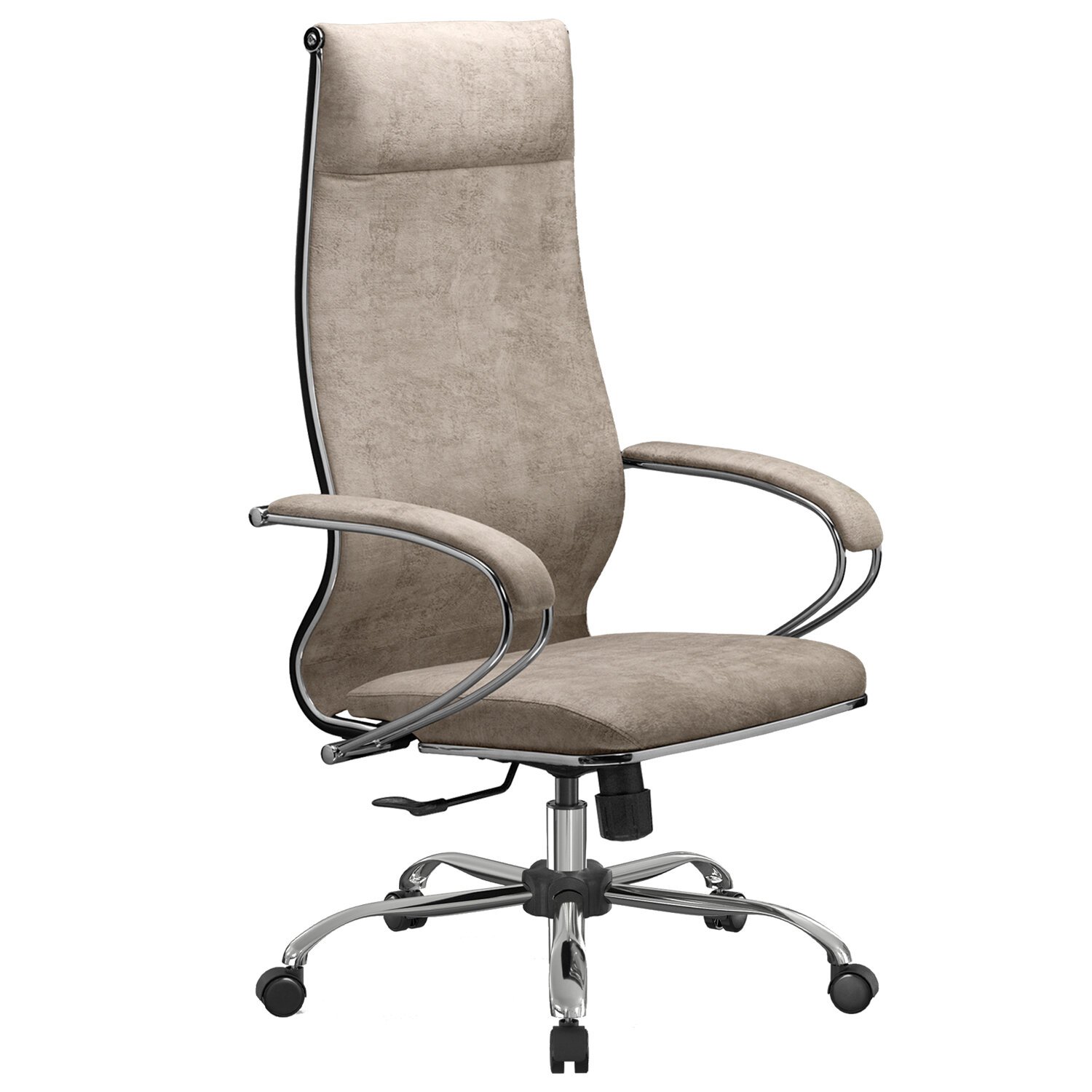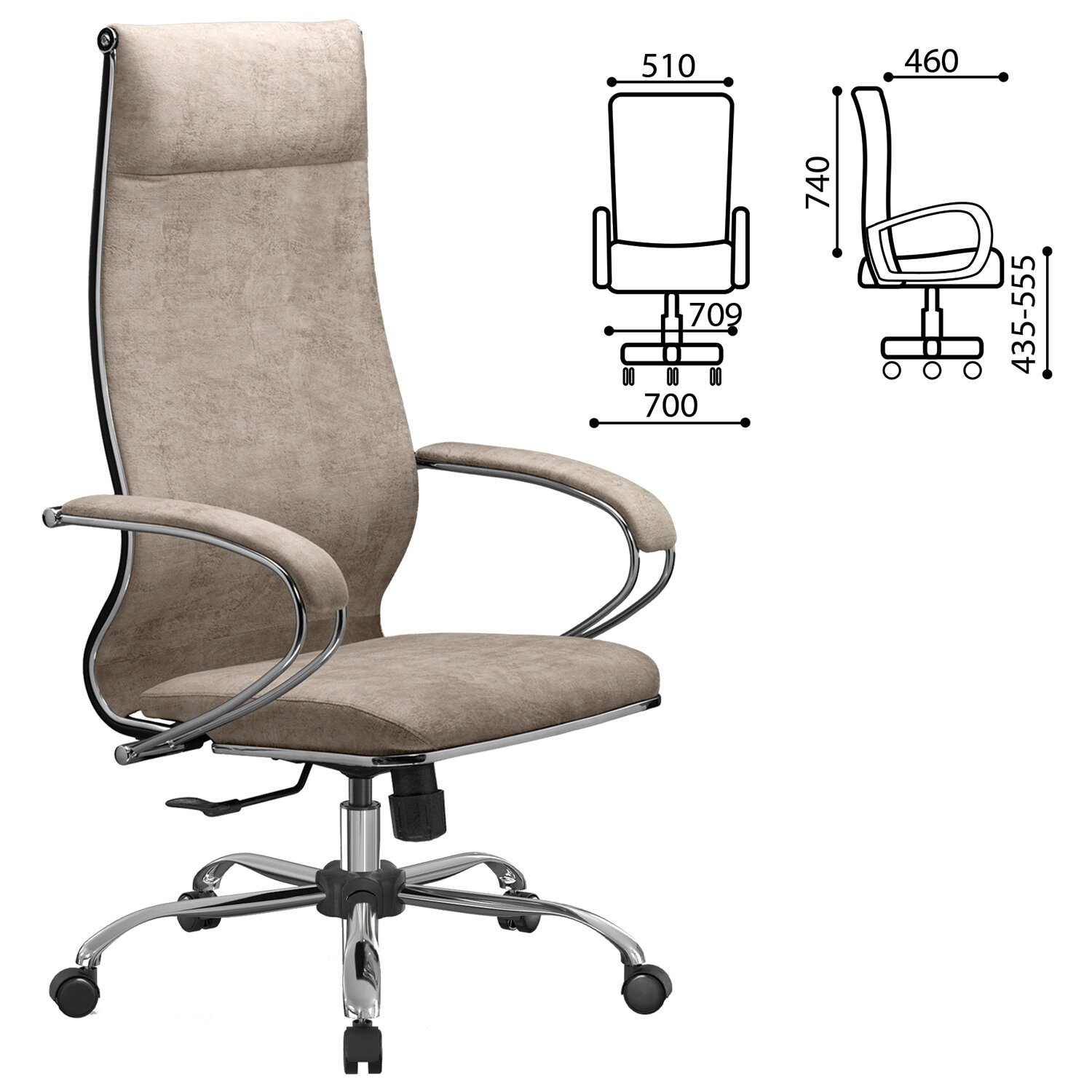 Кресло офисное МЕТТА "L1m 42", хром, сиденье и спинка мягкие, велюр, бежевое