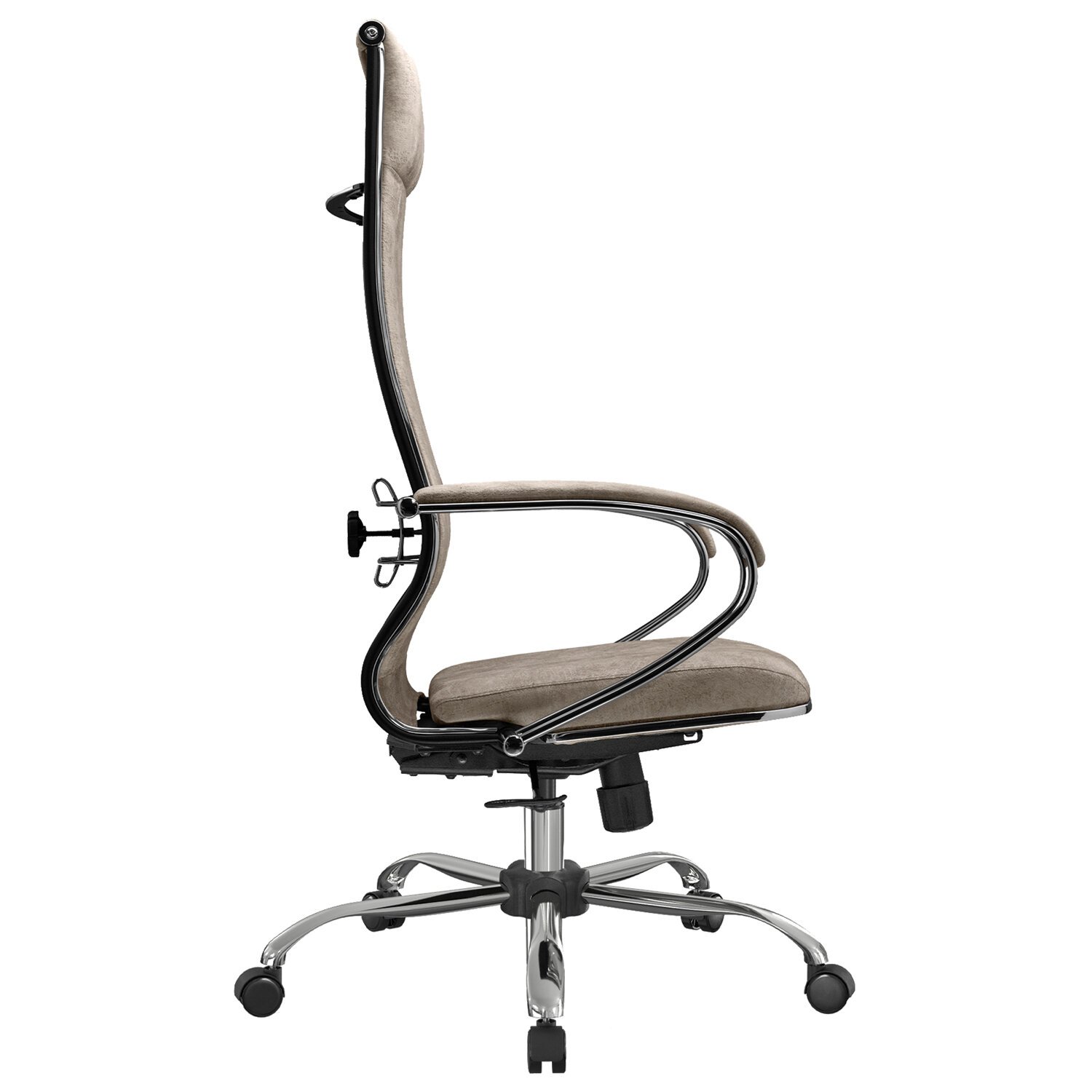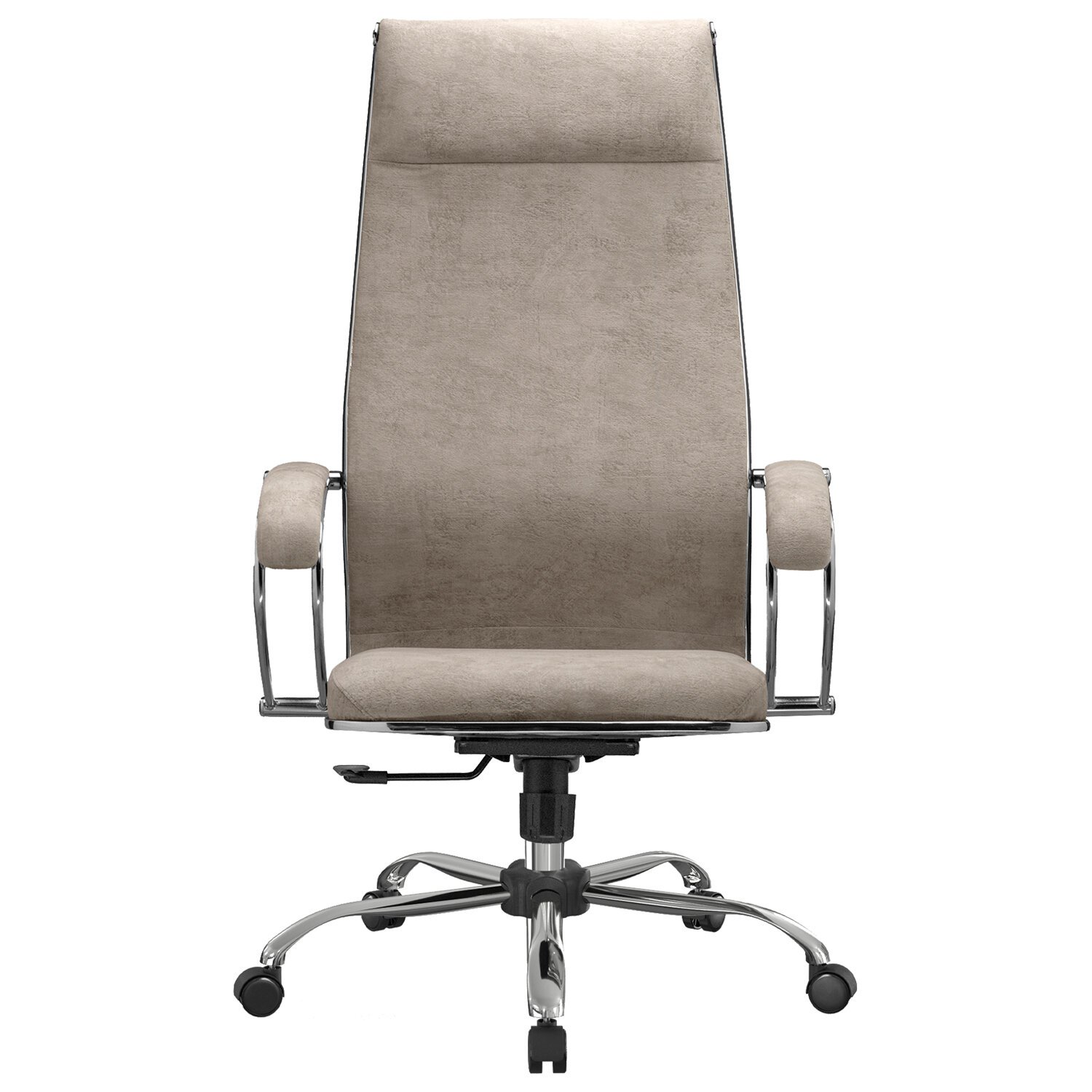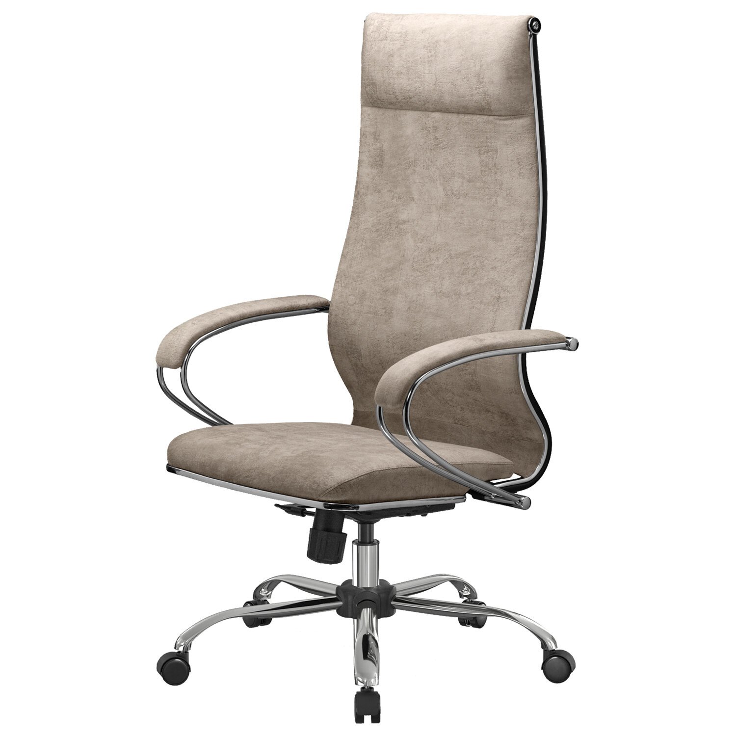 Кресло офисное МЕТТА "L1m 42", хром, сиденье и спинка мягкие, велюр, бежевое