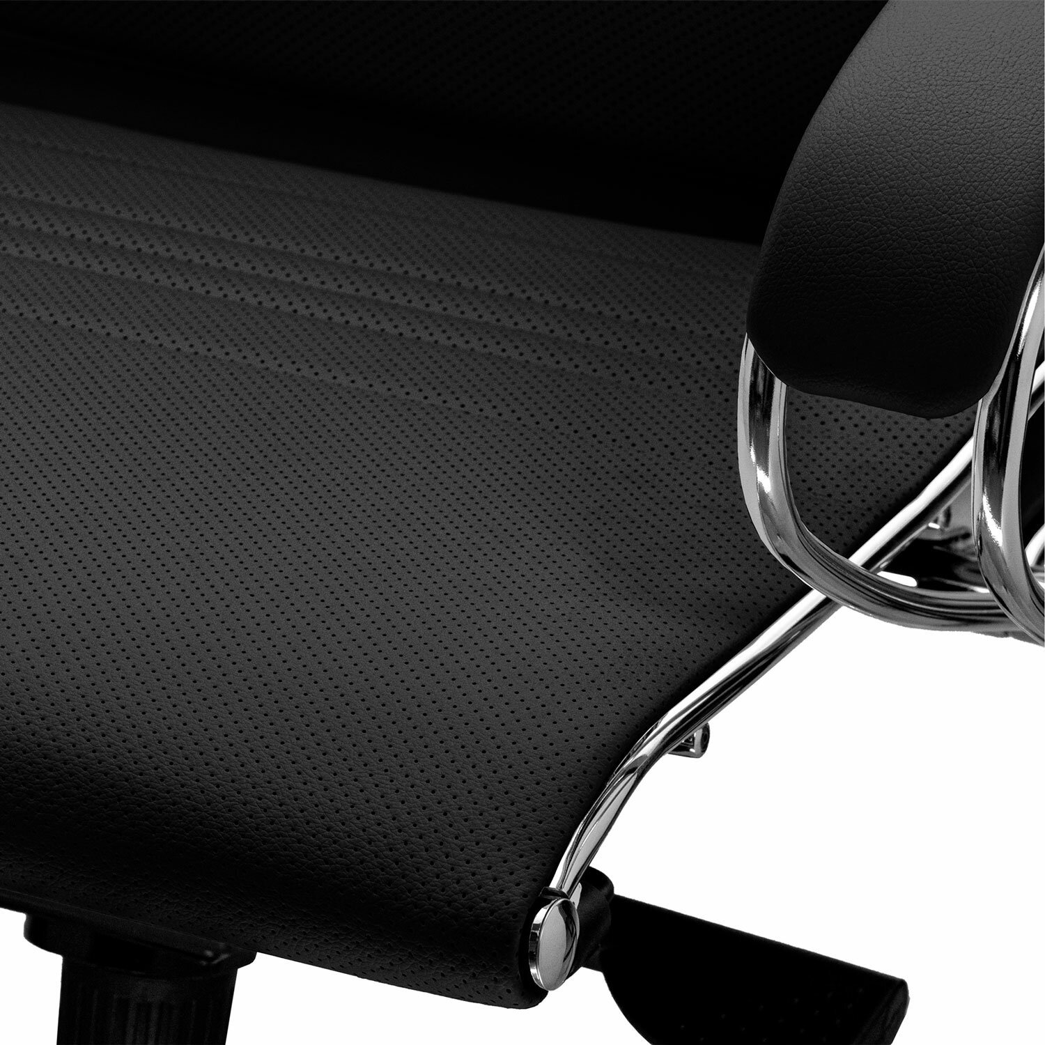 Обивка кресла выполнена из износостойкой перфорированной экокожи. Двухзонная регулировка жесткости сиденья.