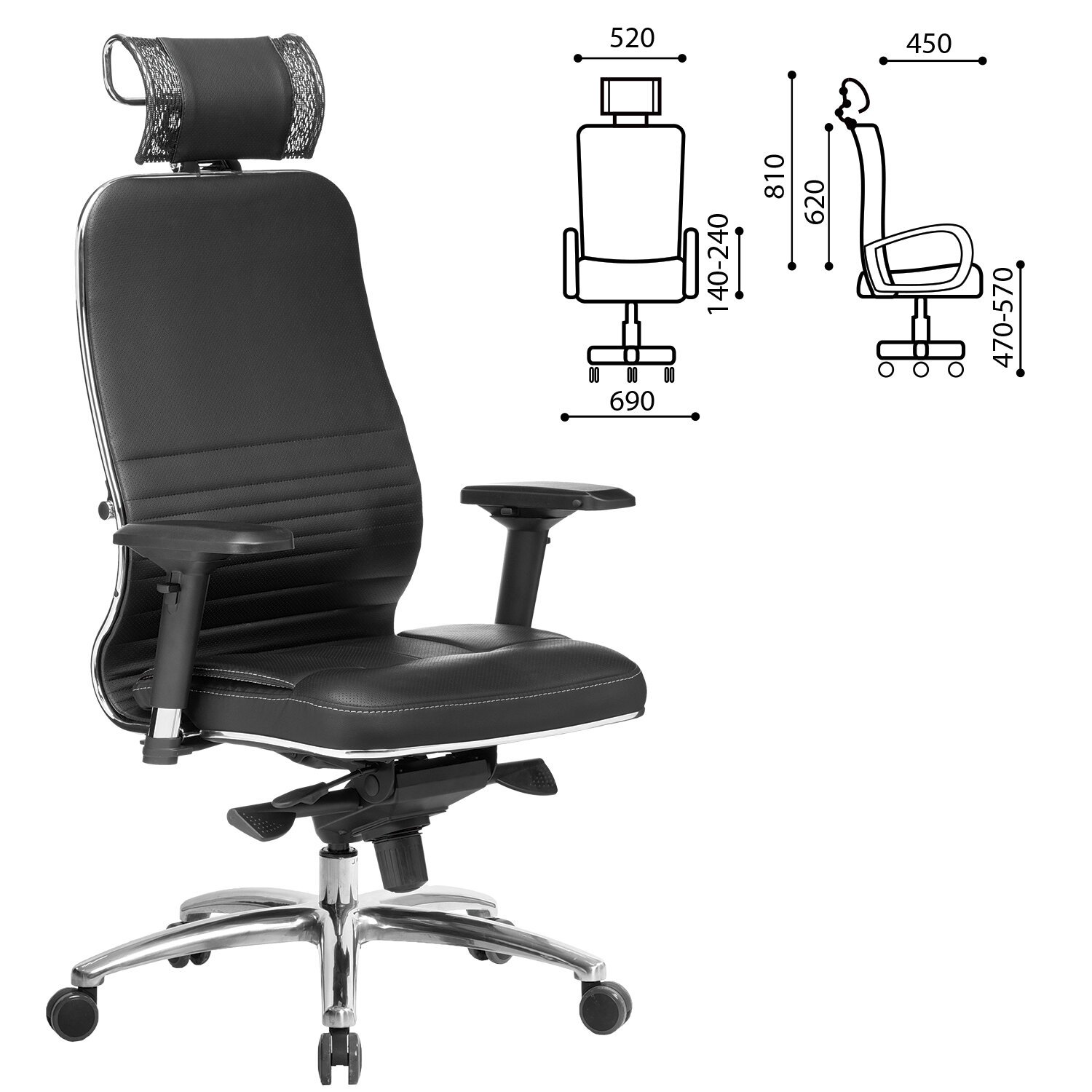 Кресло офисное МЕТТА "SAMURAI" KL-3.05, с подголовником, экокожа, черное